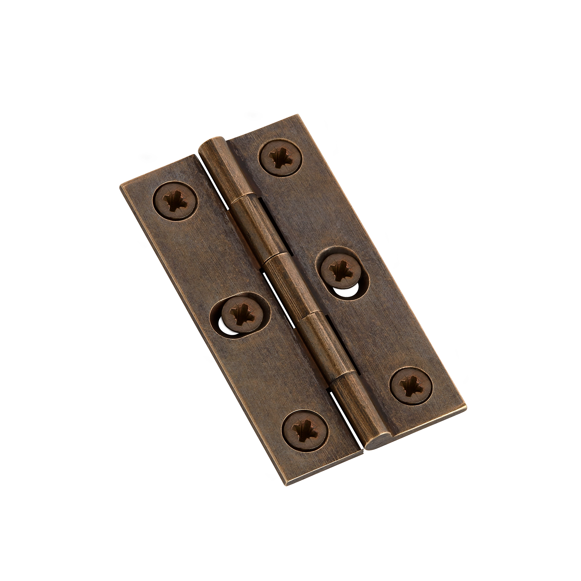 This round-and-oval-hole metal butt hinge is designed to connect and support movable panels. It consists of two rectangular metal plates connected by a central cylindrical pin, with a warm metallic brown finish. The combination of round and oval holes on the leaves allows for multi – functional use, including alignment adjustment and secure mounting, making it perfect for cabinets, cupboards and chests.