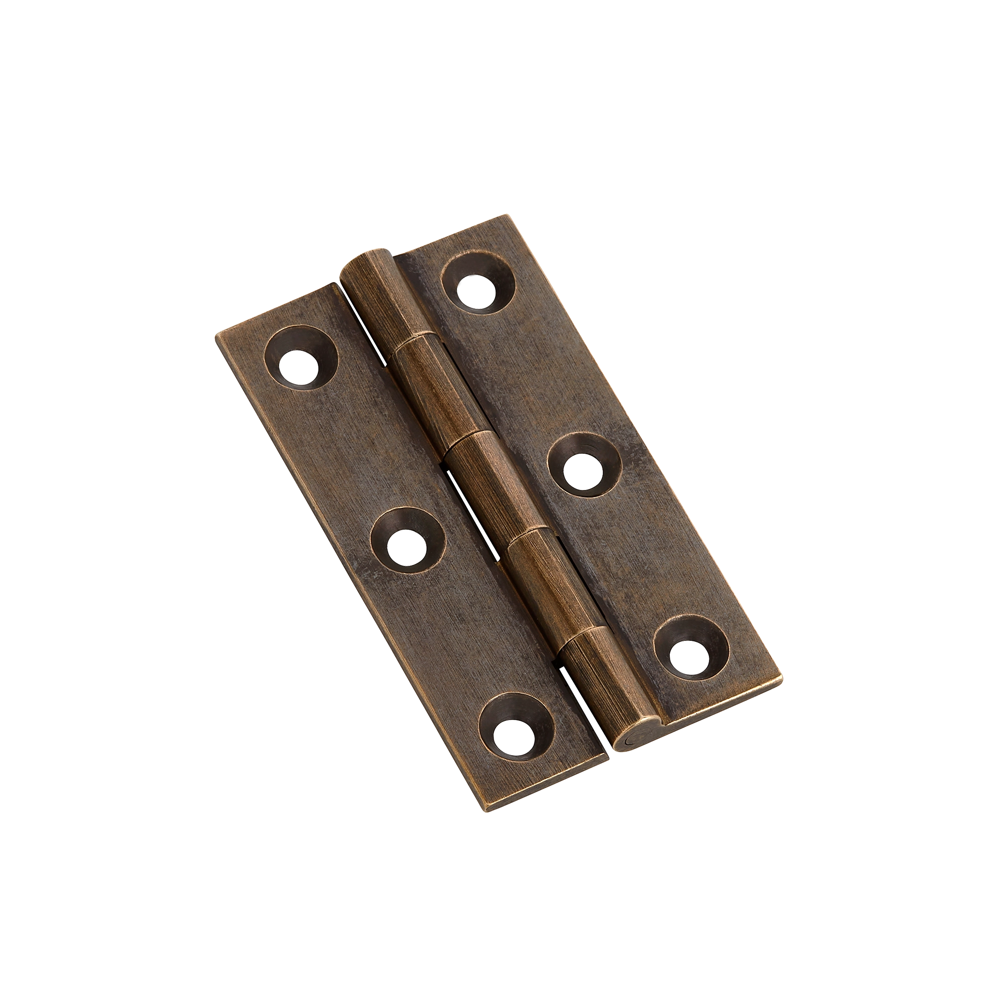- Four screw holes per leaf for secure mounting, some with countersunk edges for flush screw placement