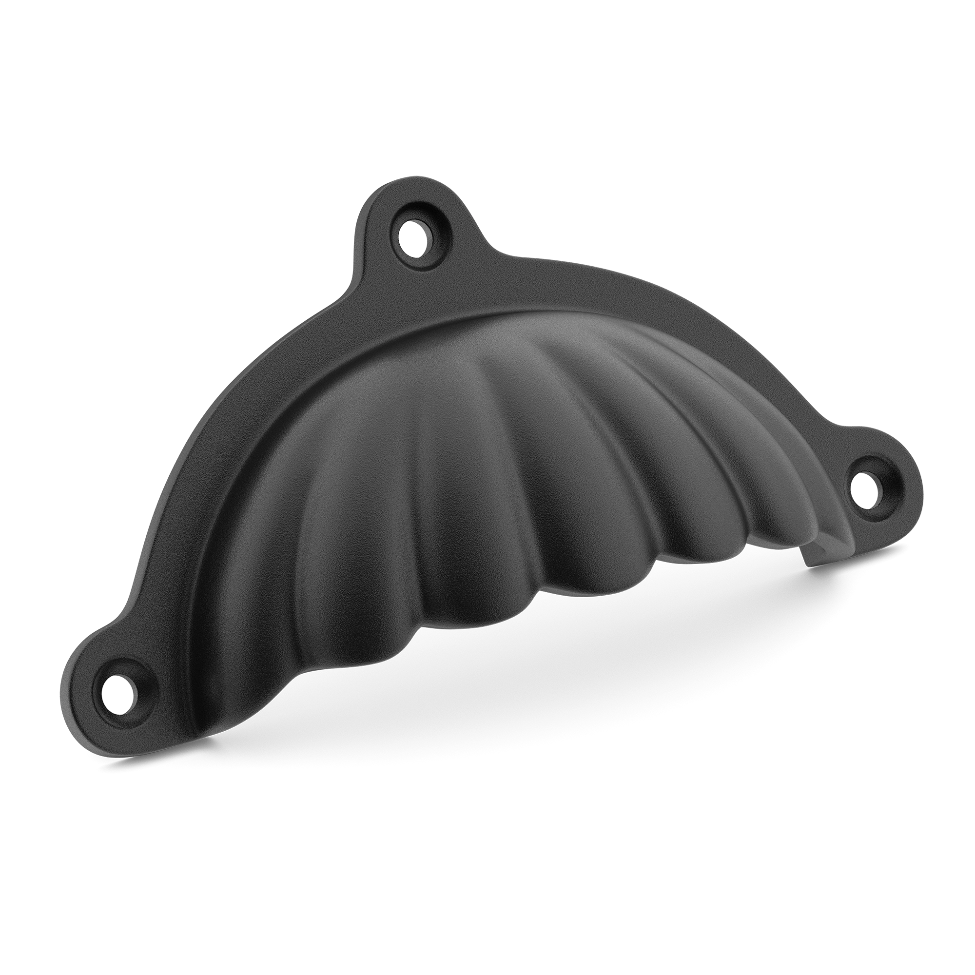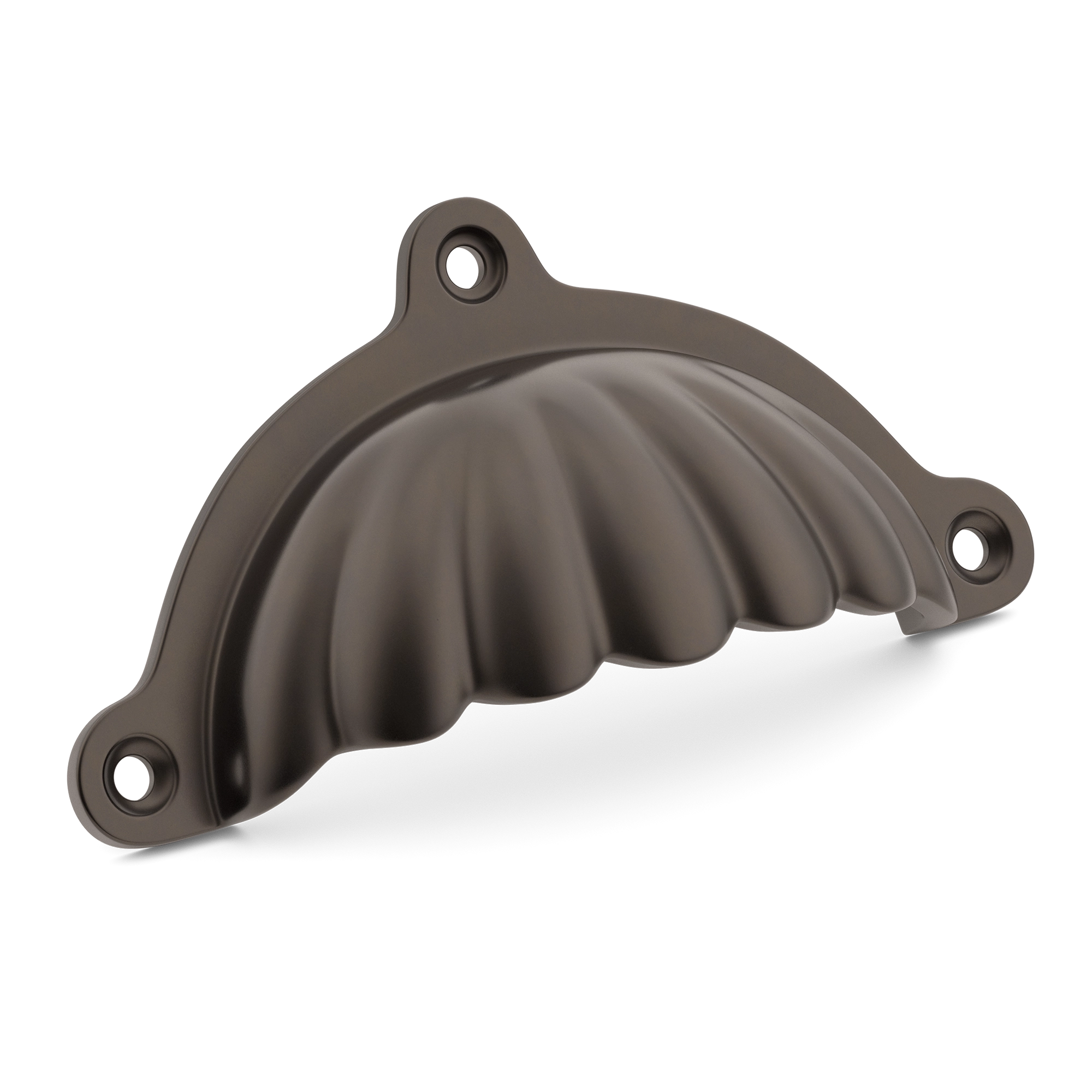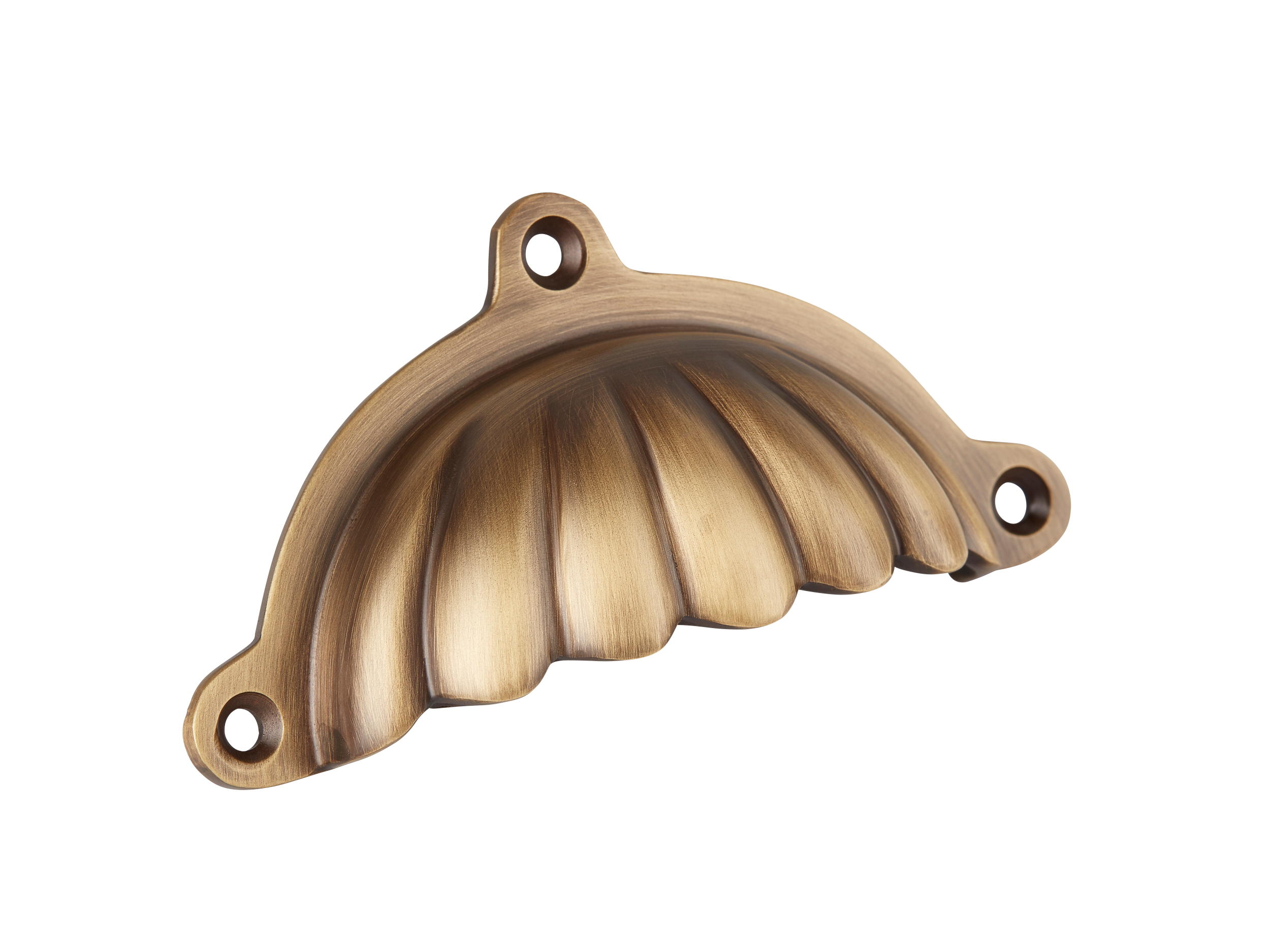 This is a decorative scalloped fluted metal drawer pull. It has a semi – circular, ornate design with a scalloped front and three mounting holes for secure attachment. Made of high – quality metal, it comes in various finishes, making it a great addition to coastal or vintage – style homes.