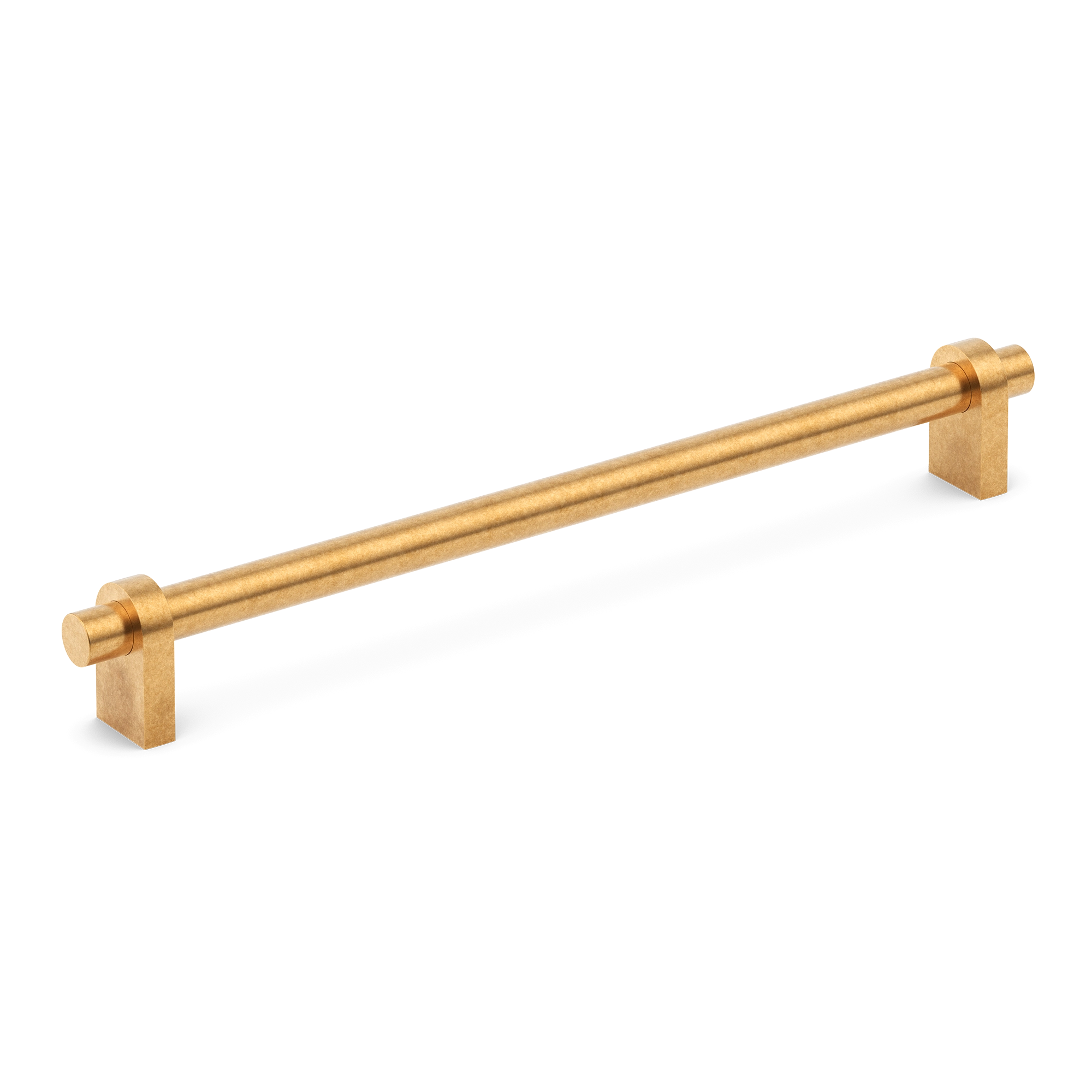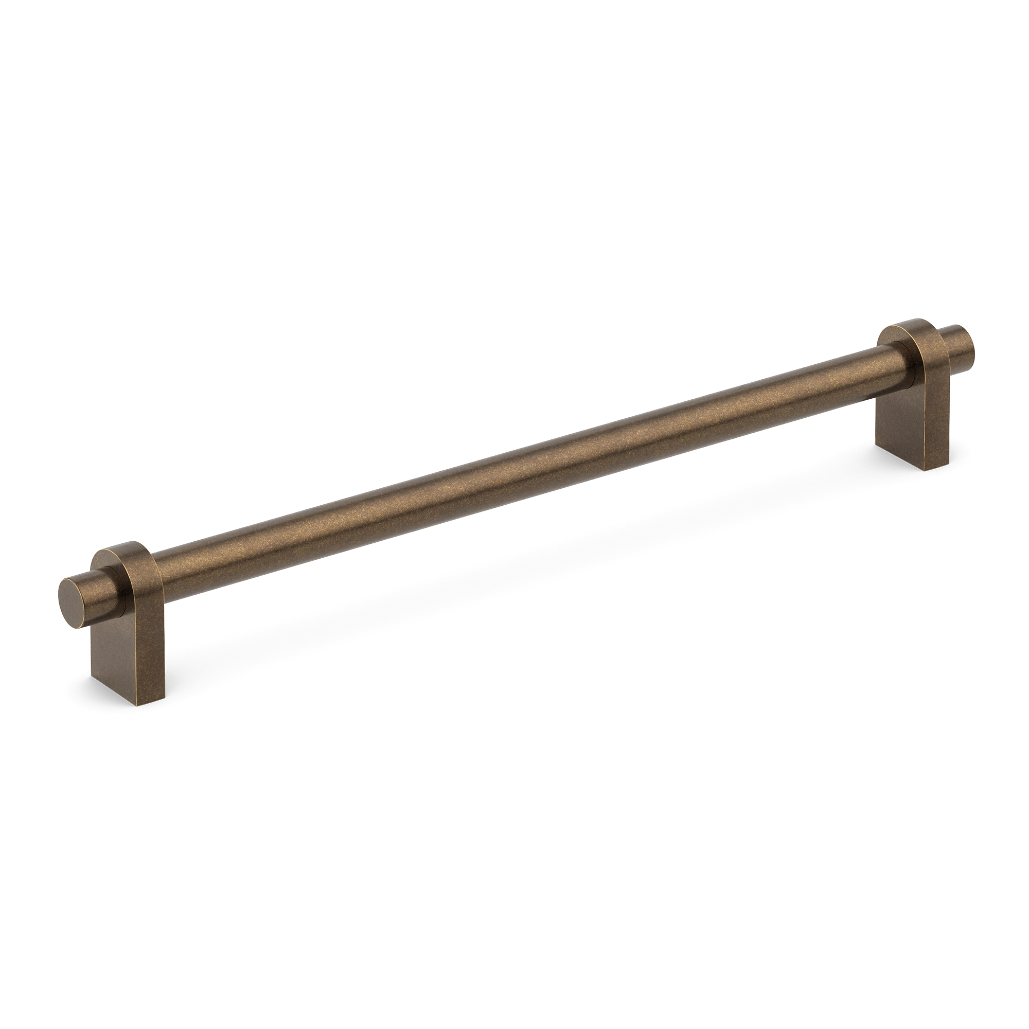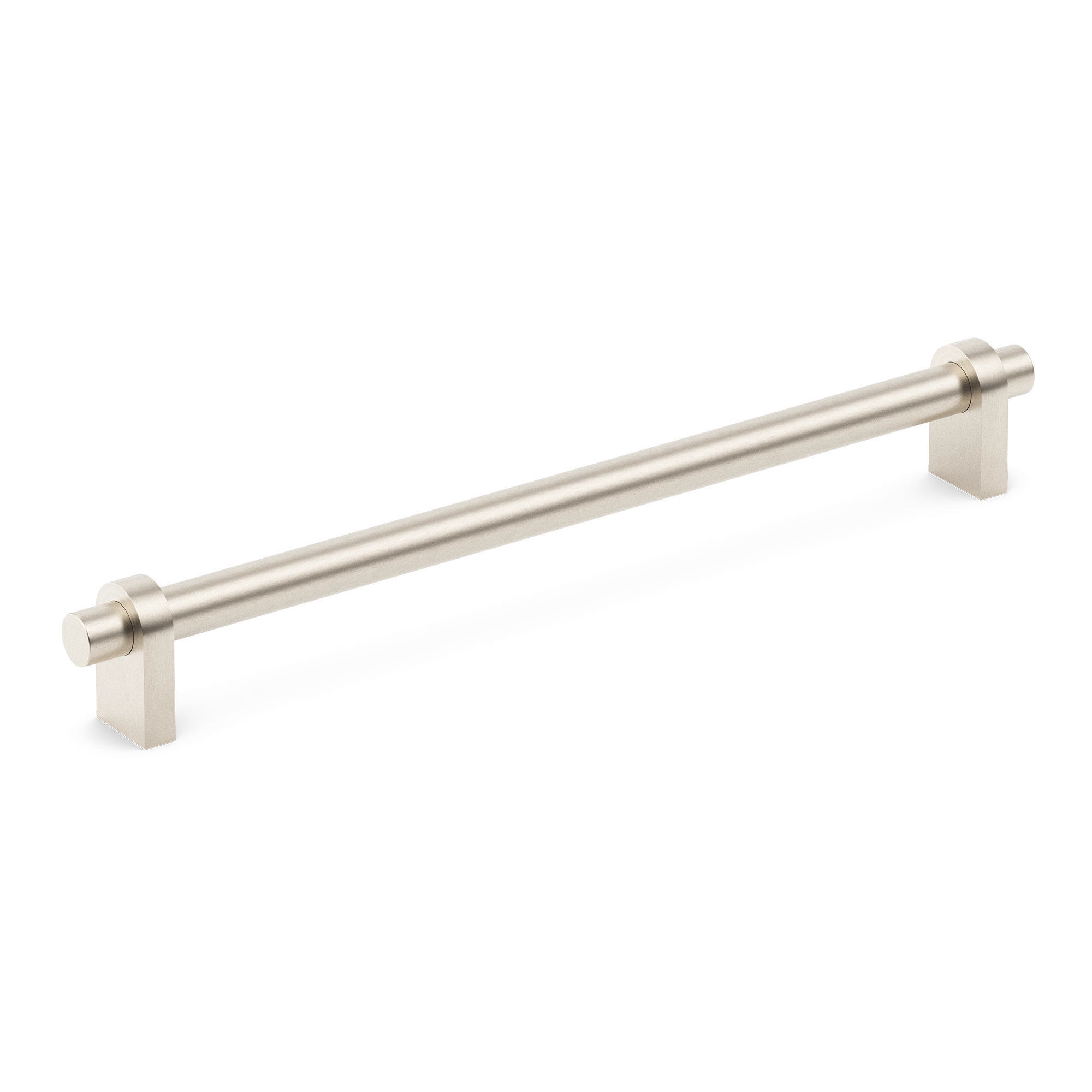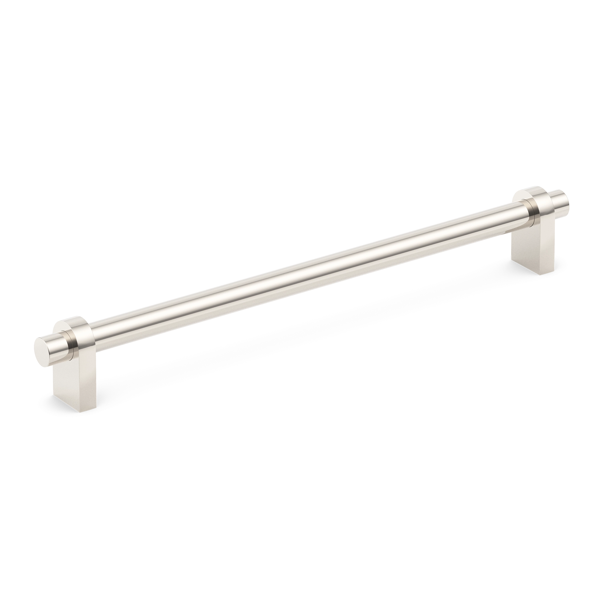 This hardware fixture can serve as a towel bar or a cabinet/drawer pull. Crafted from metal, it features a minimalist design with a central cylindrical rod, square mounting bases, and circular rings. It comes in various metallic finishes and can be a great addition to kitchens, bathrooms, or wardrobes.