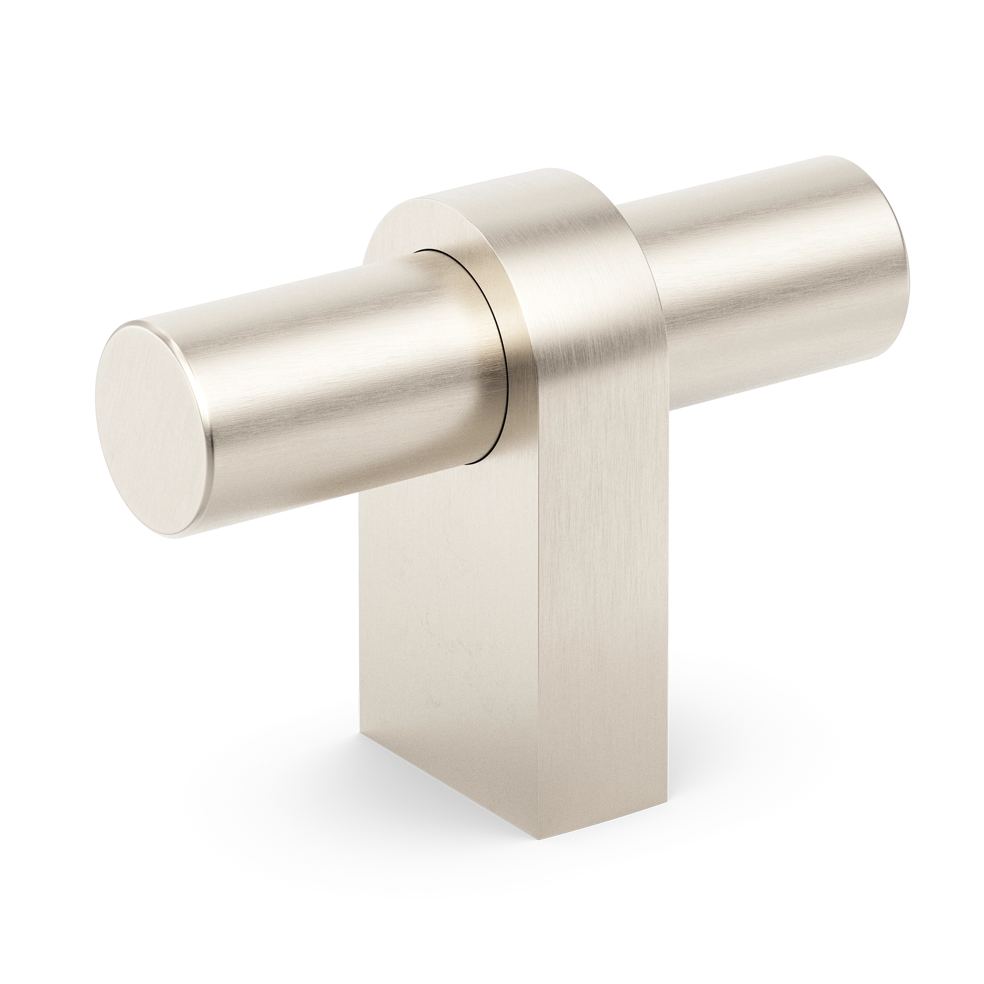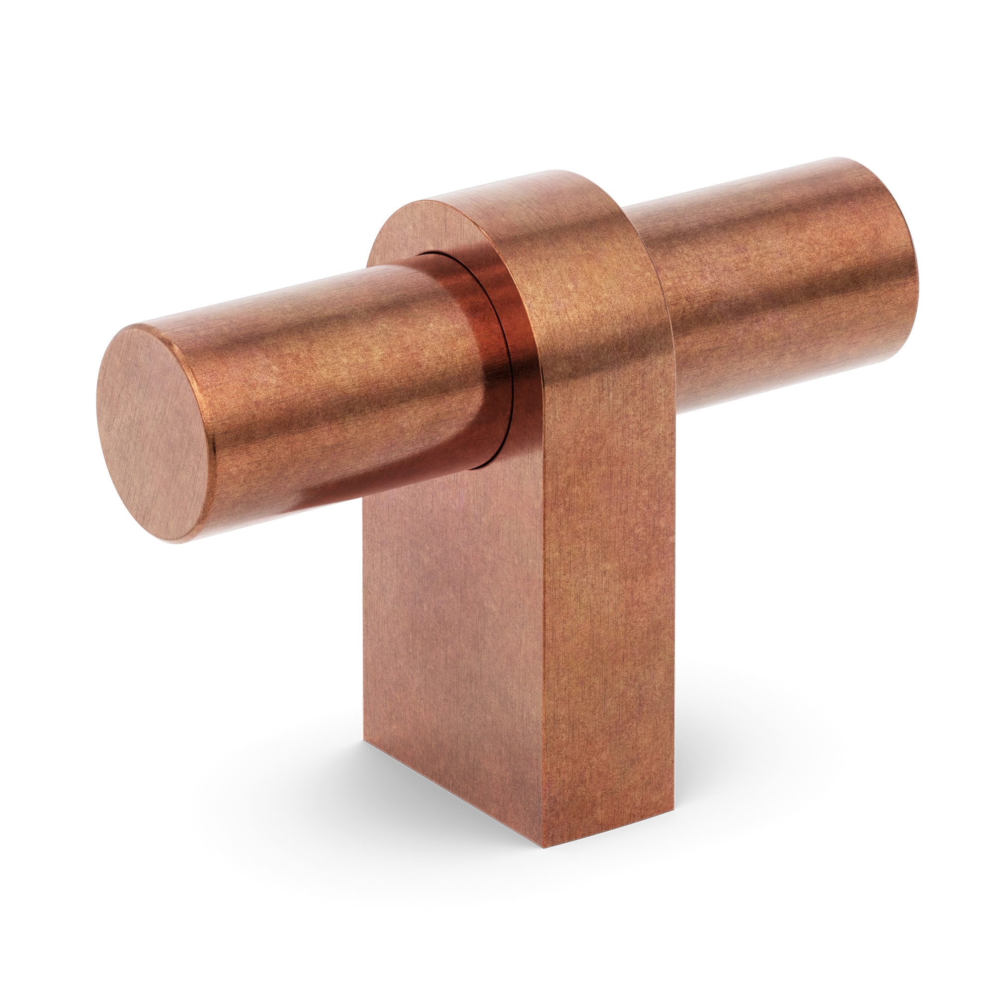 This geometric modern T-bar handle is a versatile hardware component crafted from metal. It features a vertical rectangular base, a horizontal cylindrical rod, and a curved bracket, creating a minimalist and contemporary look. Ideal for cabinetry, it can enhance the aesthetic of kitchens, bedrooms, or bathrooms.