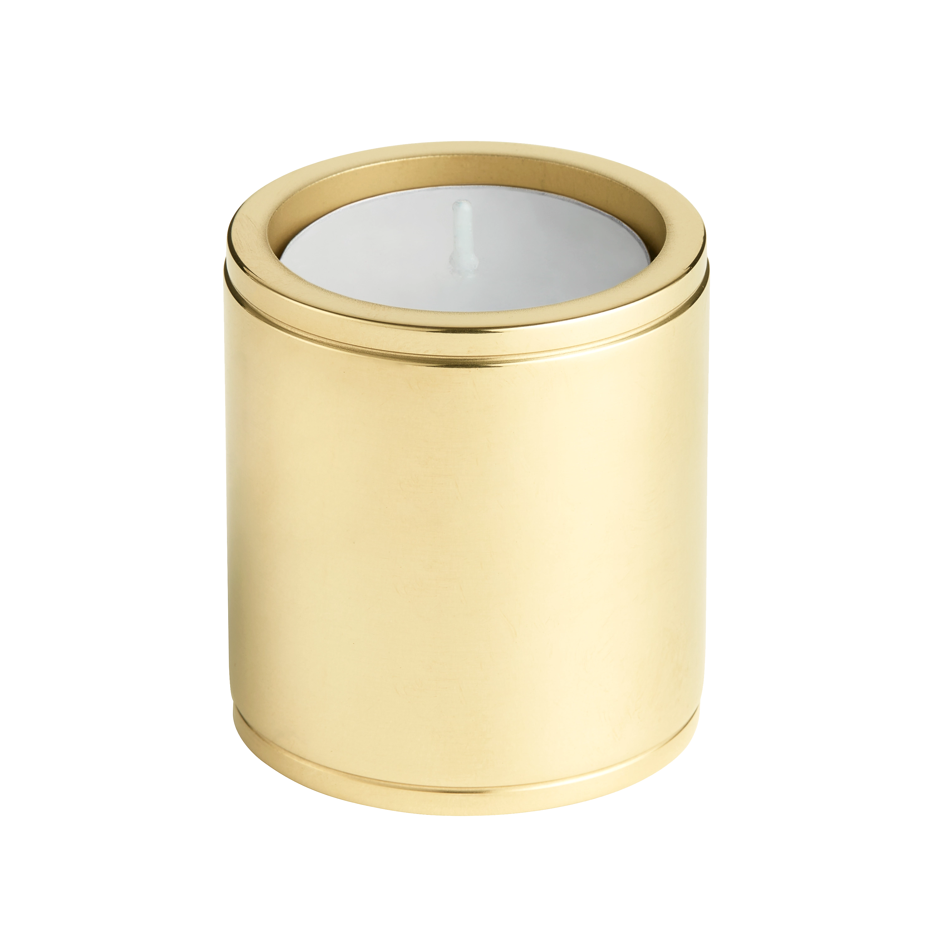 This band – segmented metallic tealight holder is a charming addition to any space. It is crafted from a metallic alloy, likely brass, with a textured finish and polished accents. The sleek cylindrical shape with horizontal bands adds a decorative touch, and it comes in three color variants to suit different interior styles.