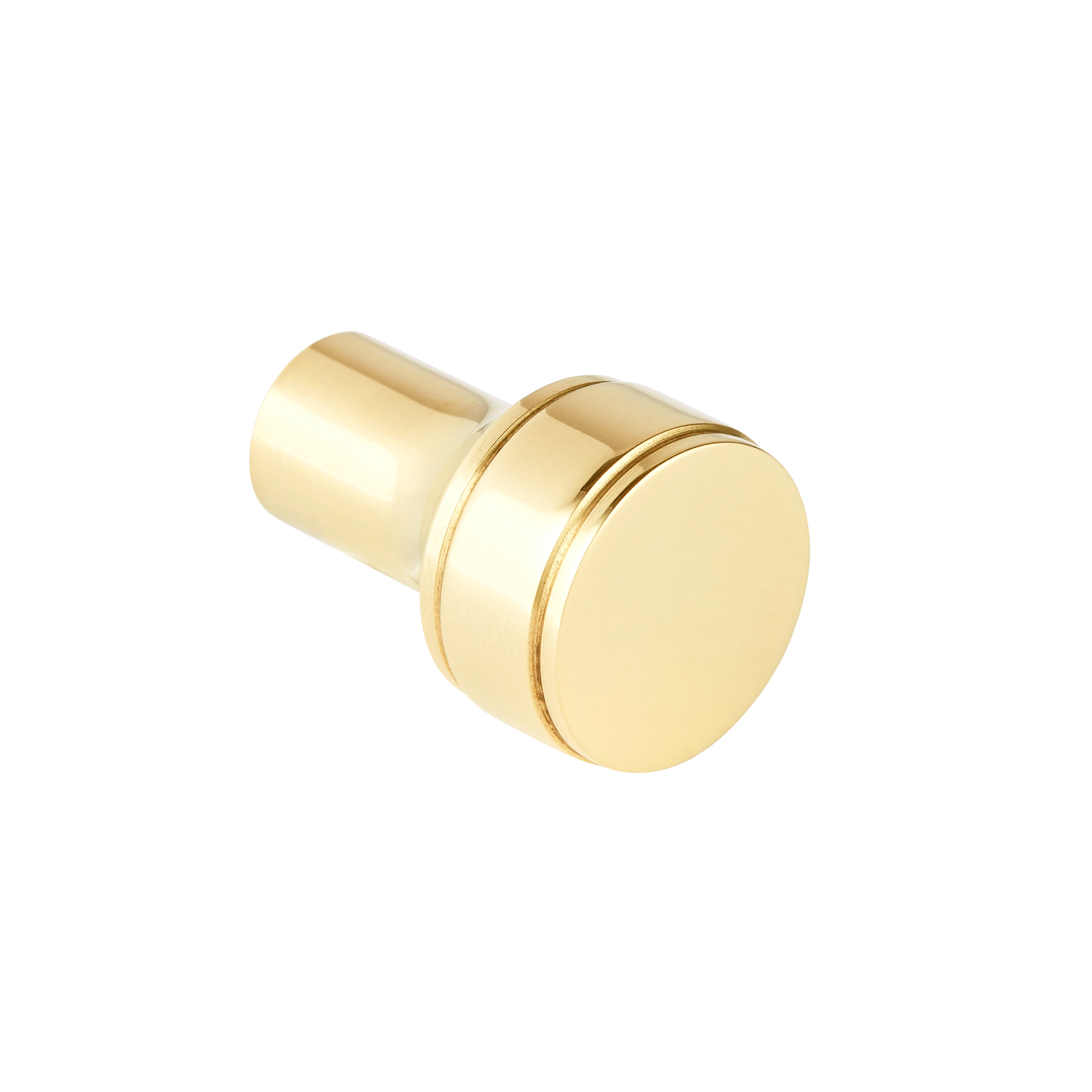This grooved circular metal knob is a versatile hardware component perfect for furniture and doors. It features a smooth cylindrical neck extending from a circular base, with two decorative grooves adding both style and possible structural reinforcement. Available in multiple color finishes, it combines functionality with an elegant aesthetic.