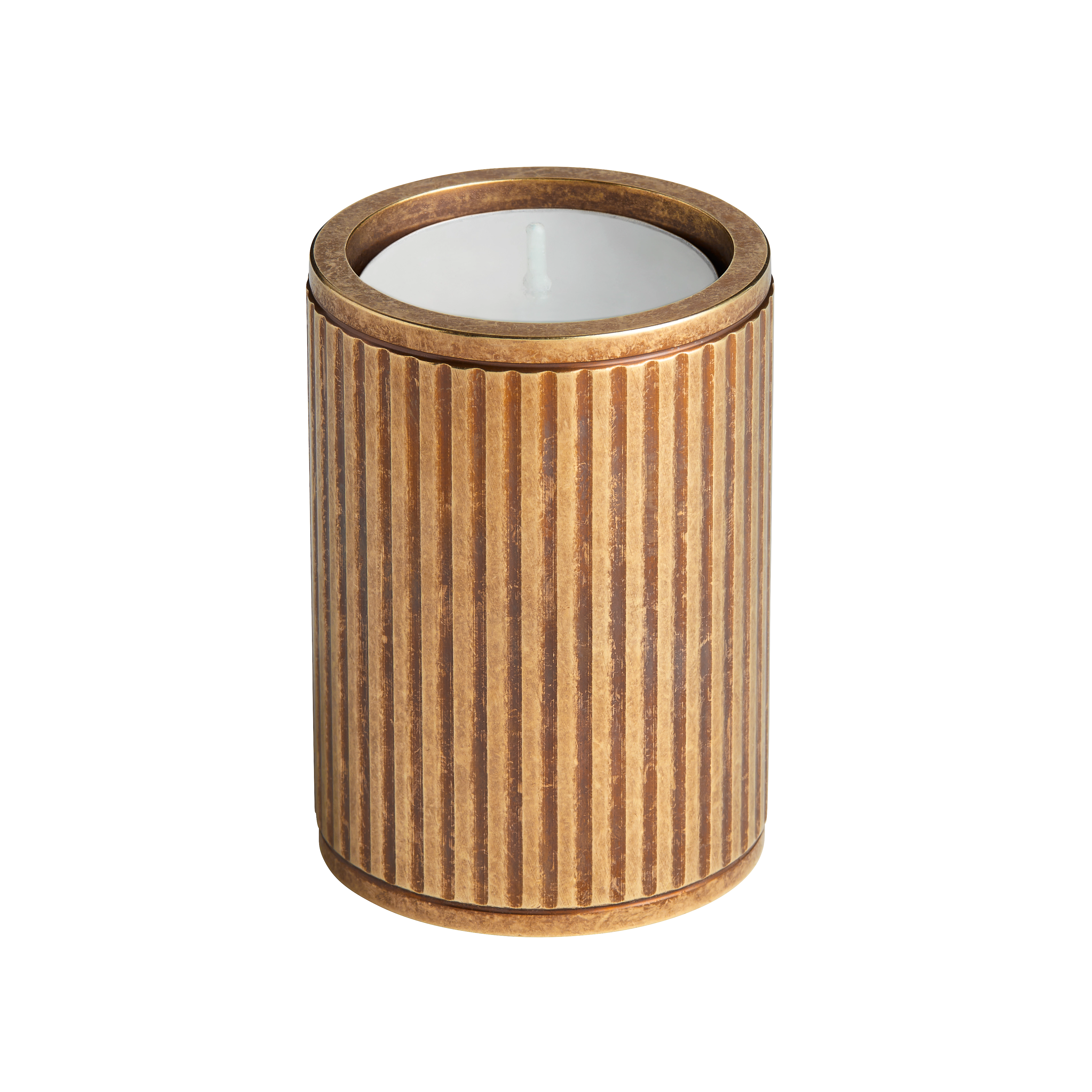 This fluted brass tealight candle holder is a sophisticated decorative piece that exudes timeless beauty. Artisanally crafted from solid brass, it features a unique cylindrical design with vertical fluting, adding a touch of elegance to any interior. With its pre – inserted candle, it’s ready to use to create a warm and inviting ambiance.