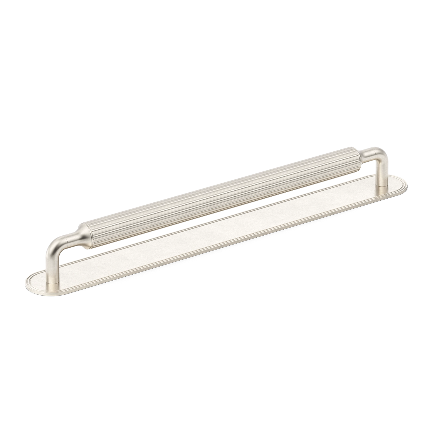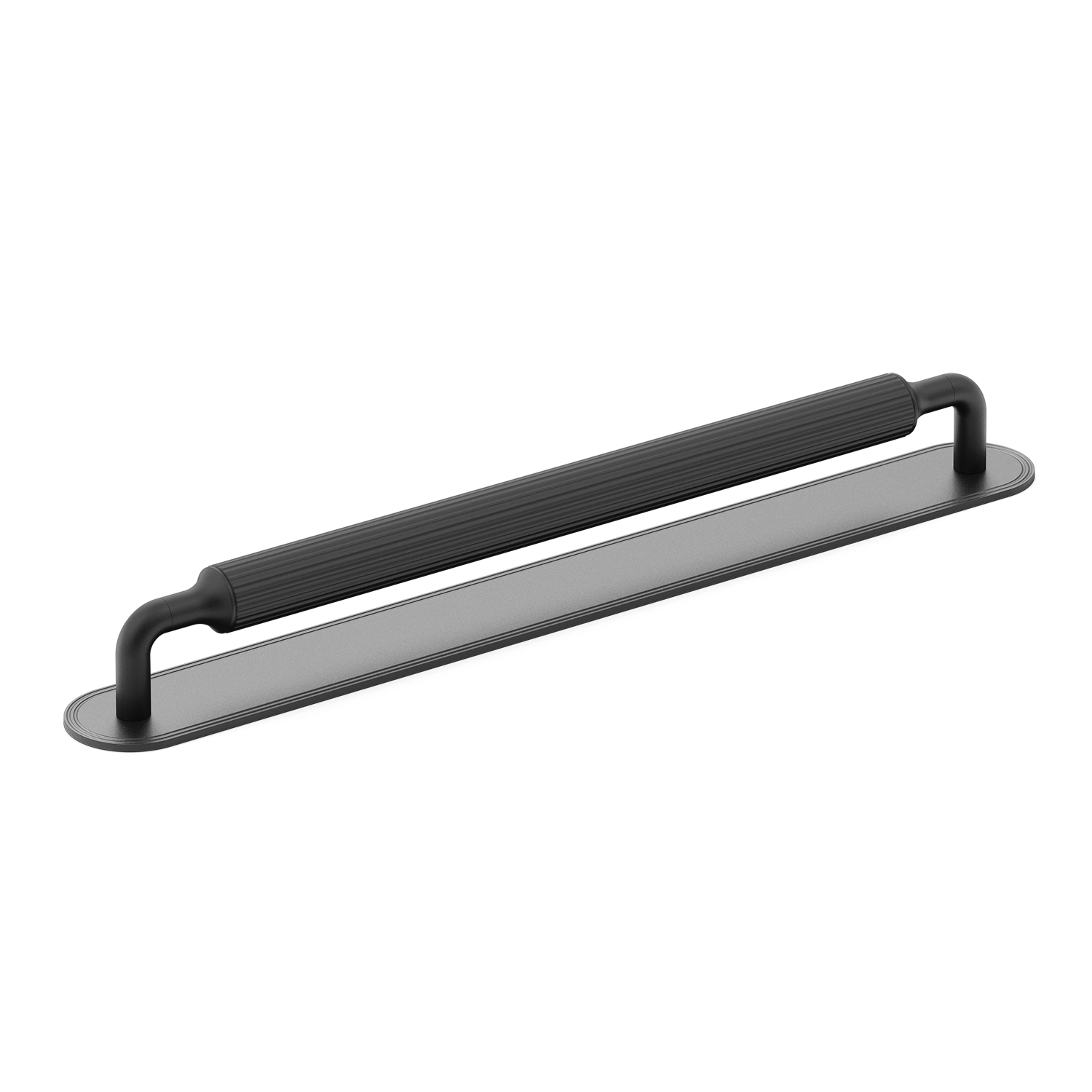 This cabinet/drawer handle is a stylish and functional addition to furniture. It features a long, integrated design with a ribbed central grip section, smooth curved arms, and a flat rectangular base. Crafted from metal, it offers multiple finishes and is suitable for various interior styles, enhancing both the look and functionality of kitchens, bathrooms, or wardrobes.