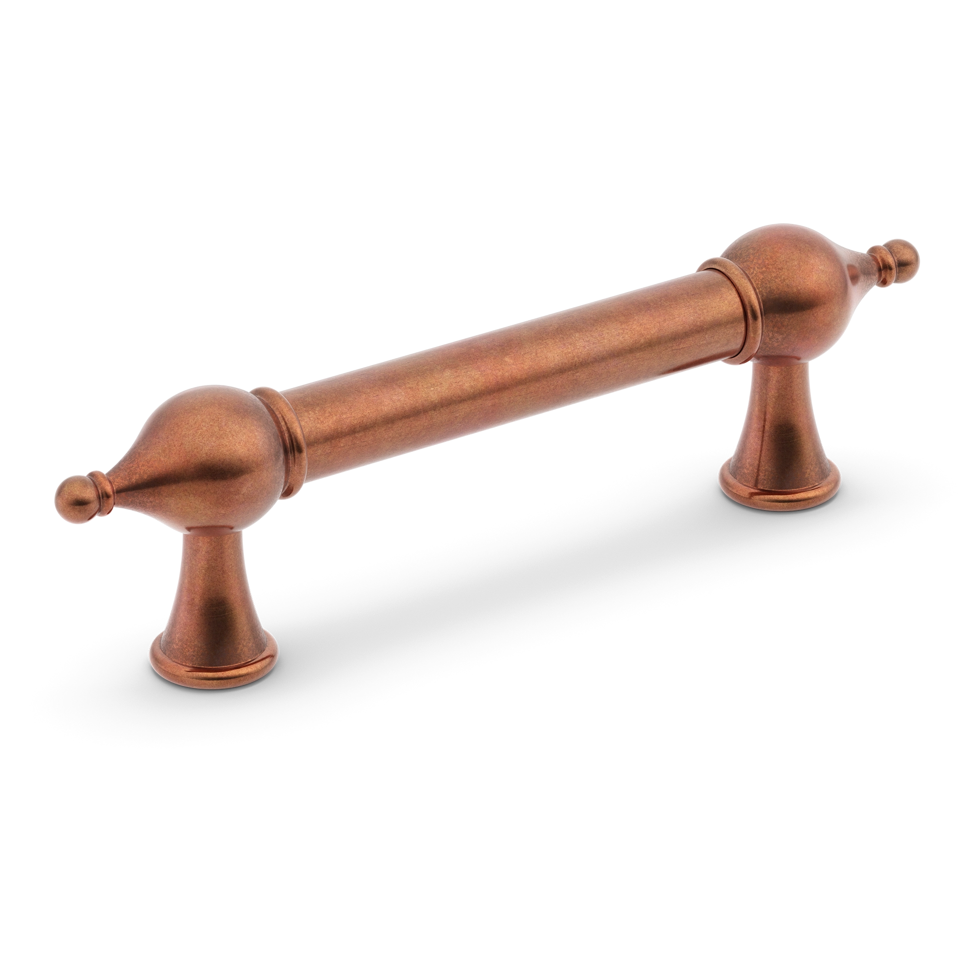 This cabinet/drawer pull is a perfect blend of style and functionality. It features an ornate design with bulbous ends, ring accents, and flared supports, giving it a classic, vintage look. Made of metal, likely a brass alloy or stainless – steel, it has a brushed texture that not only adds durability but also a polished appearance.