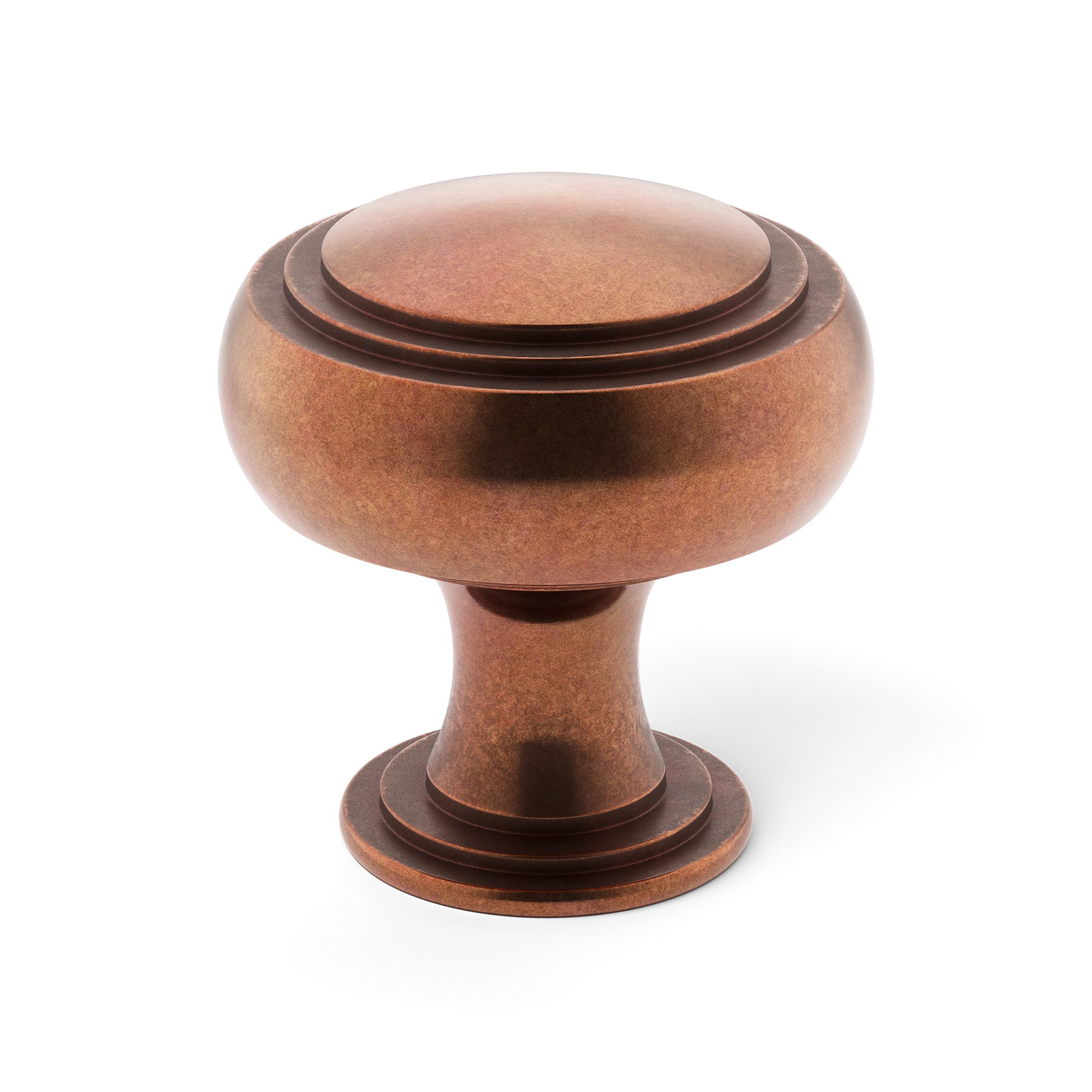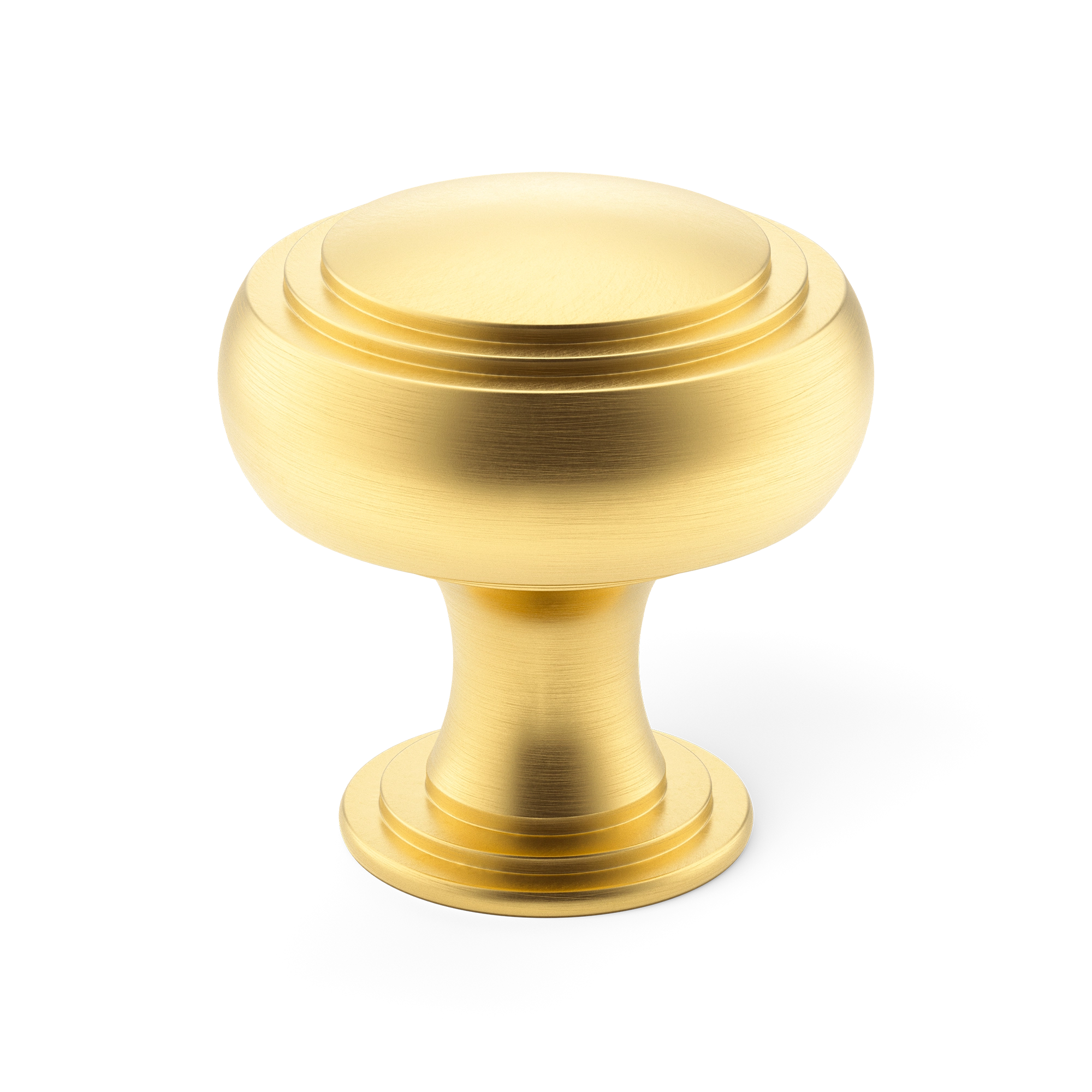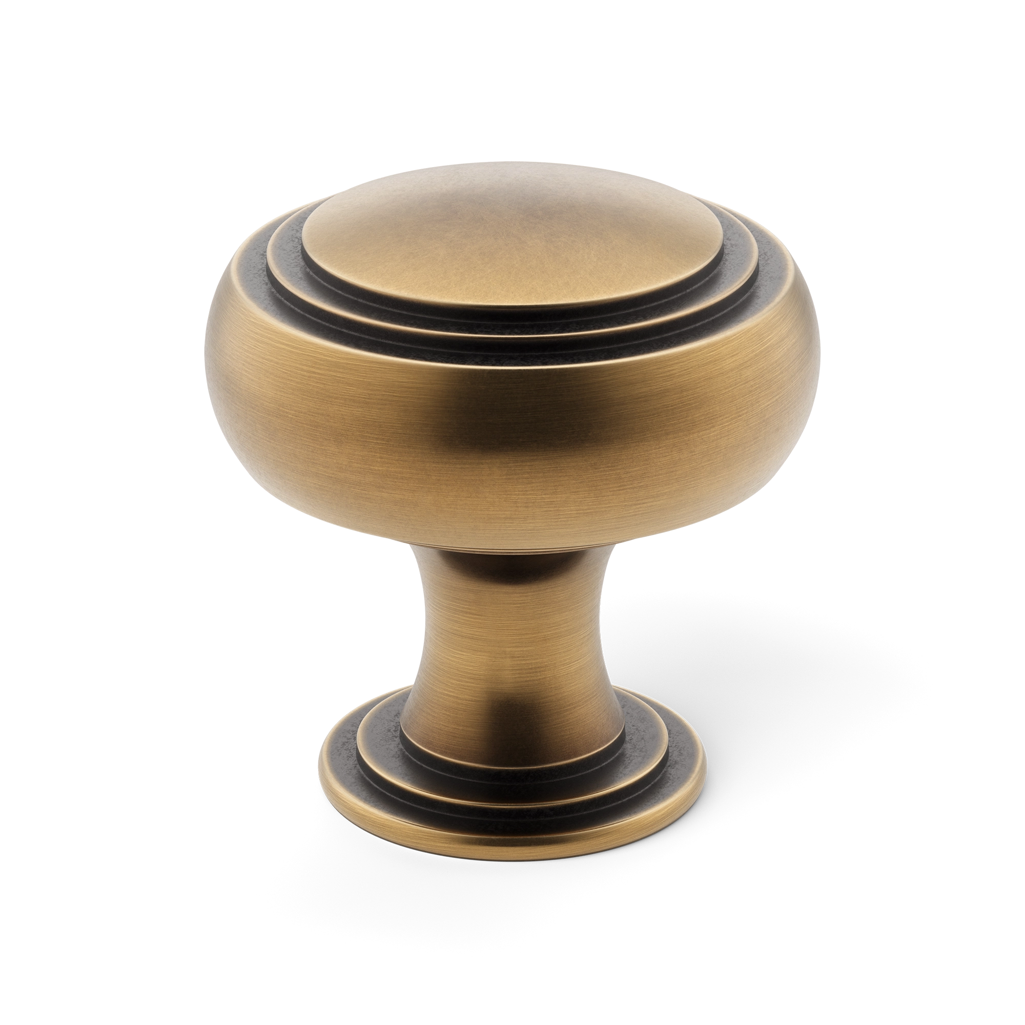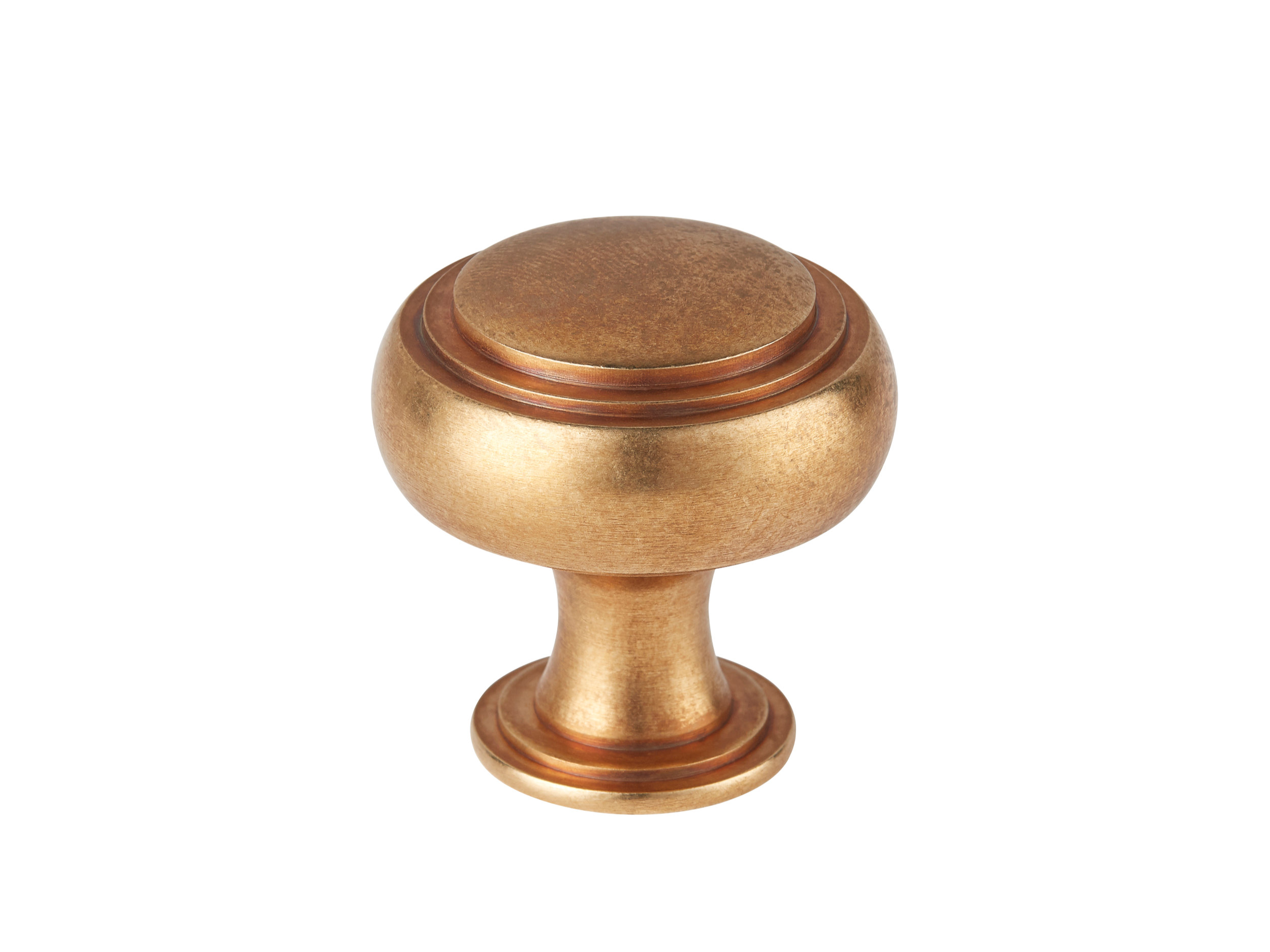 This is a traditional cabinet knob featuring concentric rings, offering a classic and decorative look. It is made of solid metal, likely brass, with a durable construction. The knob comes in a small size, making it suitable for standard cabinets and drawers.