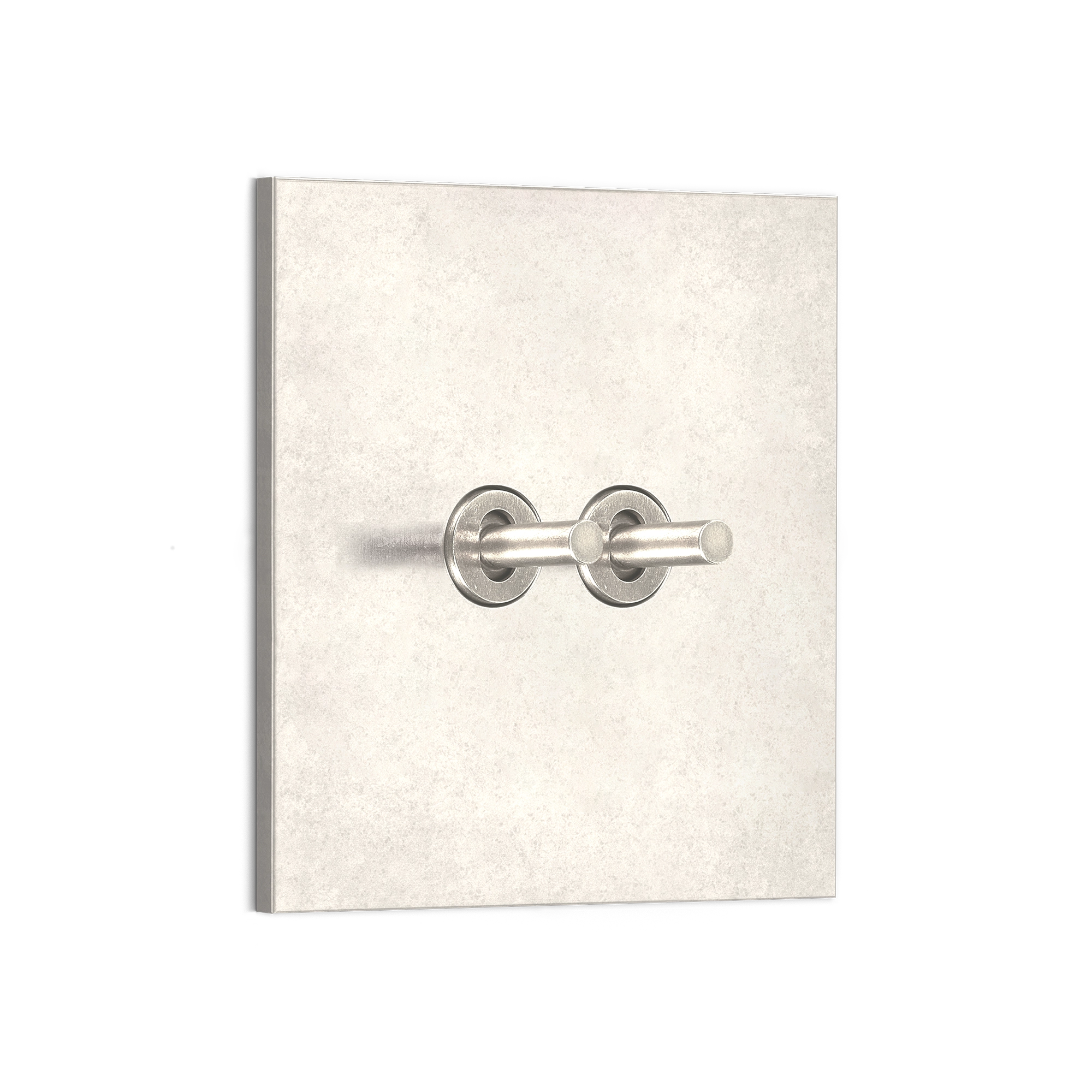 - Metallic toggles with smooth, cylindrical handles and circular back plates for easy gripping and flush mounting.