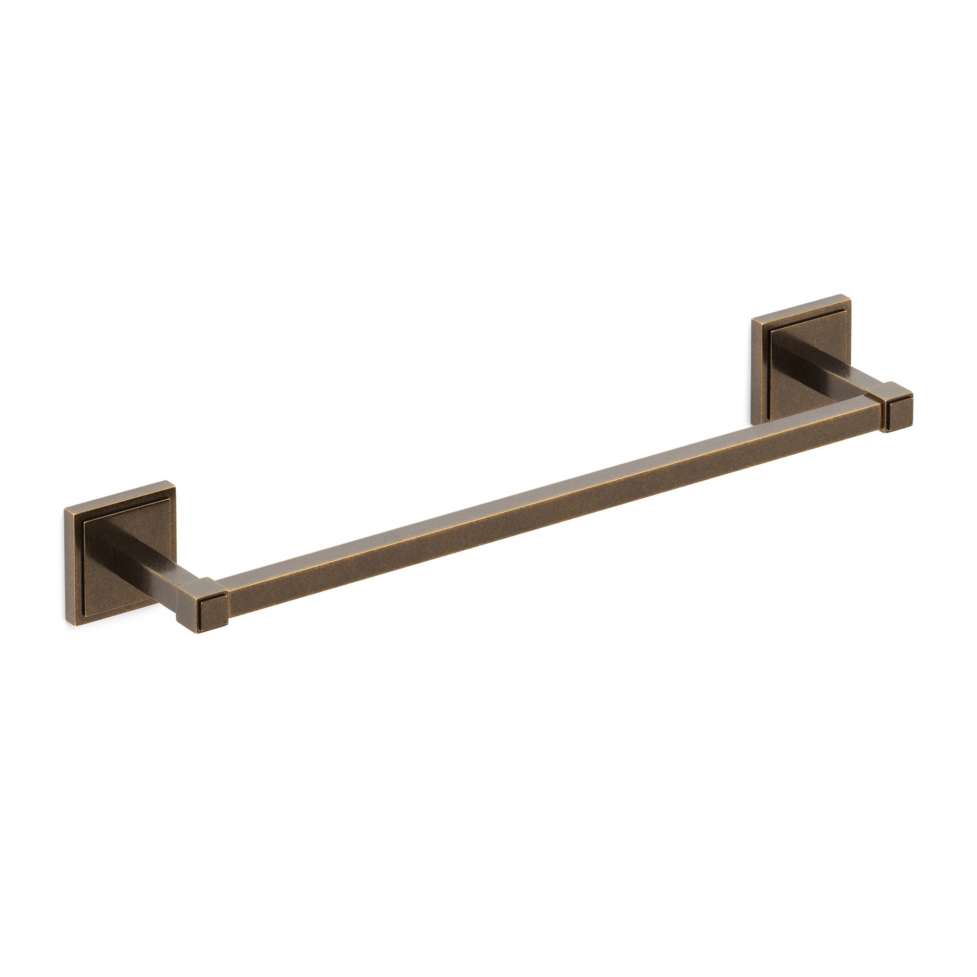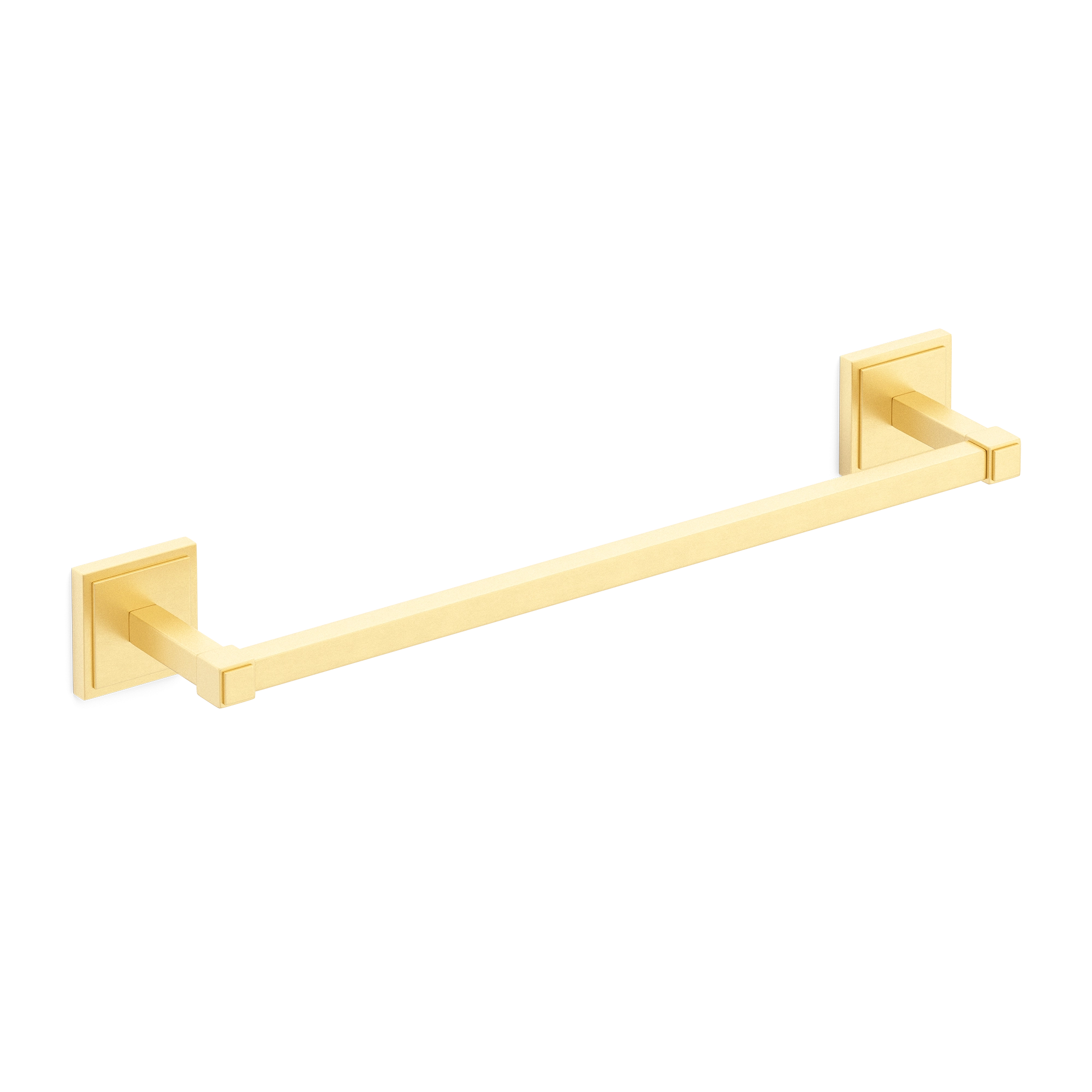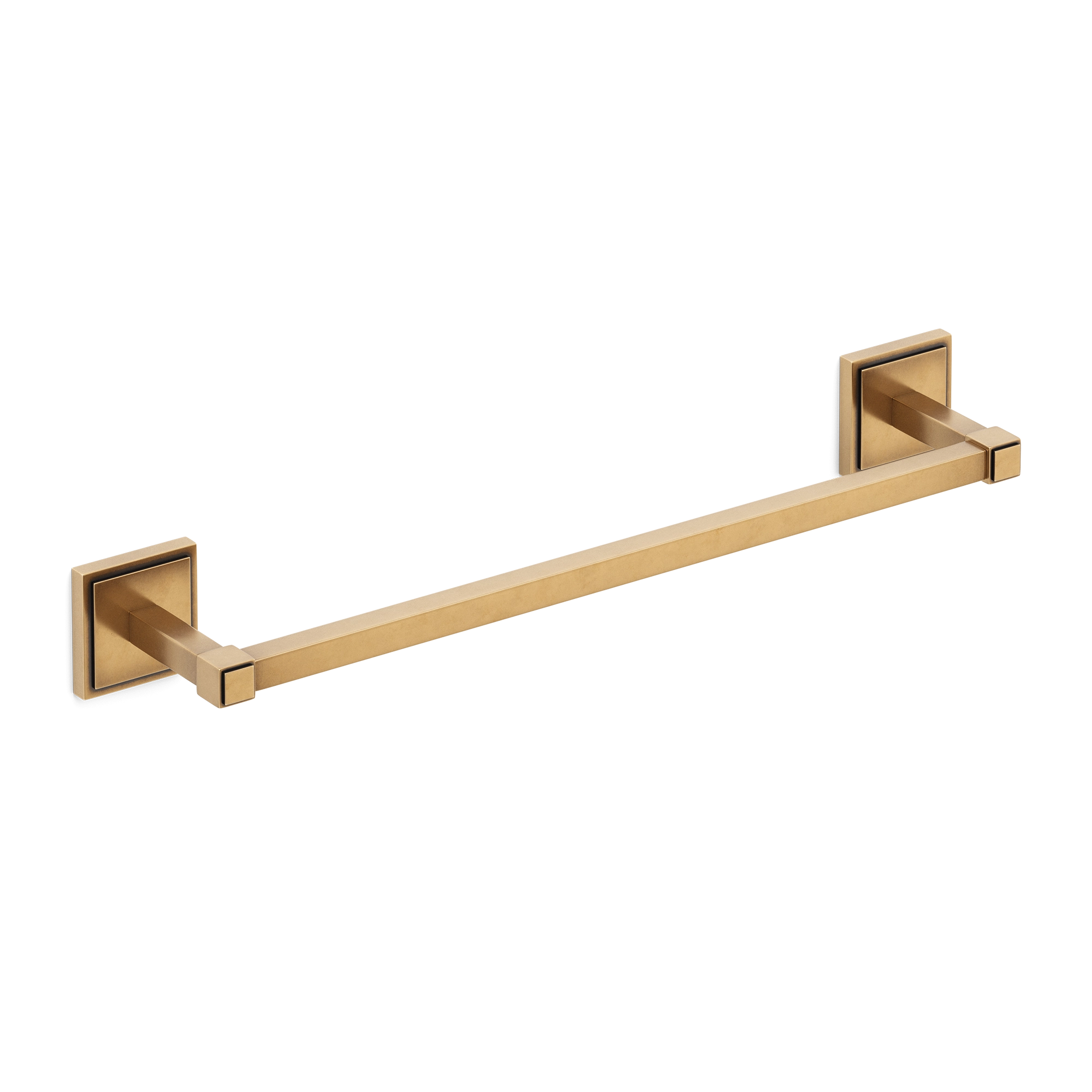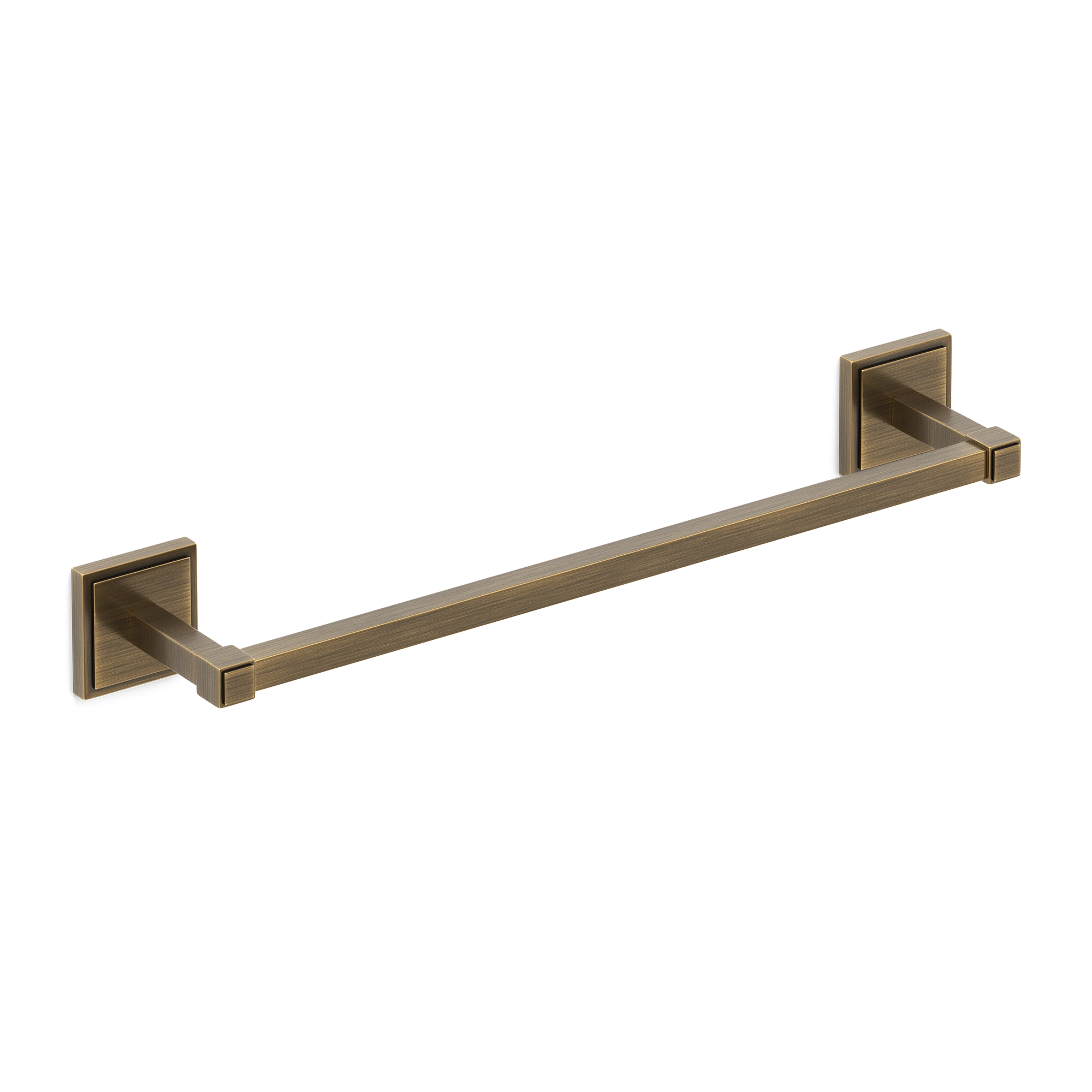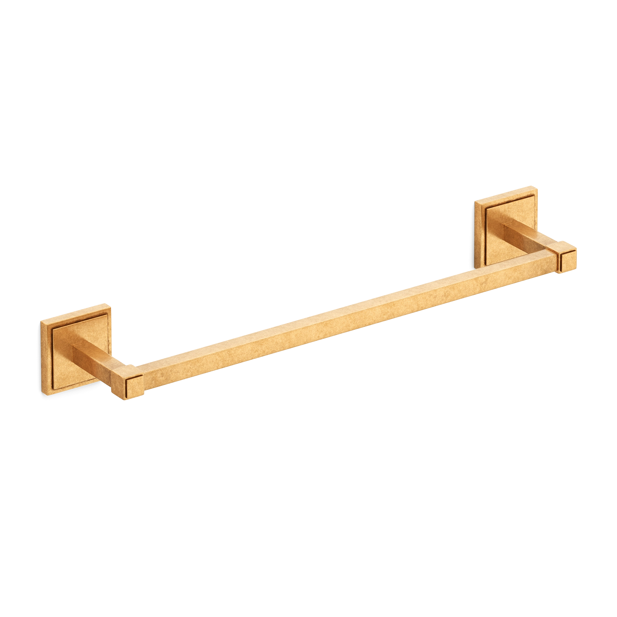 This wall-mounted towel bar offers a sophisticated and practical addition to your bathroom. It features a geometric design with a square cross-section, providing a modern and minimalist look. The bar is made of a metallic alloy, likely brass, and comes in multiple stylish finishes to match various bathroom decors.