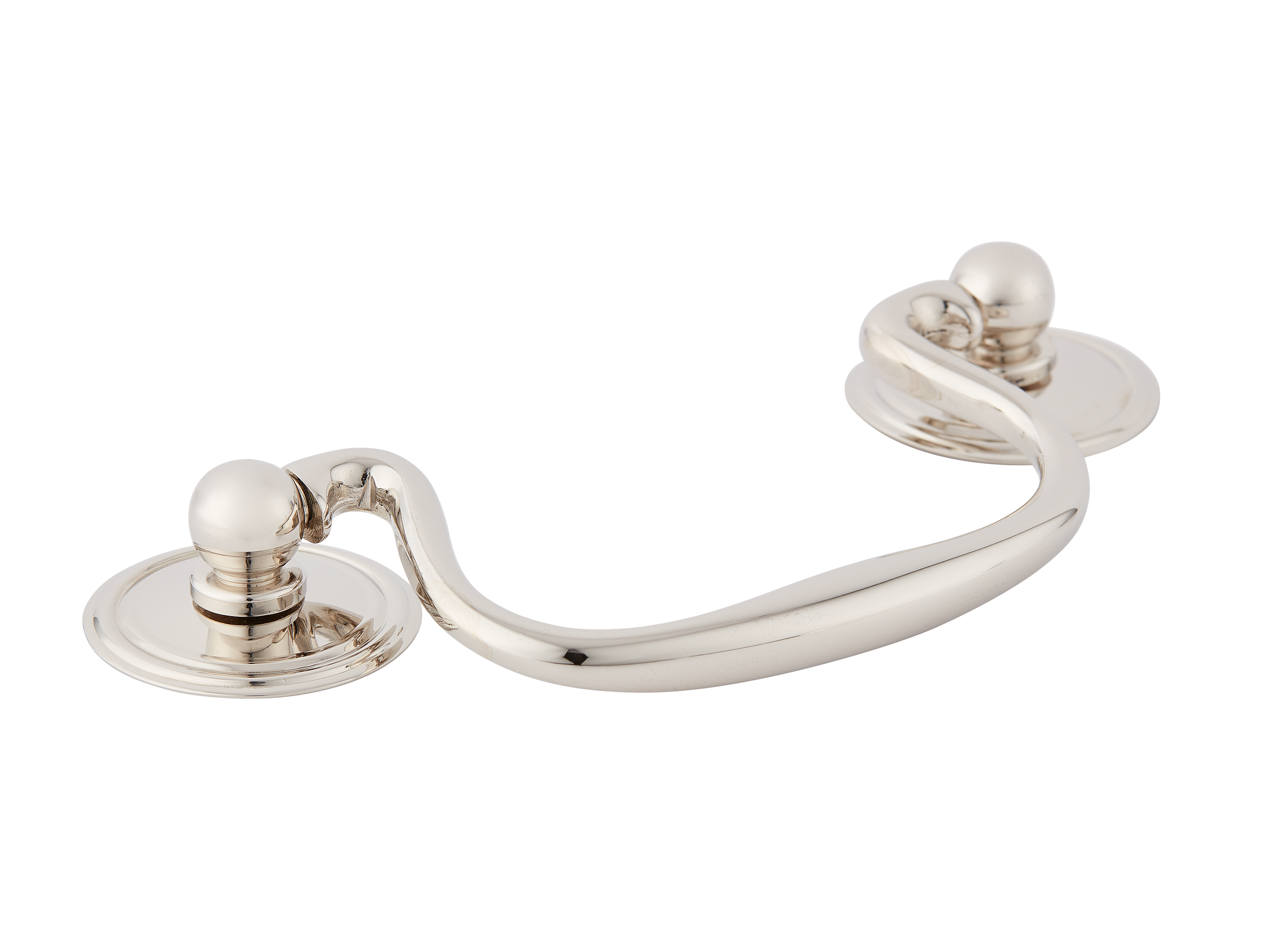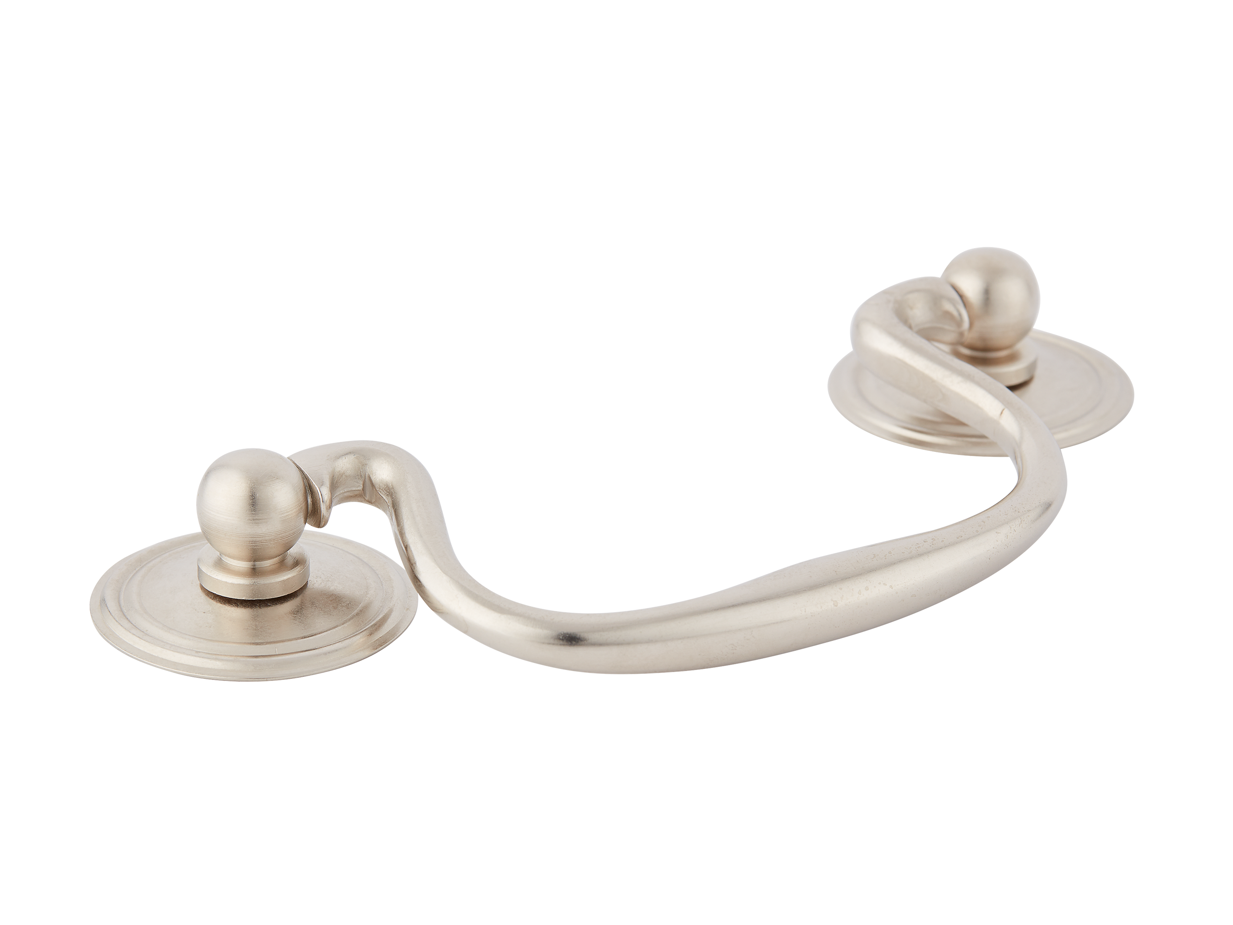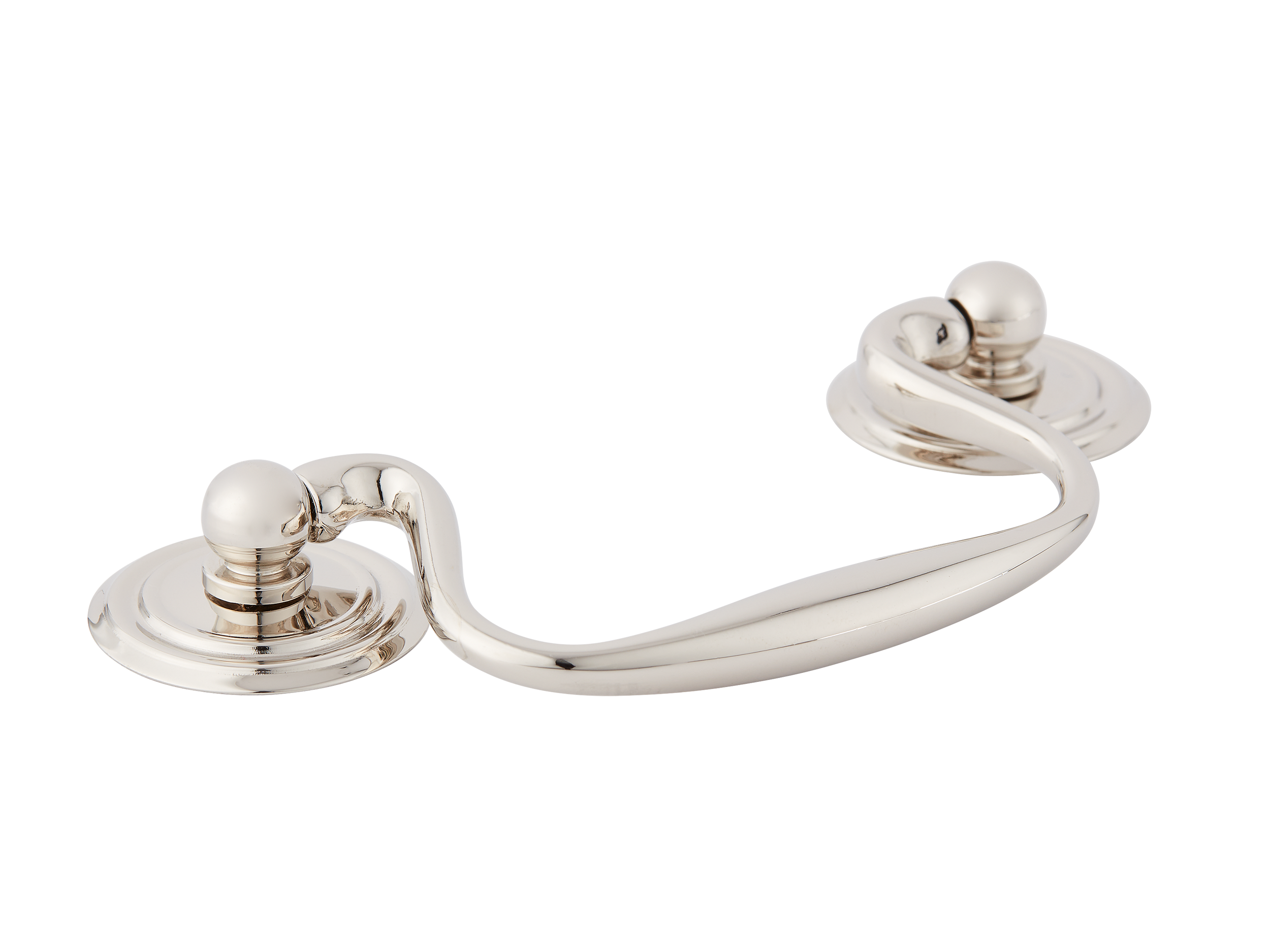 This decorative cabinet handle is a beautiful addition to any cabinet furniture. Crafted from metal, likely brass or a similar alloy, it features a continuous, curved bar connecting two ornate circular escutcheons with spherical knobs. The concentric – ringed escutcheons and the flowing bar design add a touch of traditional charm, while the multiple finishes allow it to match different decor styles.