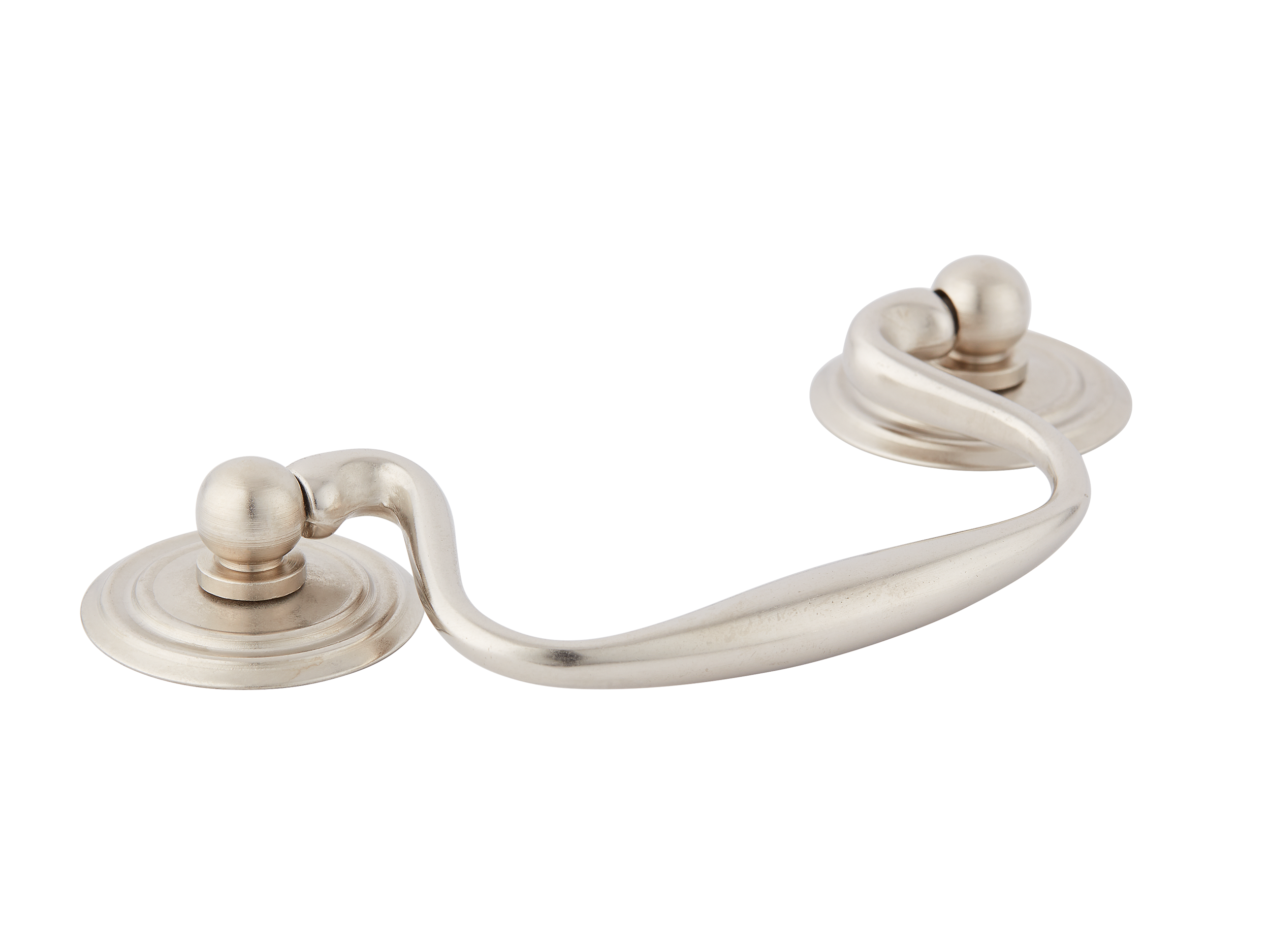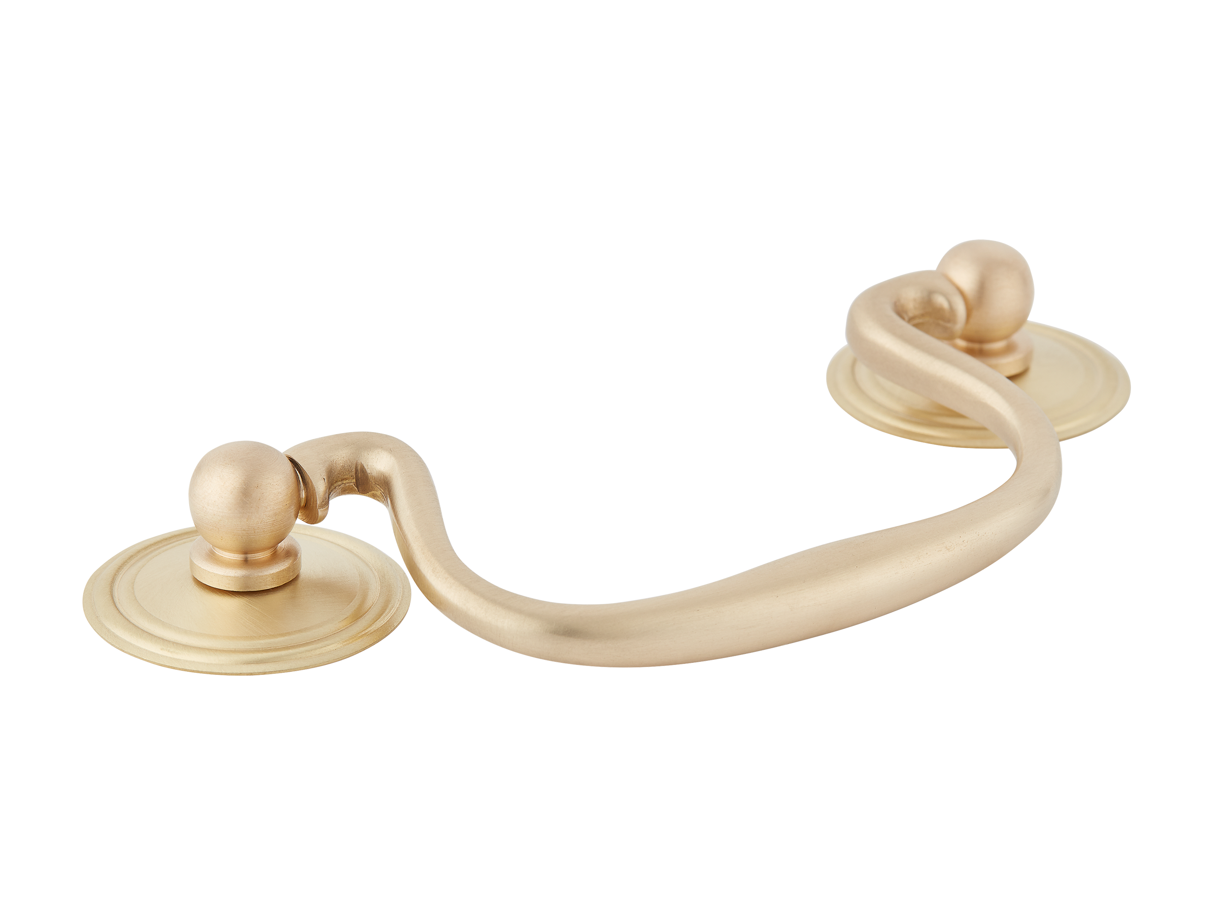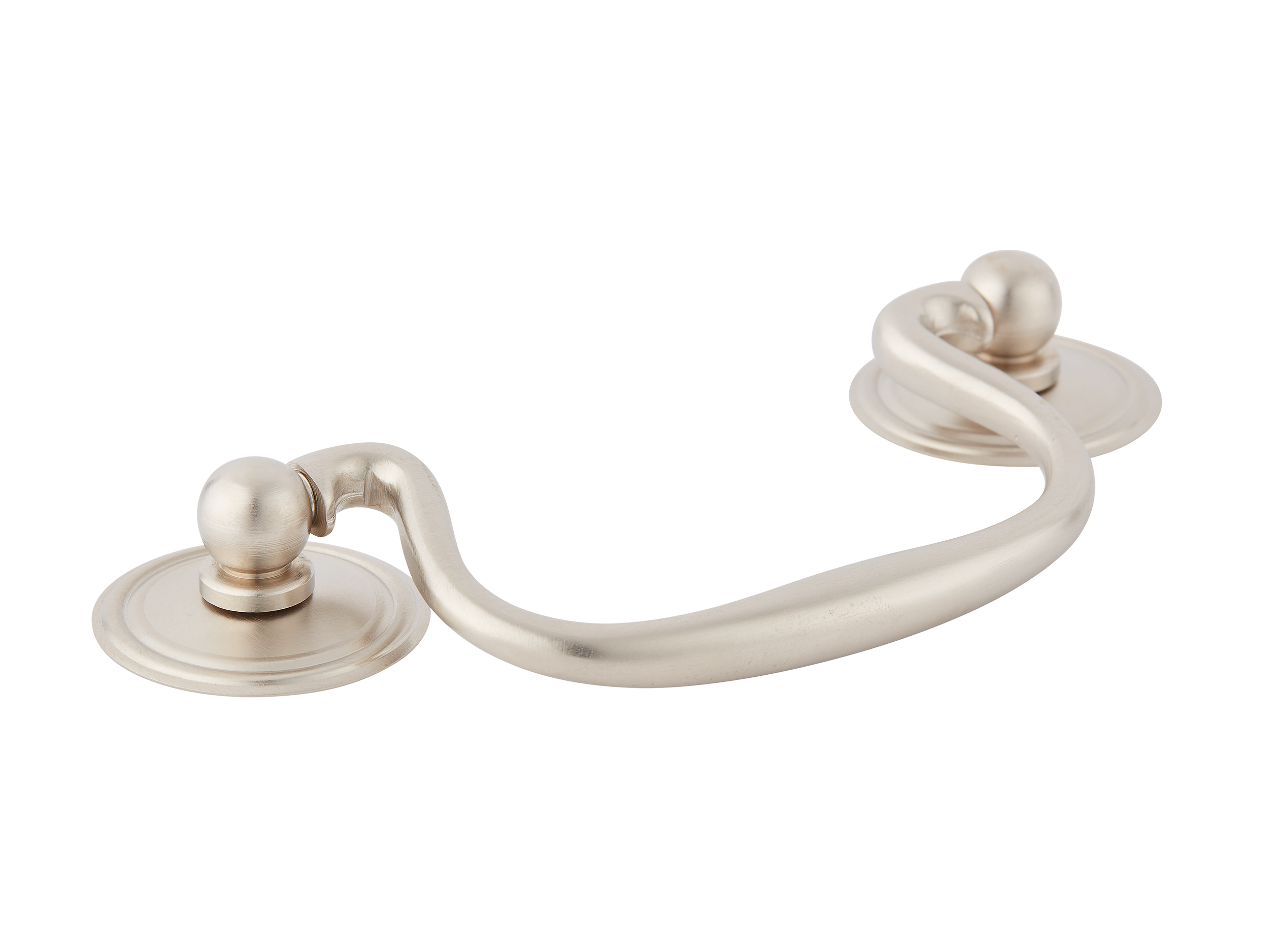 This decorative cabinet handle is a beautiful addition to any cabinet furniture. Crafted from metal, likely brass or a similar alloy, it features a continuous, curved bar connecting two ornate circular escutcheons with spherical knobs. The concentric – ringed escutcheons and the flowing bar design add a touch of traditional charm, while the multiple finishes allow it to match different decor styles.