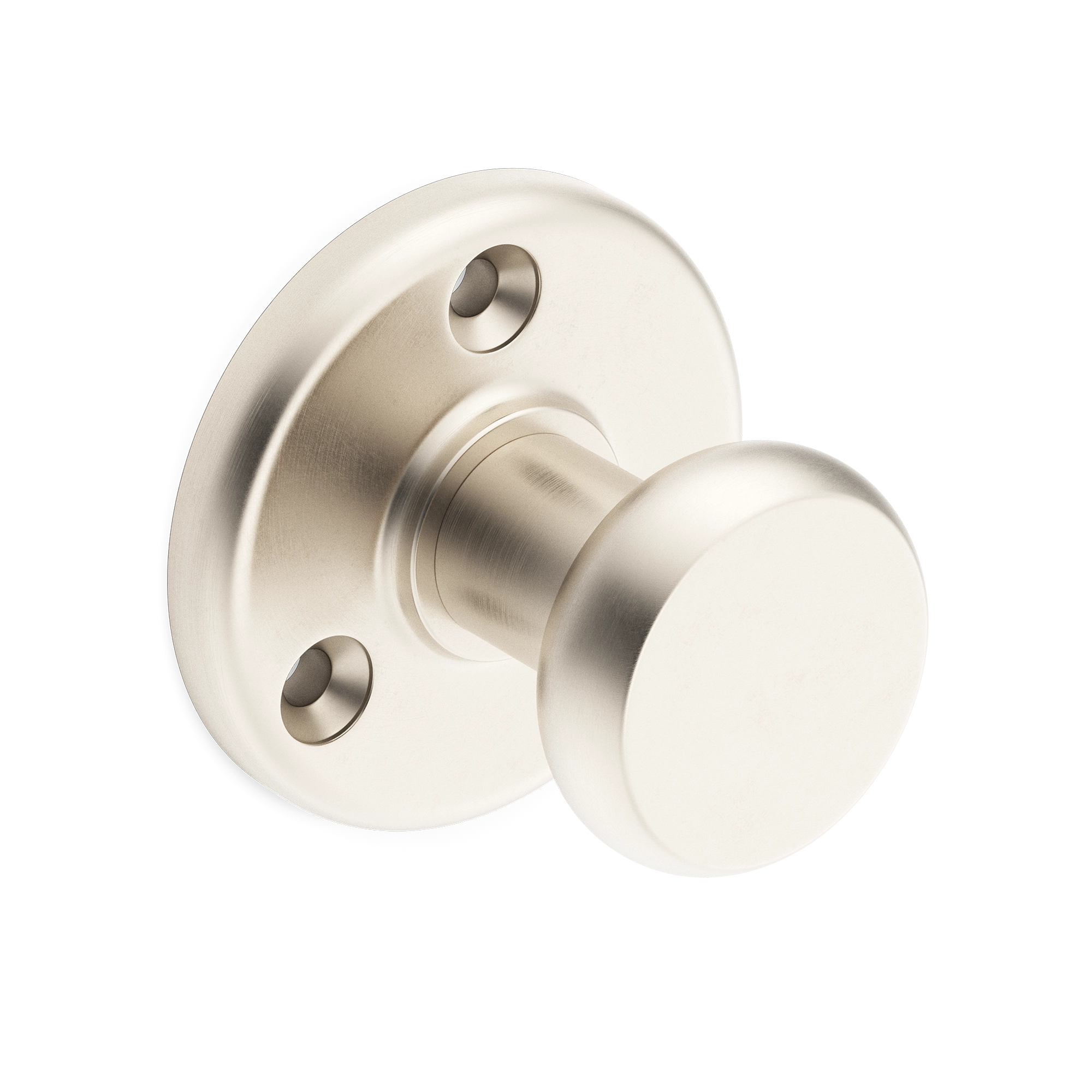 This is a minimalist rounded door knob that offers both functionality and aesthetic appeal. With a circular base plate, short cylindrical stem, and a smooth rounded knob, it is designed for easy installation on interior doors. The various finish treatments give it the ability to match different decor styles.