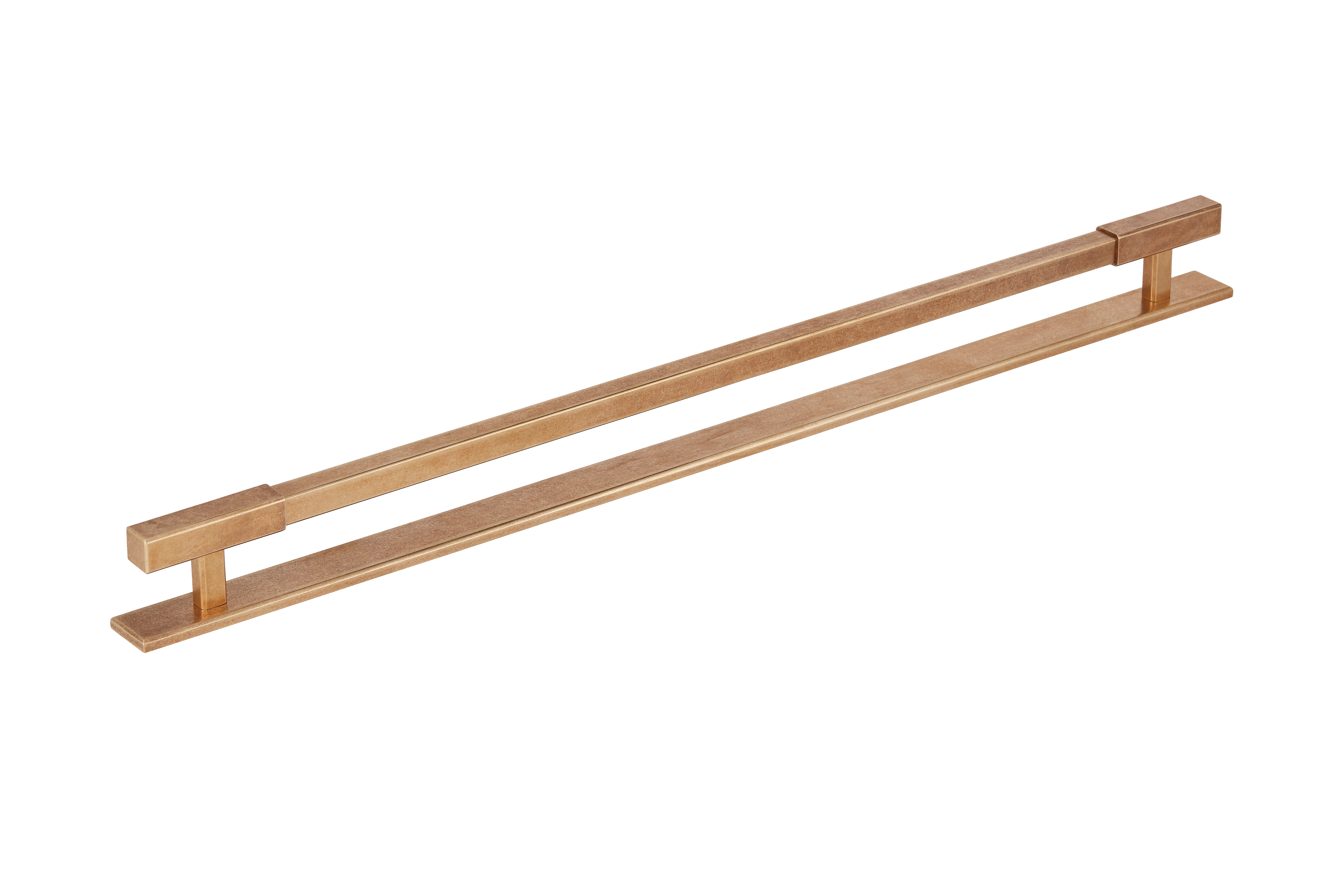 This cabinet/drawer pull features a minimalist, geometric design with a dual – bar metallic structure. Made from a likely metallic alloy, it comes in a wide array of finishes. The long, rectangular design is both functional for easy gripping and visually appealing, suitable for various cabinetry.