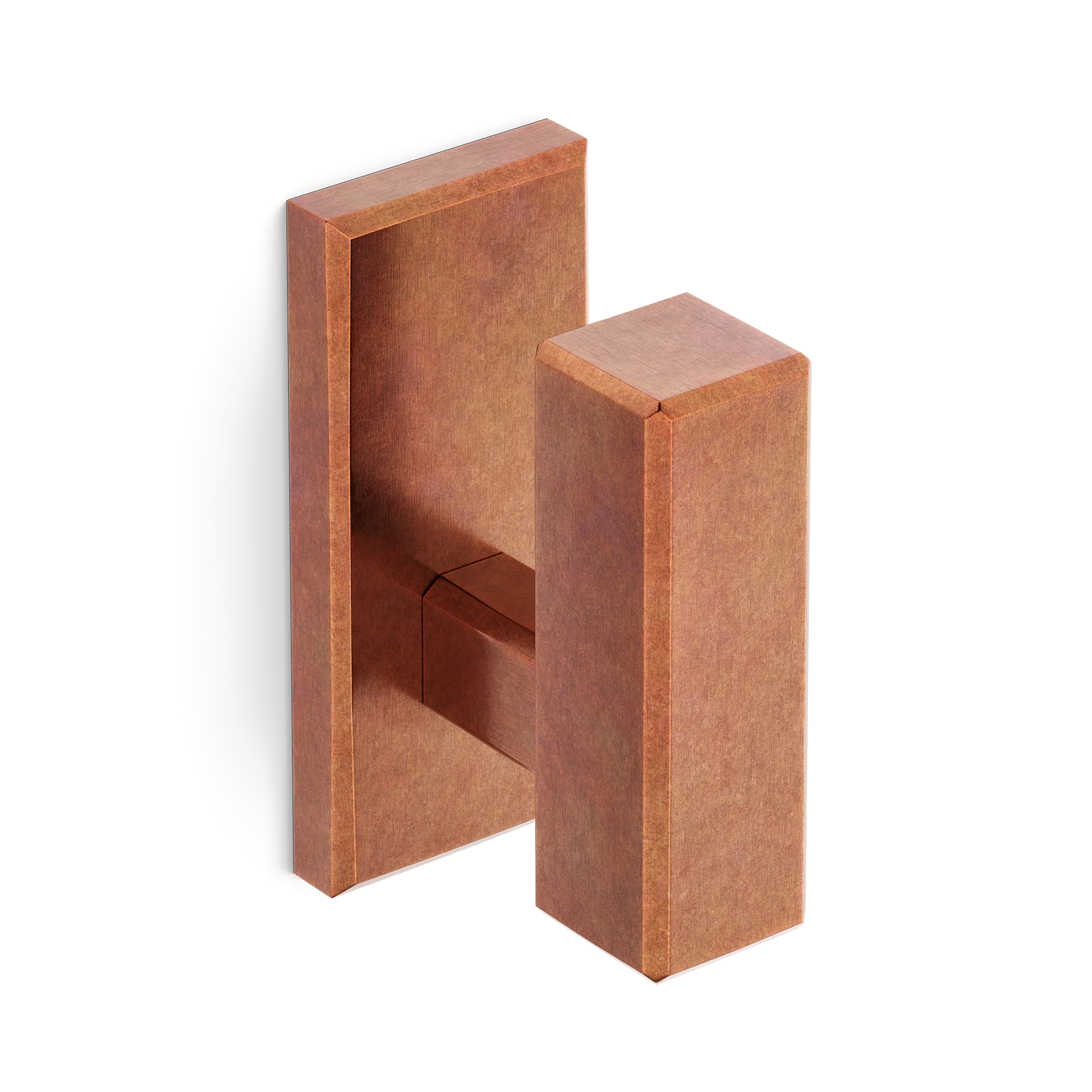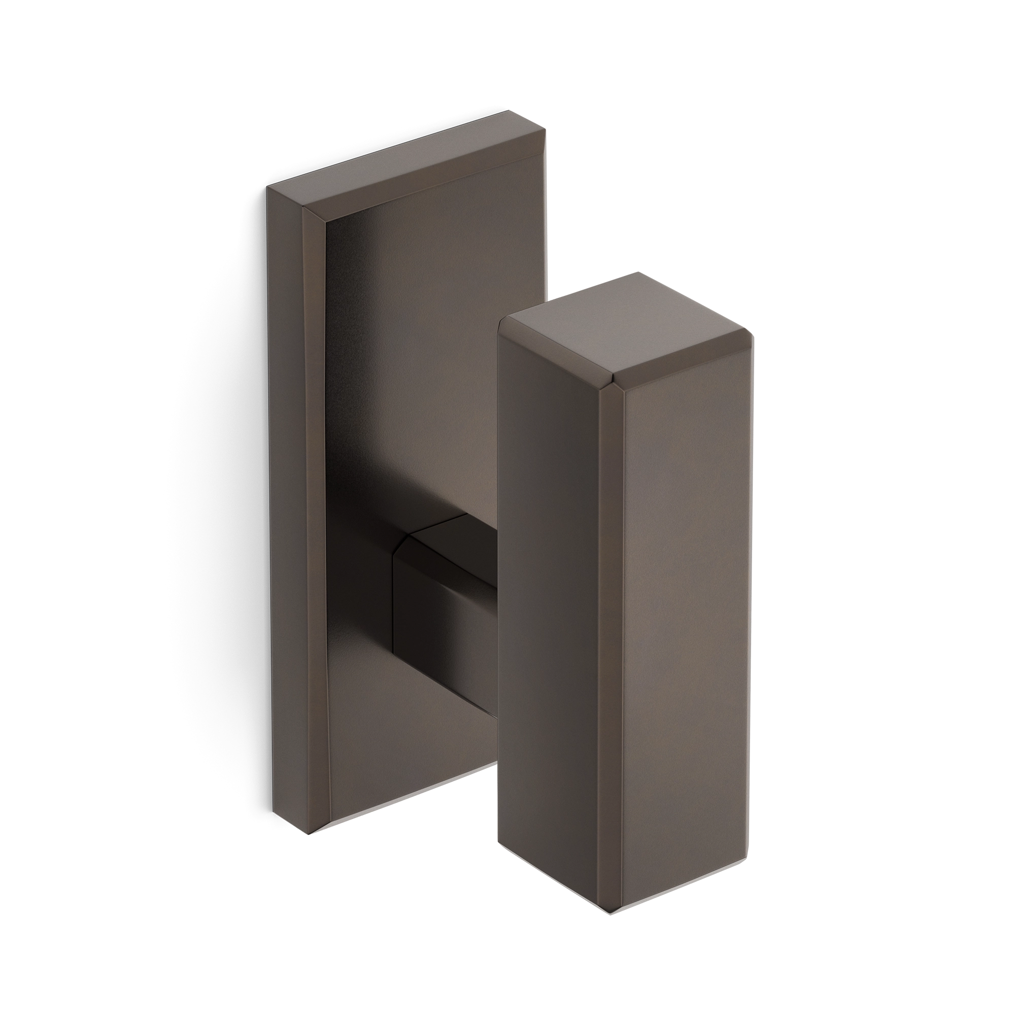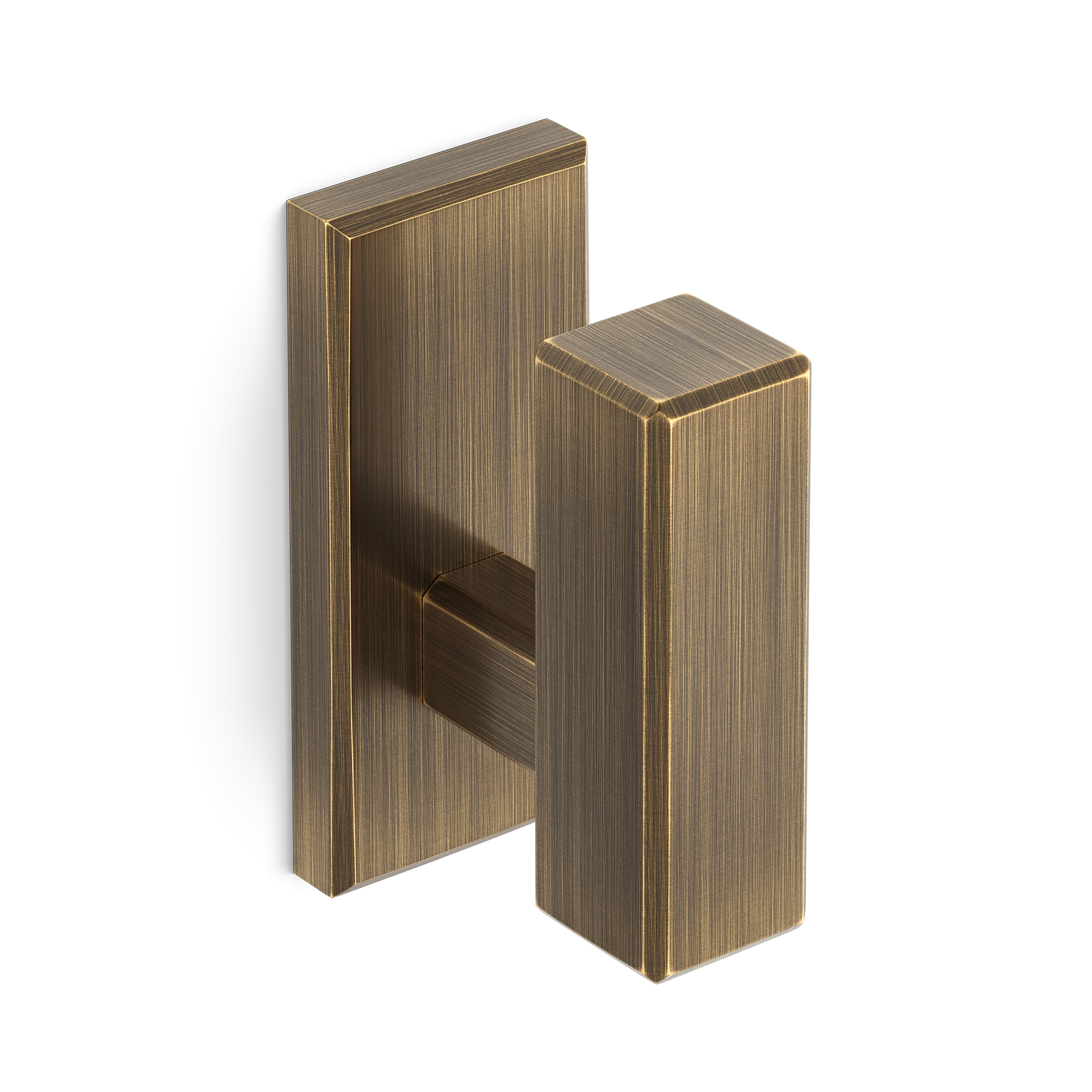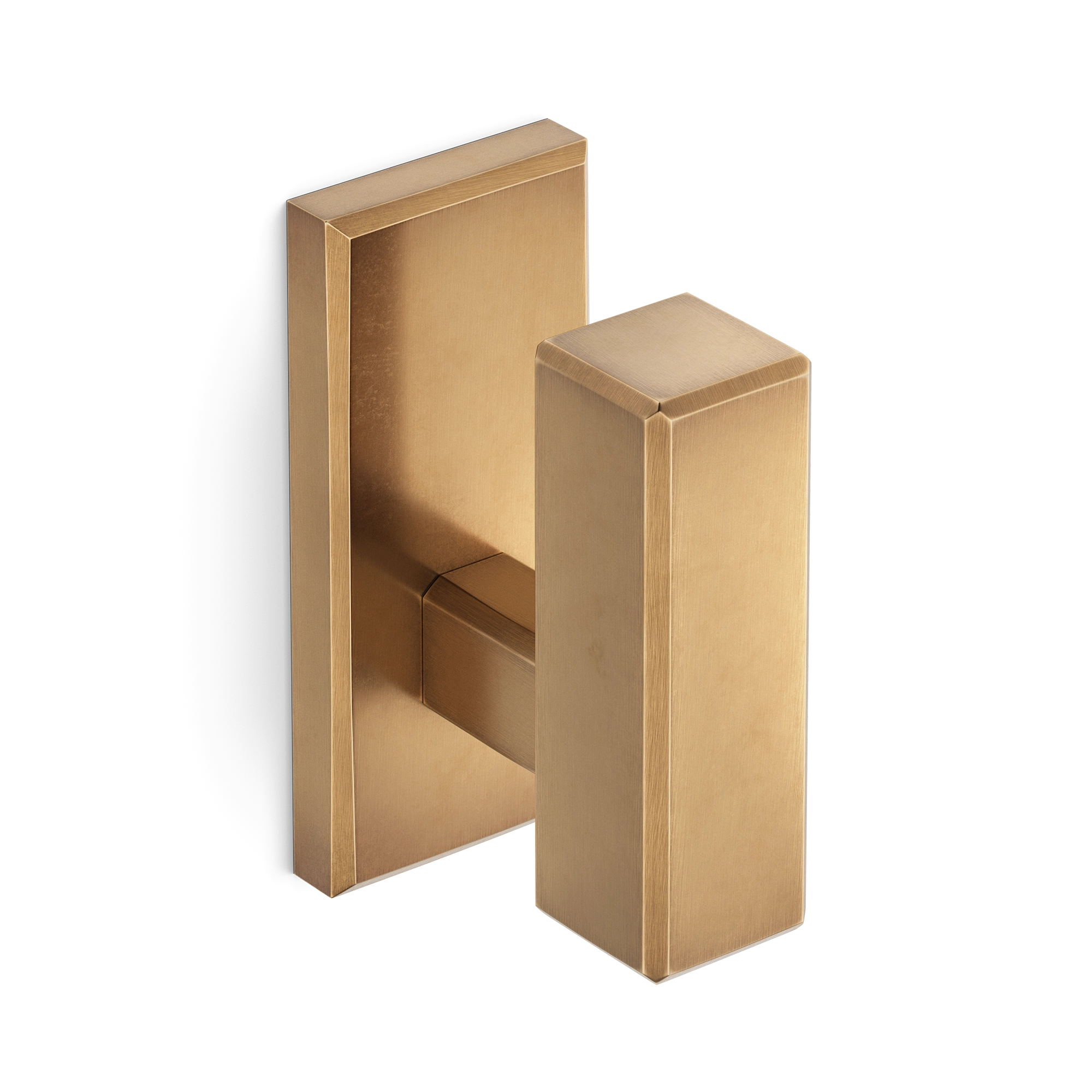 This wall-mounted hook is a geometric and minimalist design piece crafted from metal. Its flat rectangular base and vertical rectangular bar create a simple yet functional shape. The multiple color and finish options, paired with its clean edges, make it suitable for adding both practical storage and a touch of luxury to various spaces.