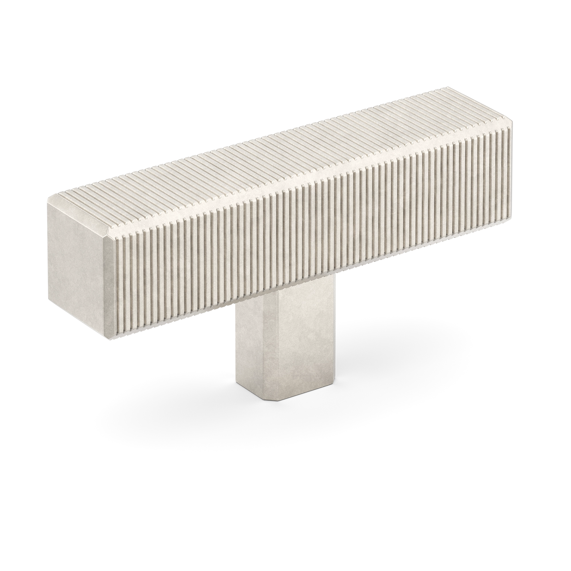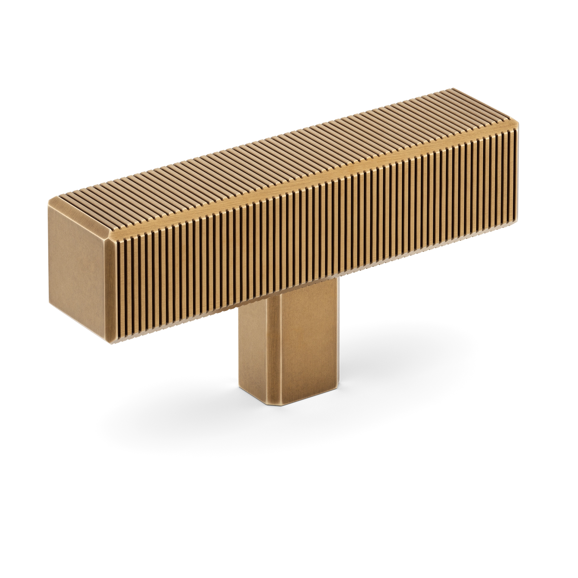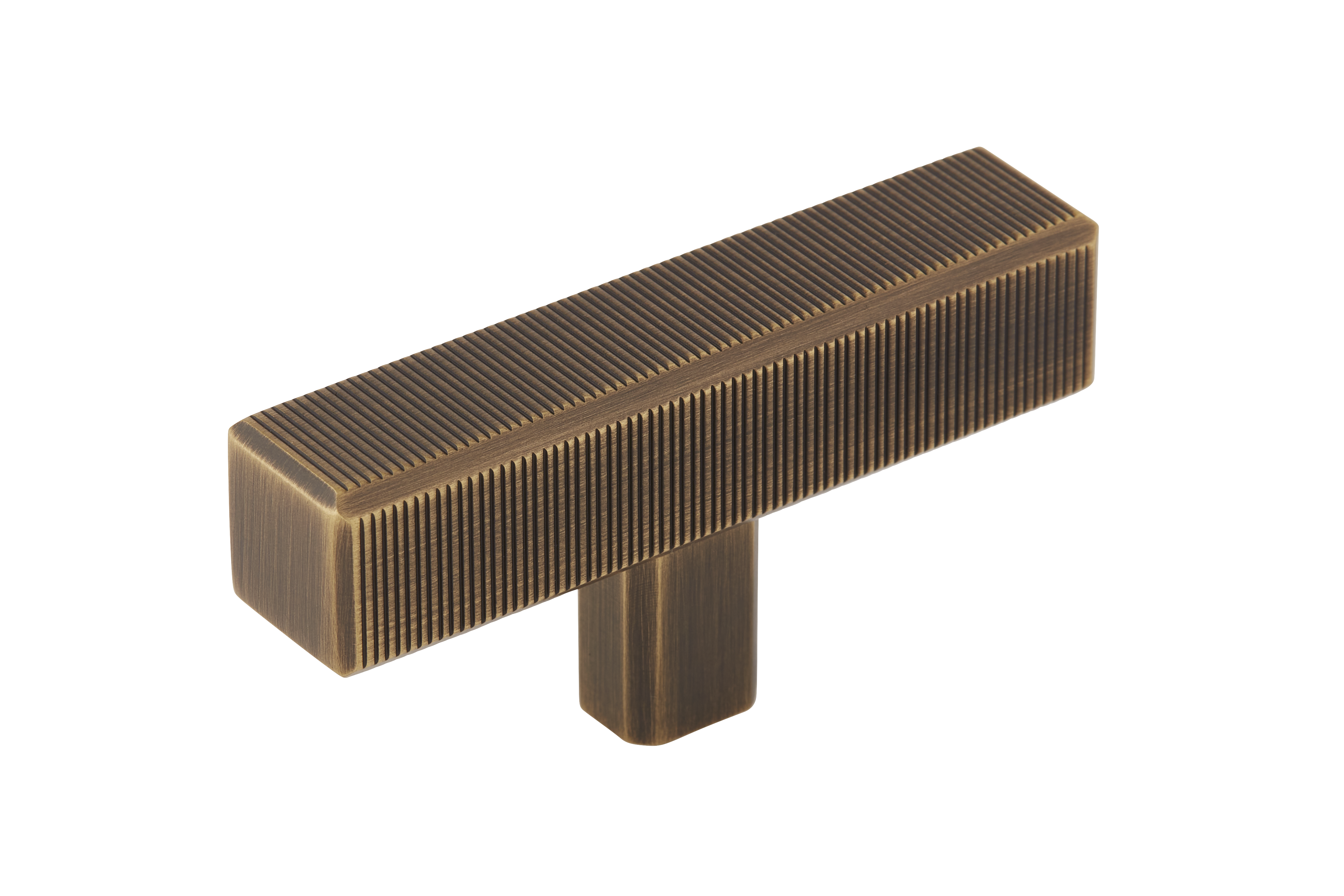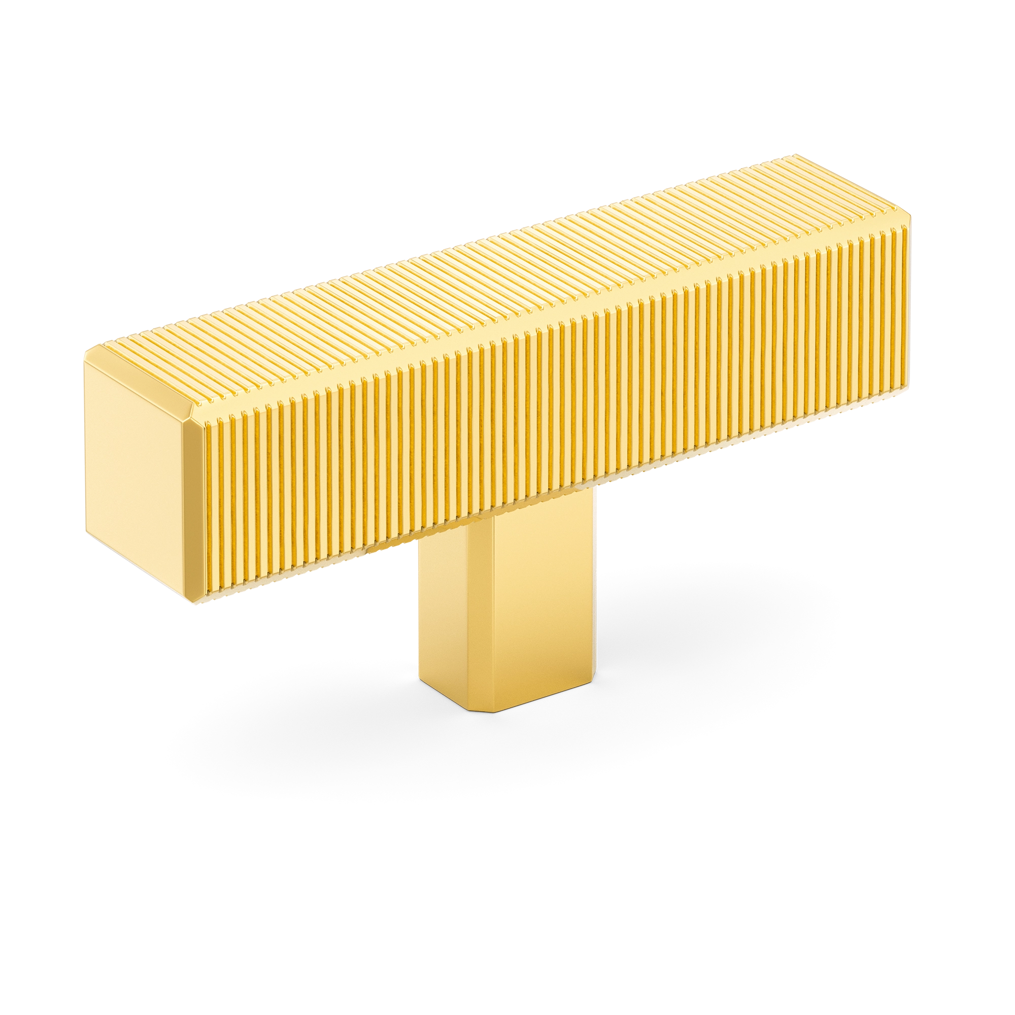 This cabinet/drawer knob is a perfect blend of functionality and style. It features a rectangular top with vertical ridges and a square T – shaped mounting post. The knob is made of metal, likely brass, and comes in a variety of metallic finishes, from polished silver to aged brass, adding an industrial aesthetic to your furniture.