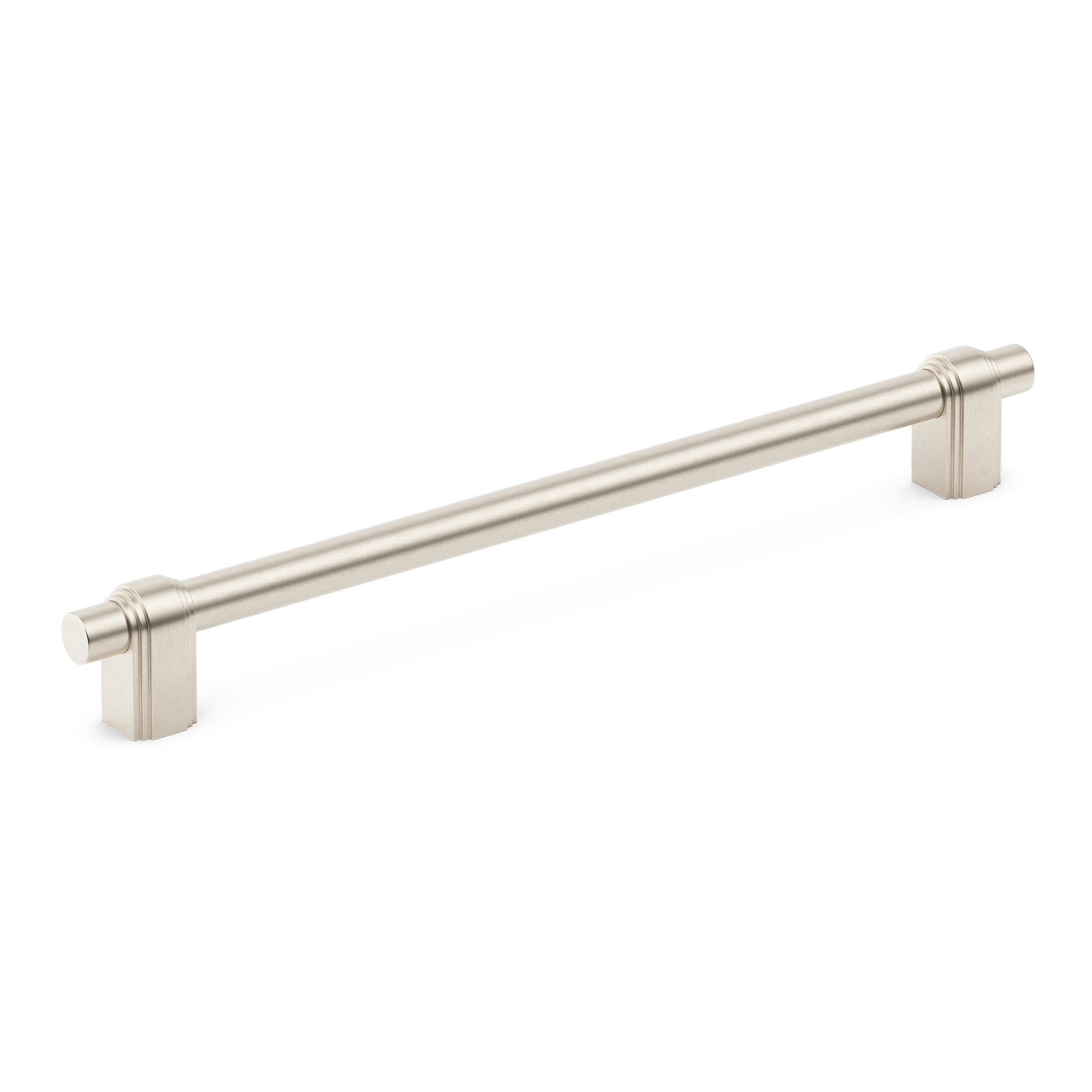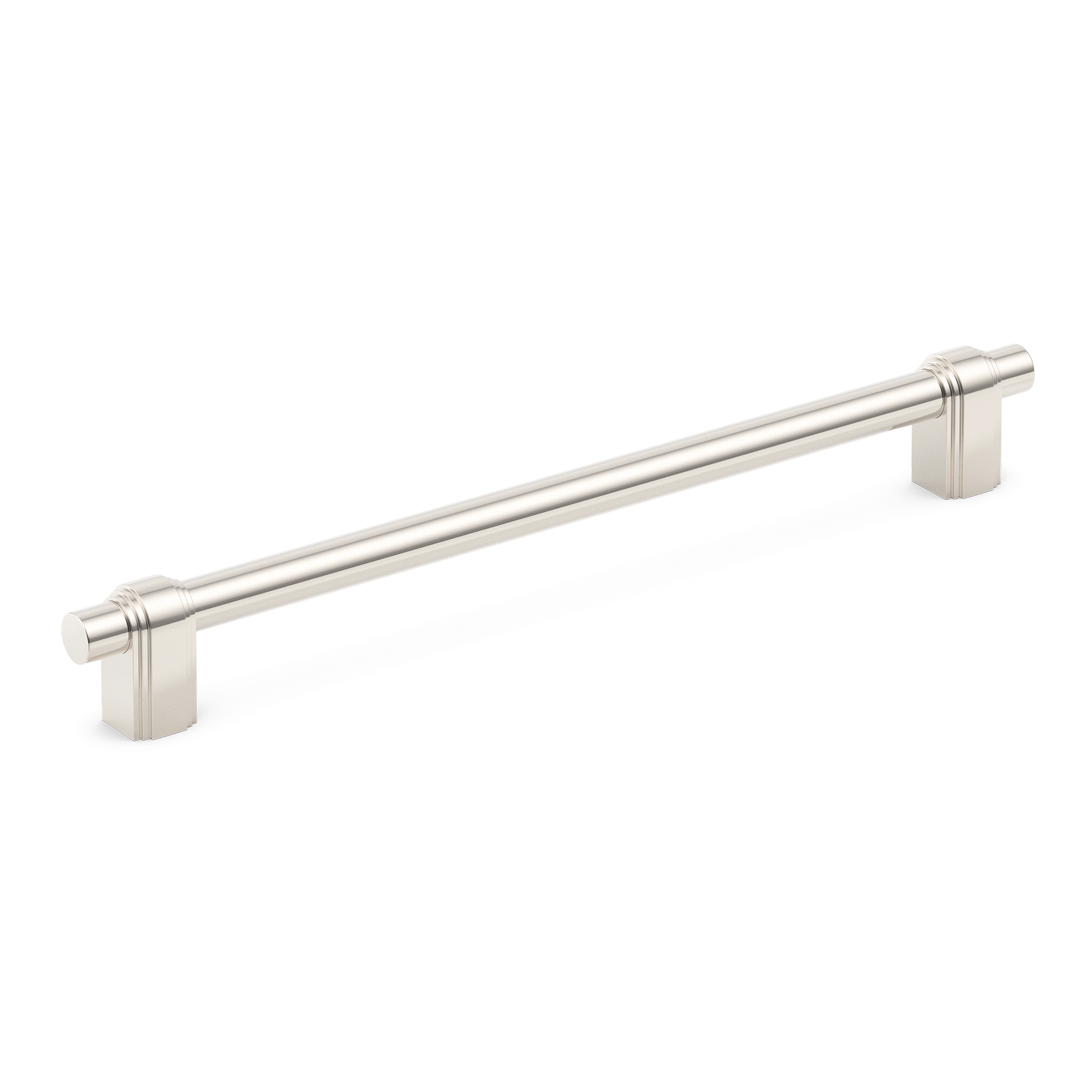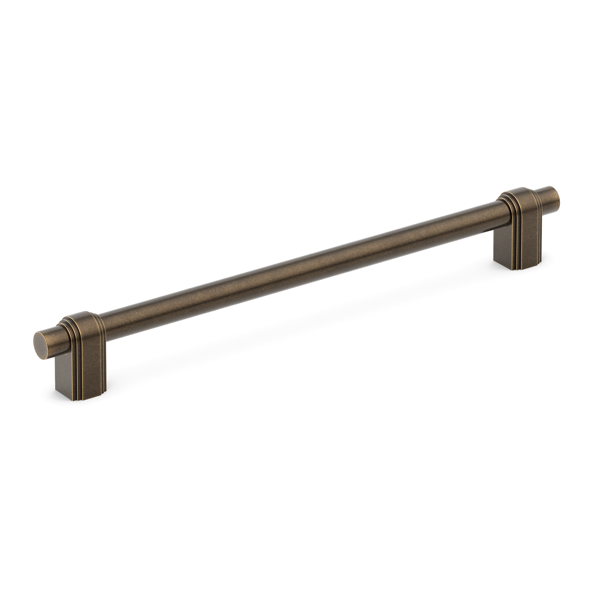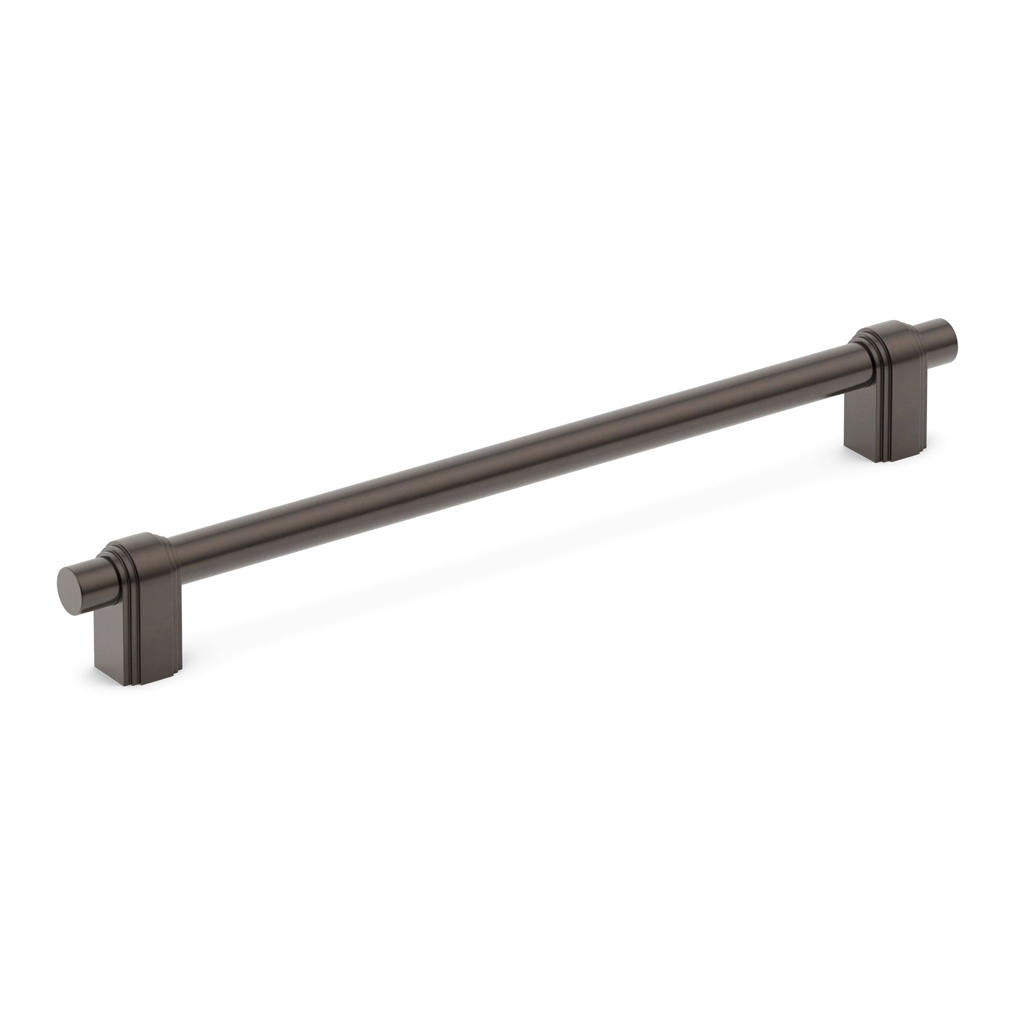 This cabinet/drawer handle is a stylish and functional addition to any space. With its long, cylindrical central rod and decorative end caps, it offers a sleek look. The end caps feature vertical grooves and ringed details, while the rod is smooth and slightly tapered for an ergonomic grip. The multiple metallic finishes allow it to match various interior styles.