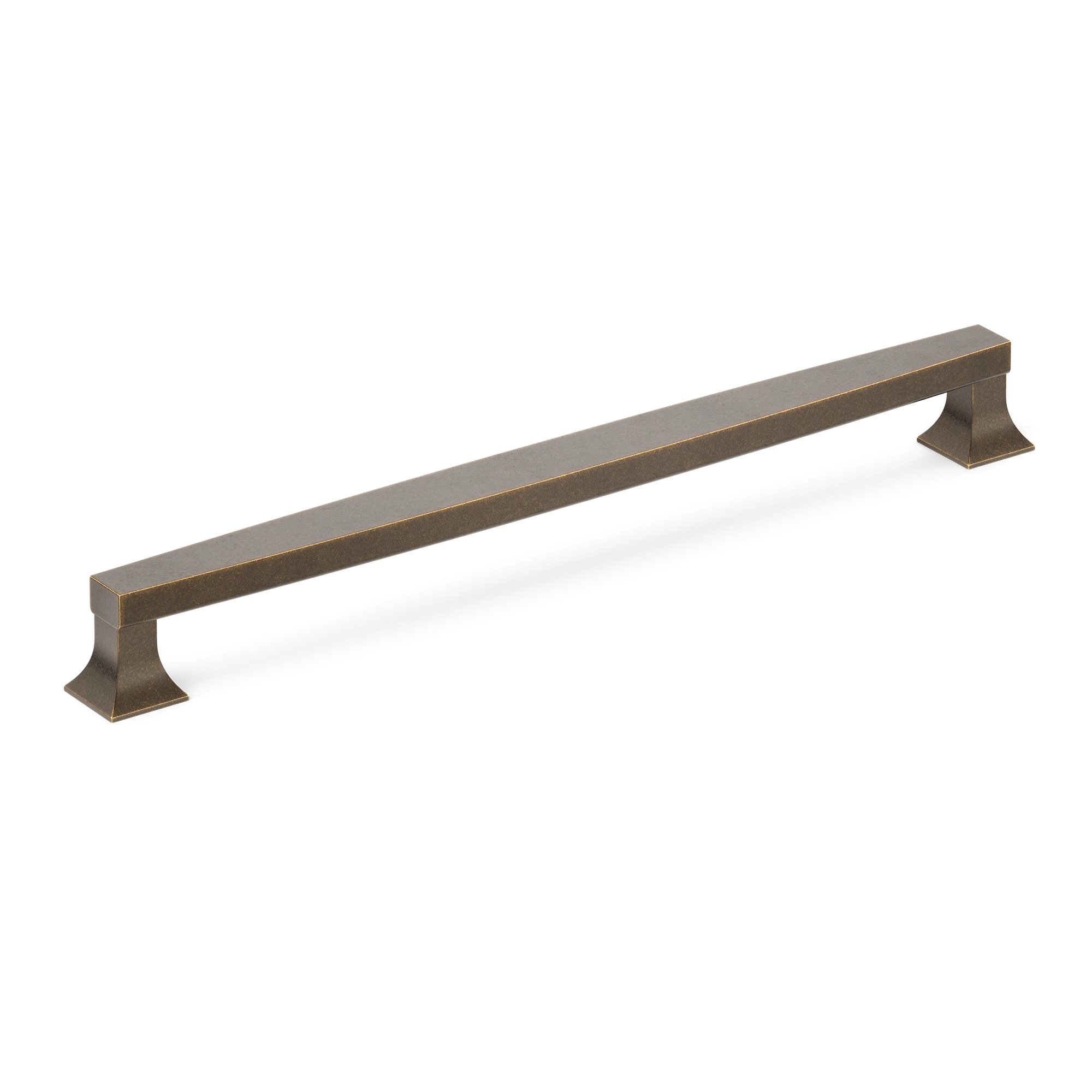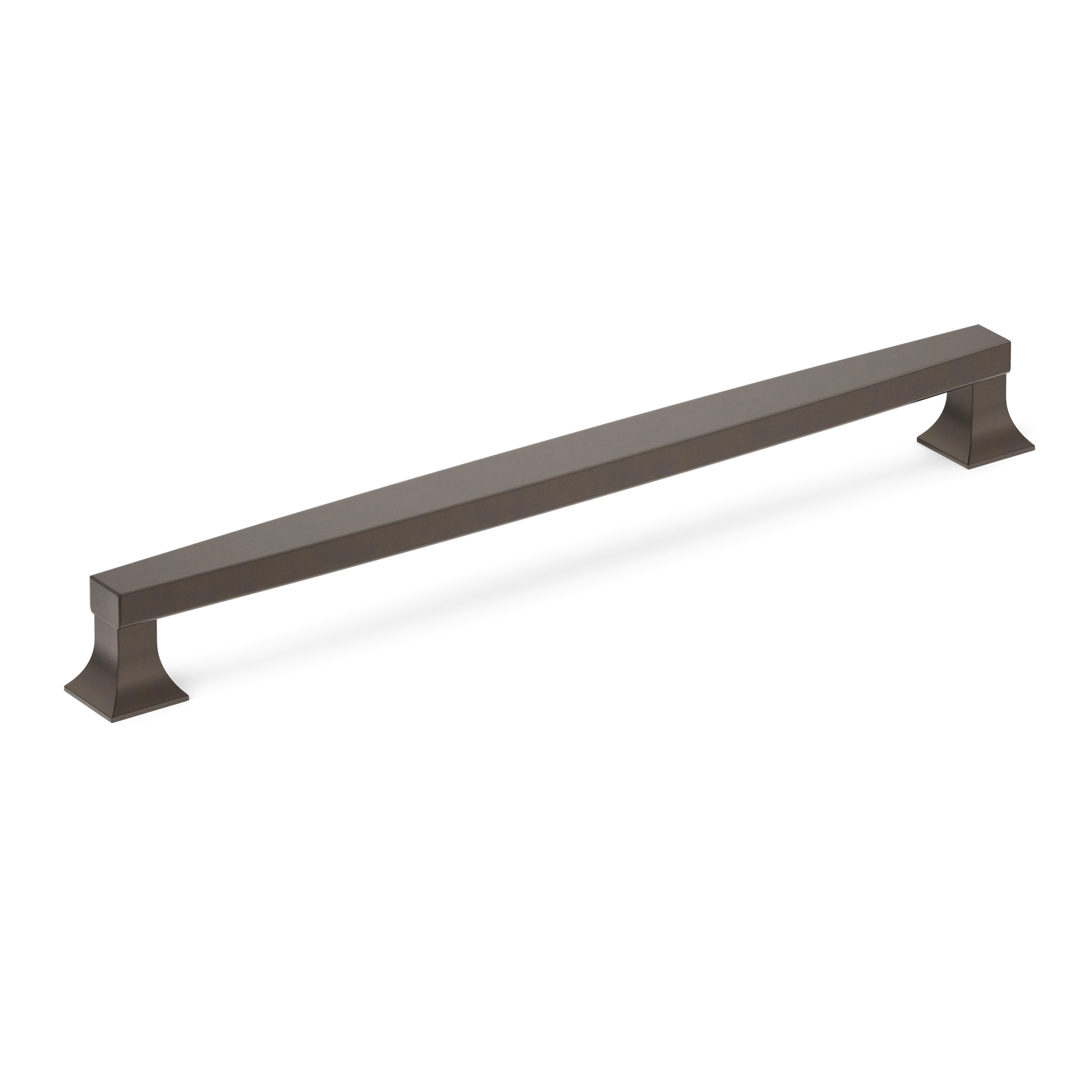 This is a cabinet/drawer pull handle crafted from metal. It showcases a minimalist and modern design with clean, straight lines. The long, rectangular bar with flared – pedestal end supports not only makes it functional for opening and closing drawers or cabinet doors but also adds a touch of elegance to the furniture.