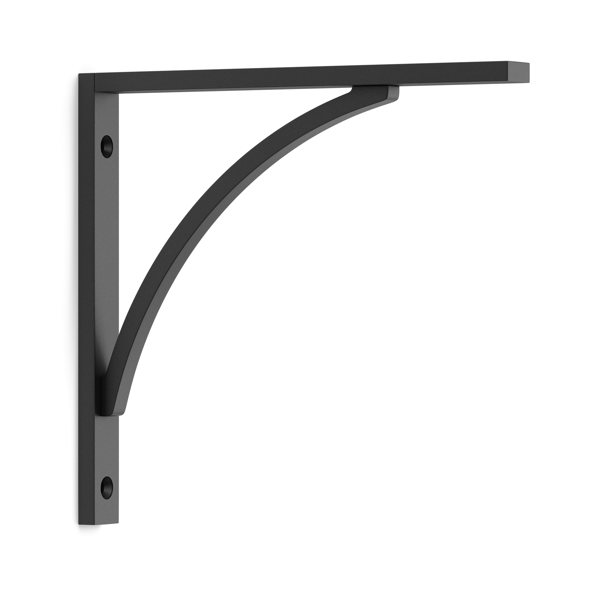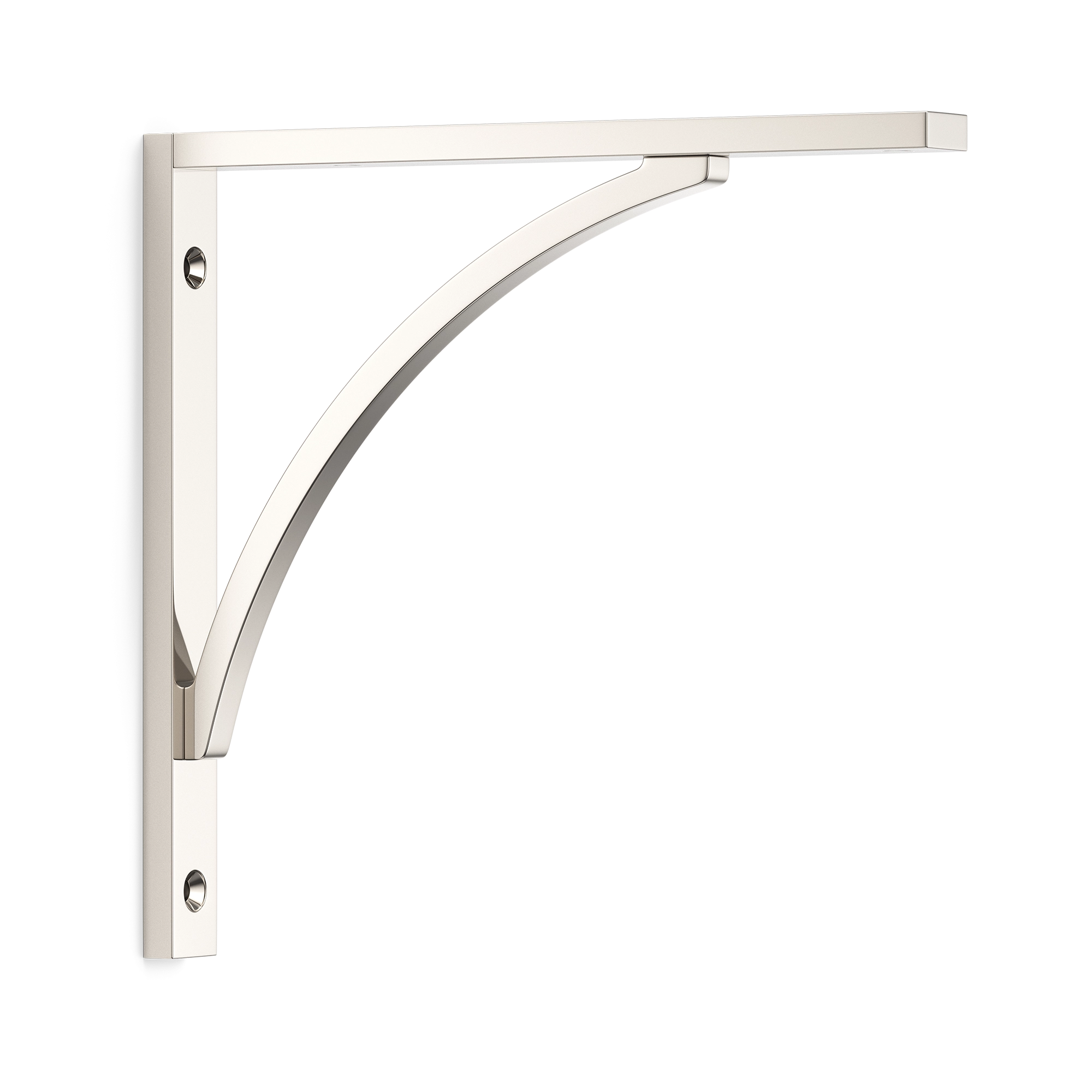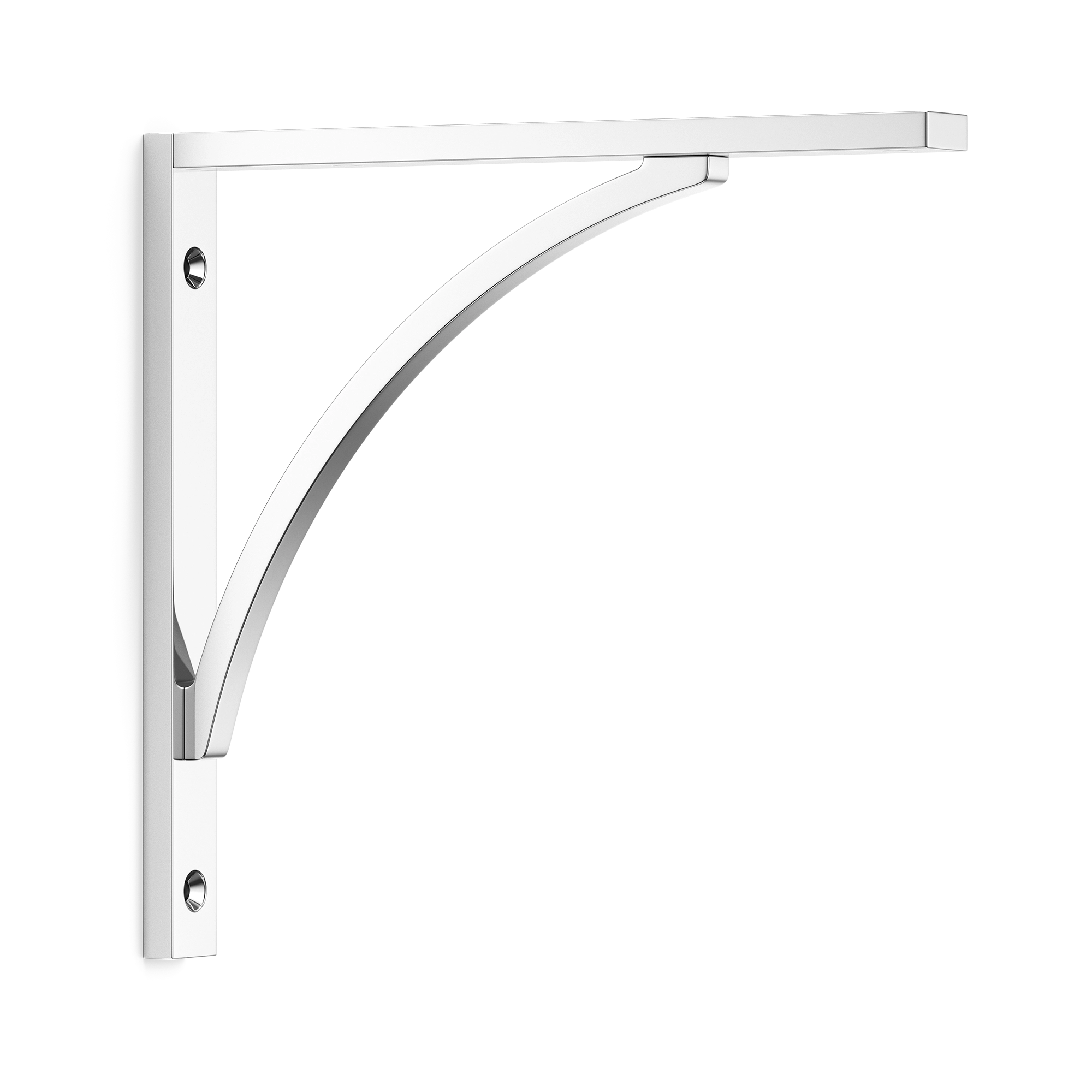 - The curved diagonal strut distributes shelf weight effectively from the horizontal arm to the vertical wall plate.