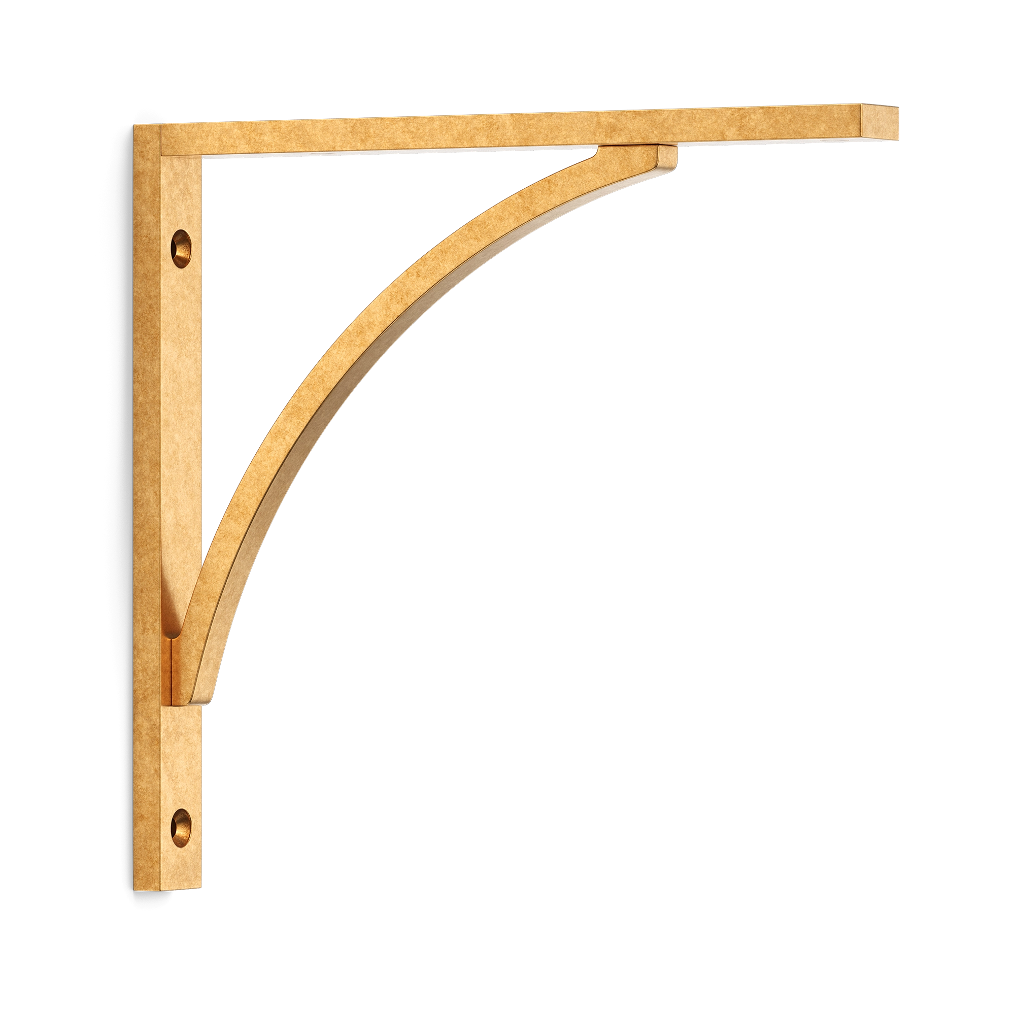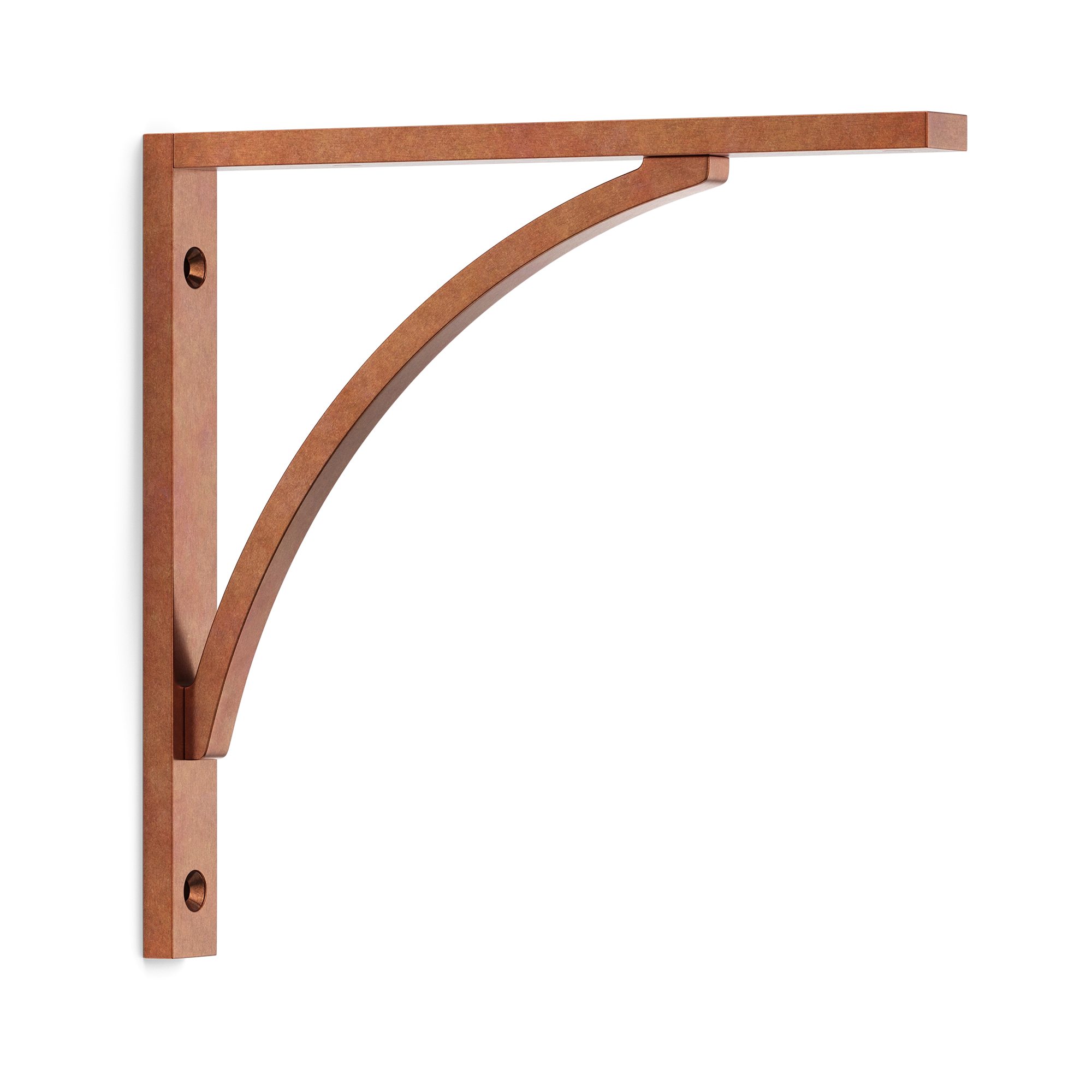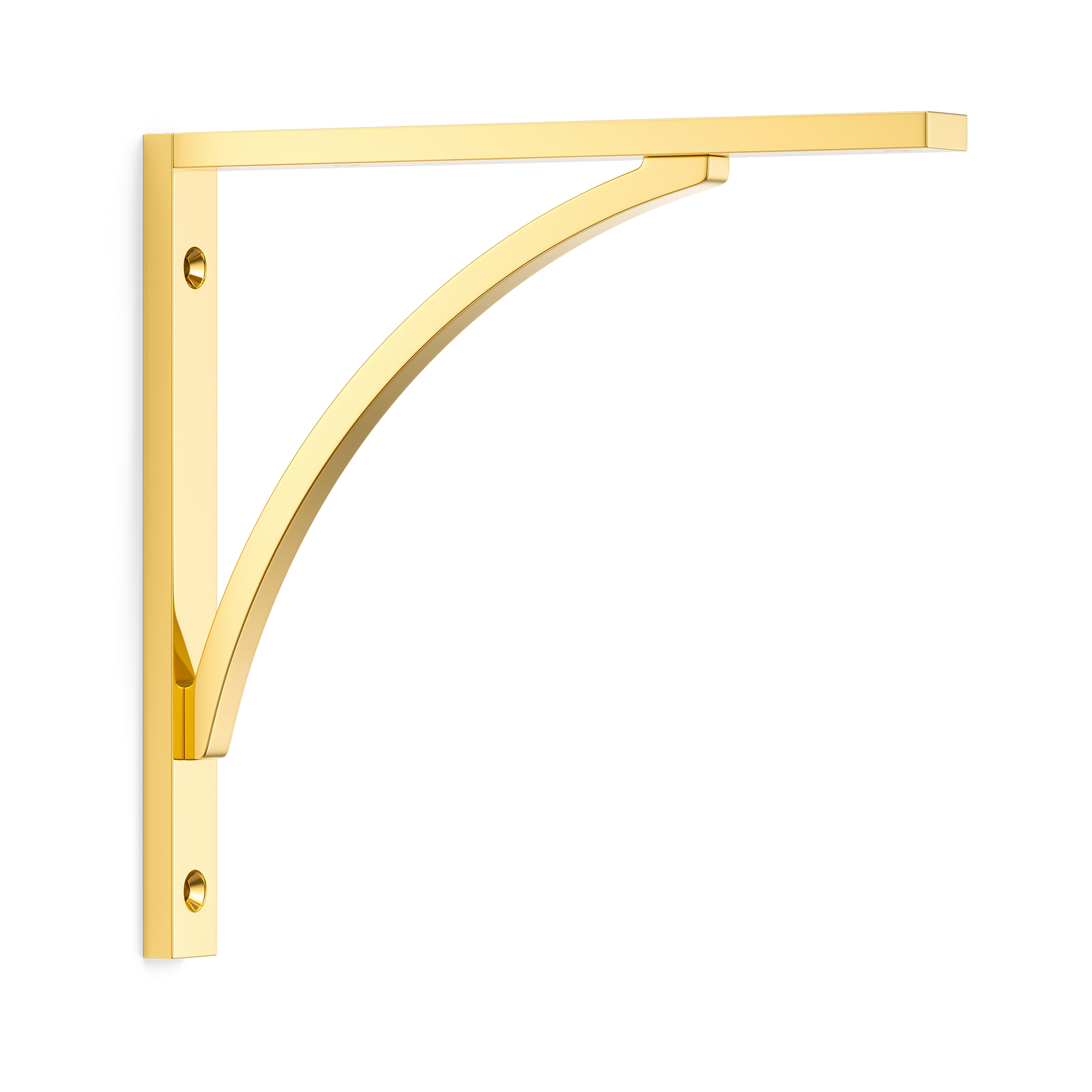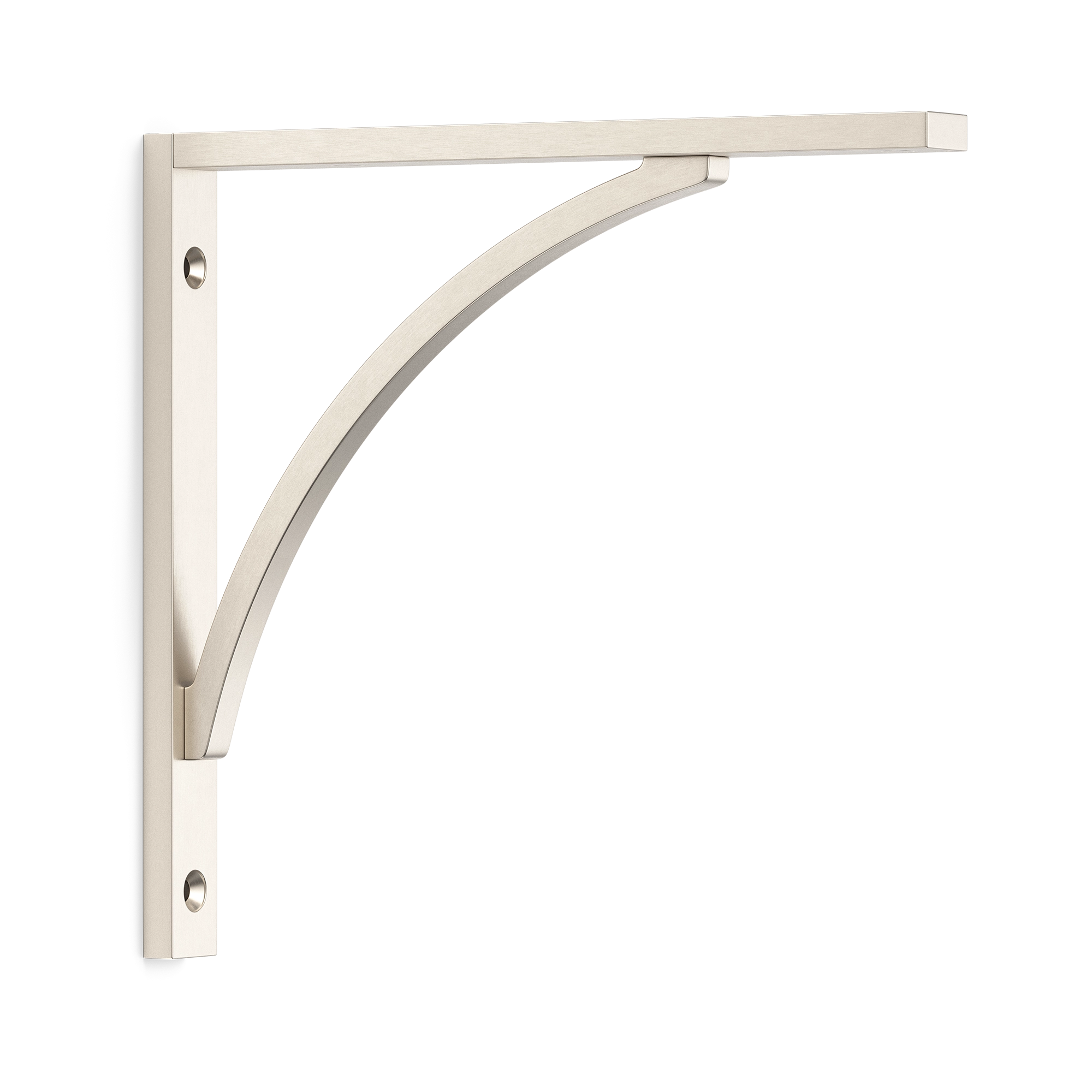 - The curved diagonal strut distributes shelf weight effectively from the horizontal arm to the vertical wall plate.