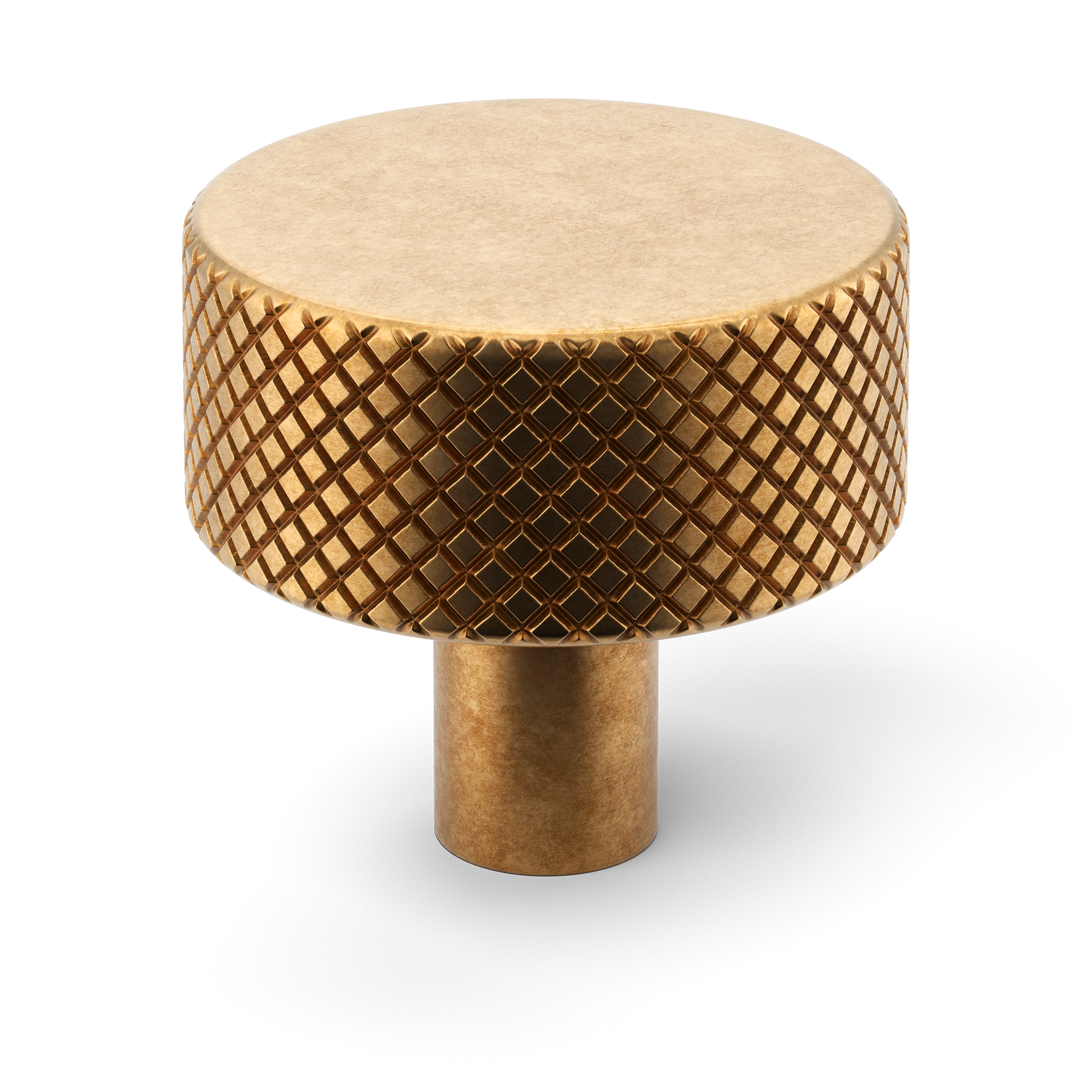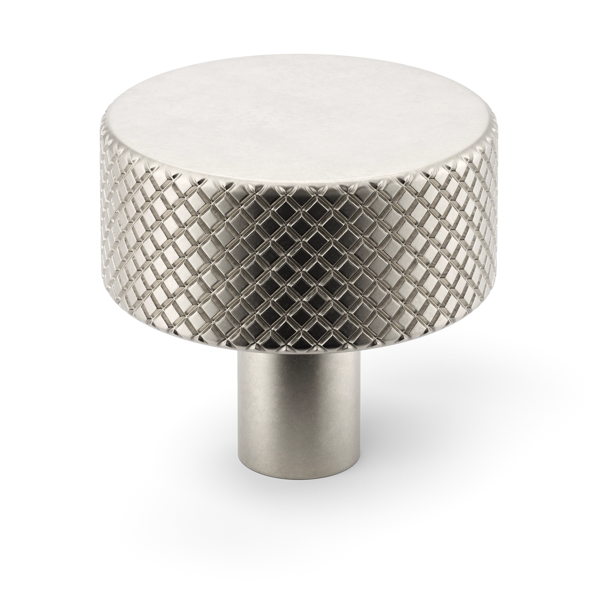 This cabinet knob offers a pared – back hardware look without a backplate. It is made of metal, likely an alloy, with various surface treatments. The central design feature is a diamond – grid embossed texture on the side, which not only adds visual interest but also provides a tactile feel.