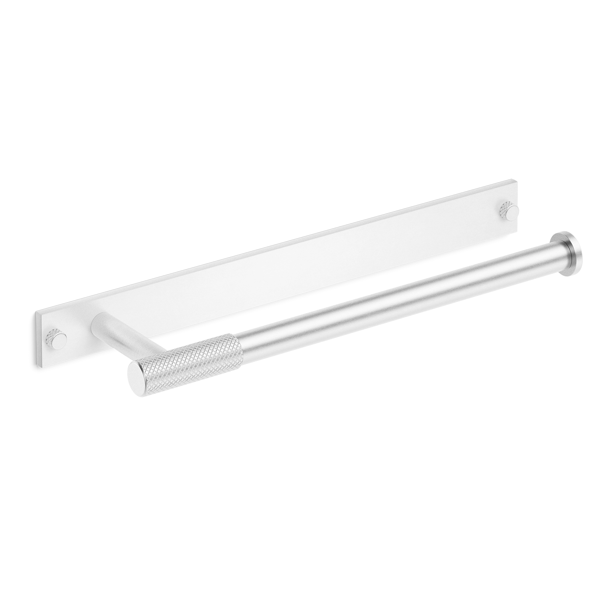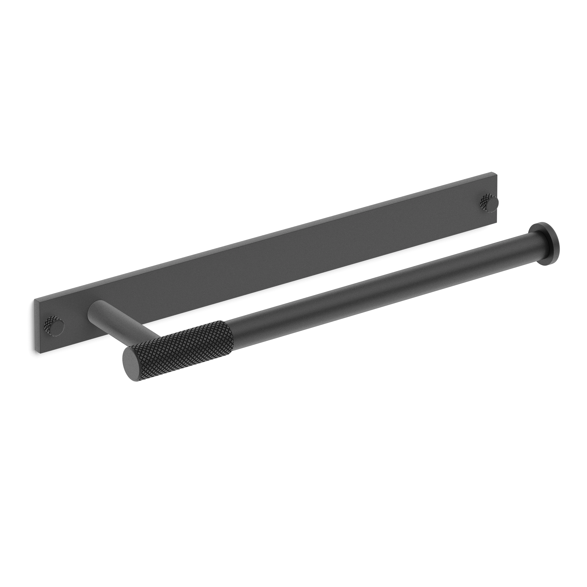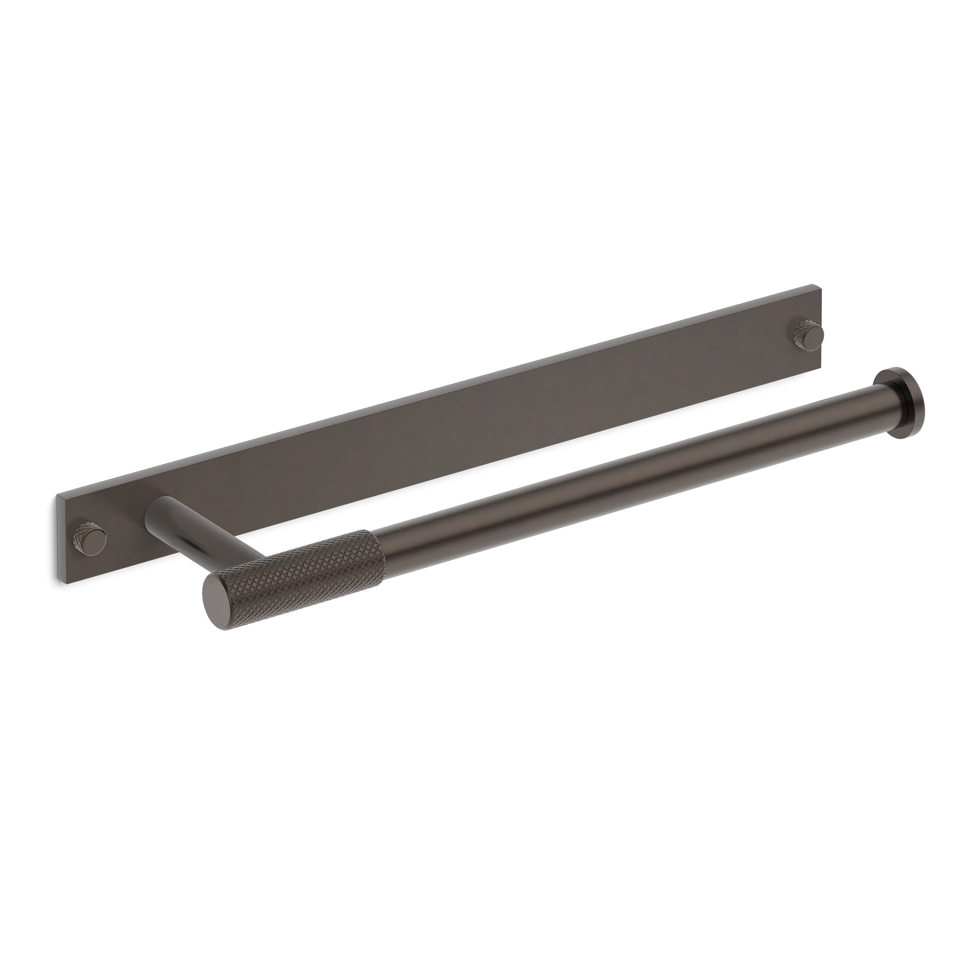 This wall-mounted towel bar is a stylish addition to any bathroom. It features a rectangular backplate and a horizontal cylindrical bar with a knurled grip handle in the middle. Crafted from metal, it offers multiple finish options, combining a modern aesthetic with practical towel – hanging functionality.
