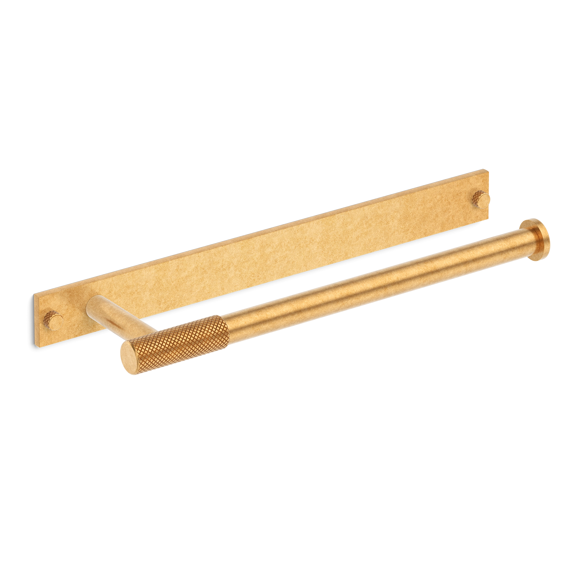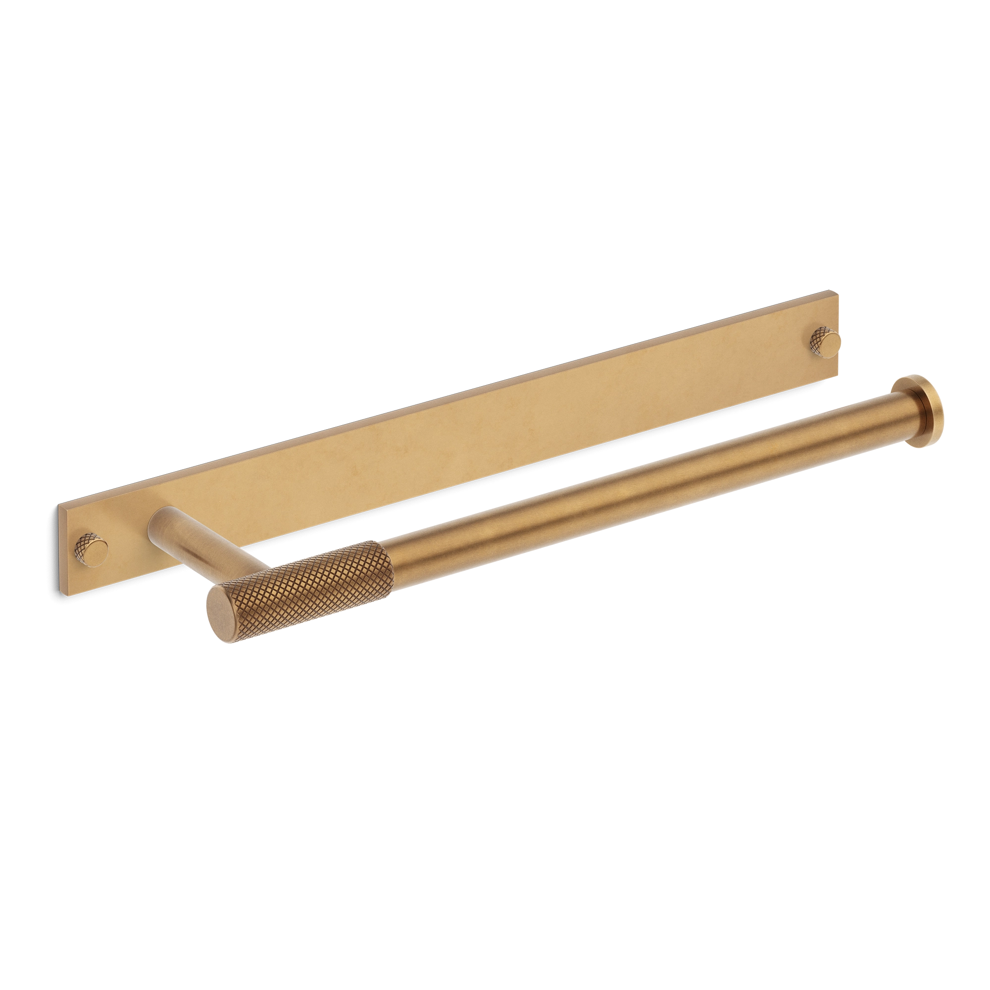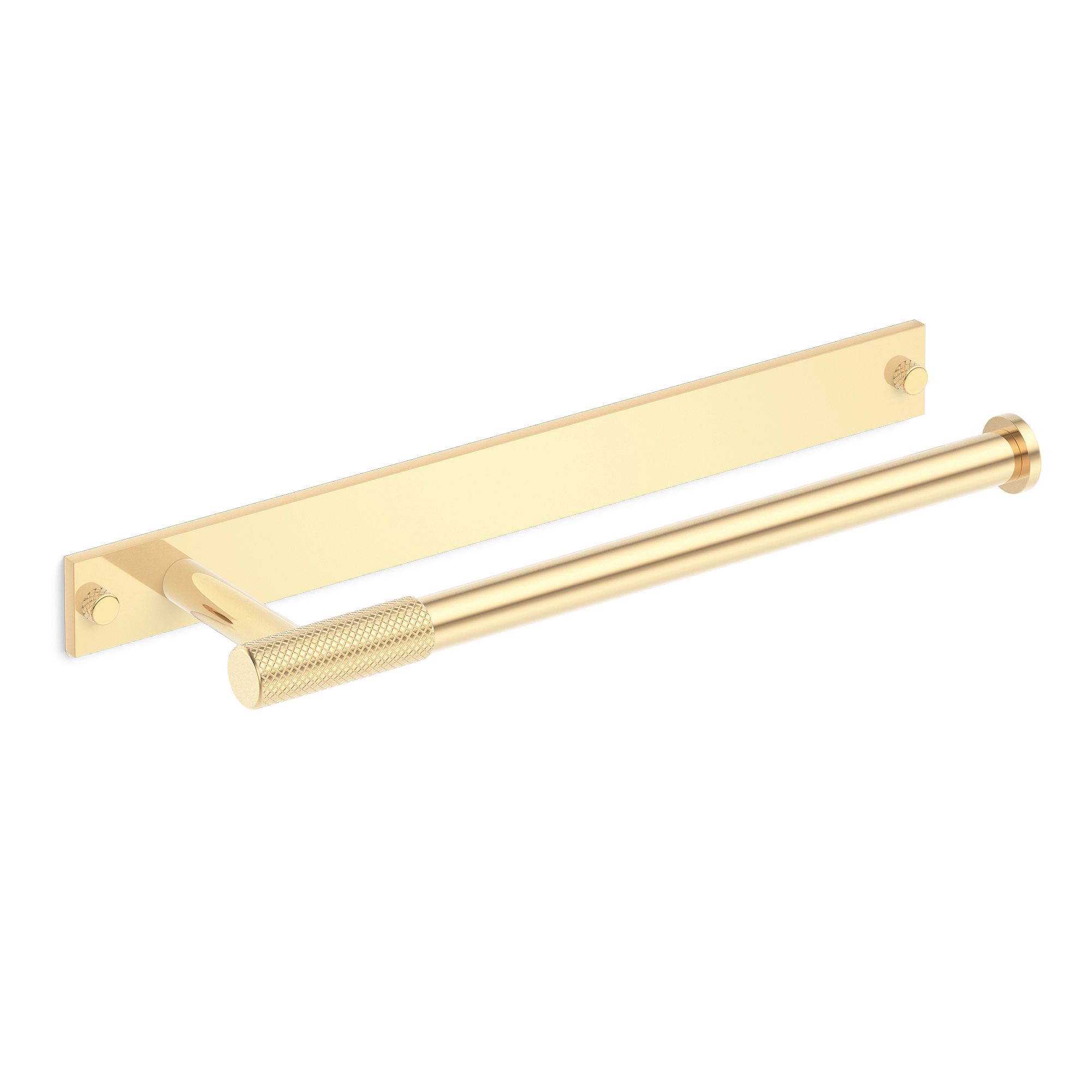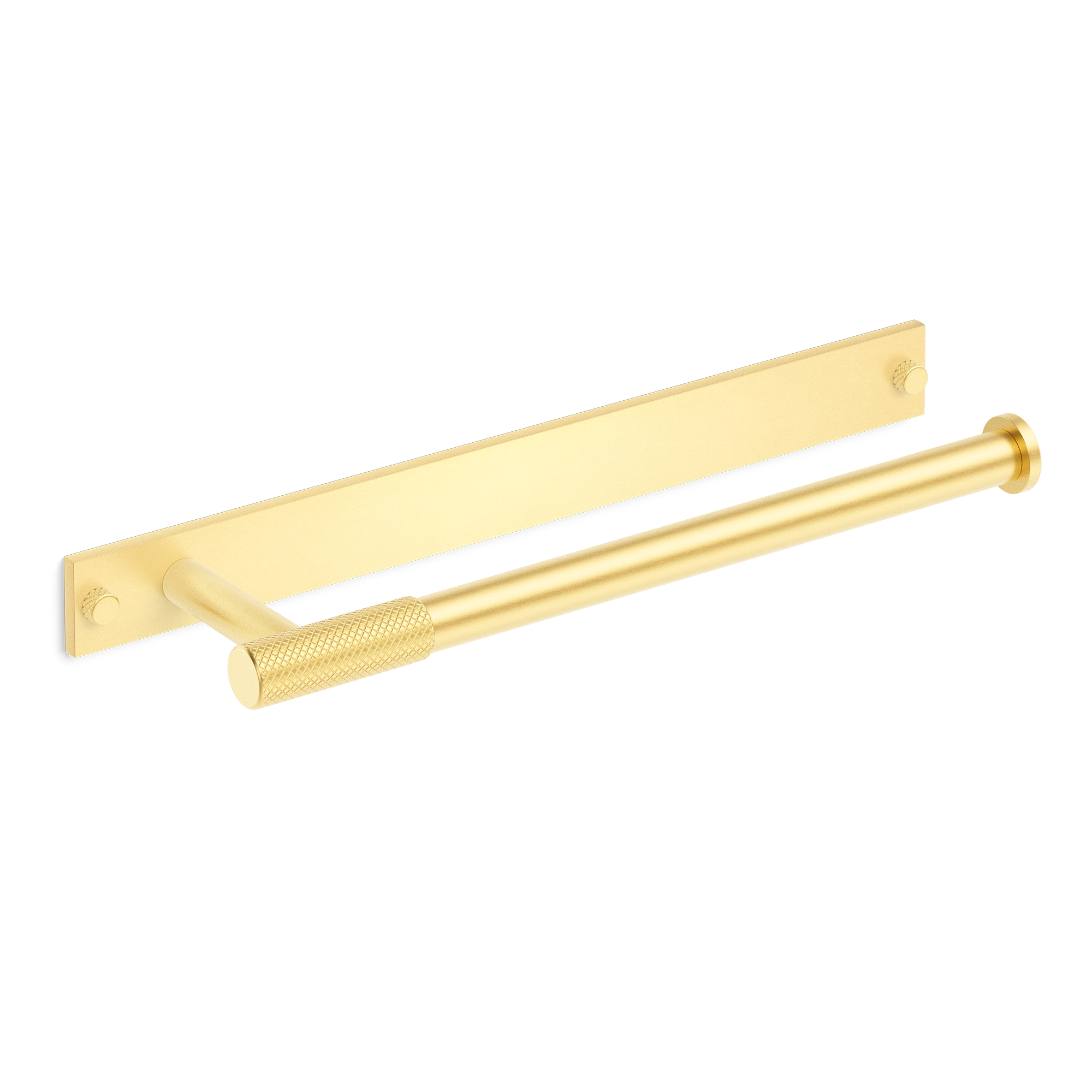 This wall-mounted towel bar is a stylish addition to any bathroom. It features a rectangular backplate and a horizontal cylindrical bar with a knurled grip handle in the middle. Crafted from metal, it offers multiple finish options, combining a modern aesthetic with practical towel – hanging functionality.