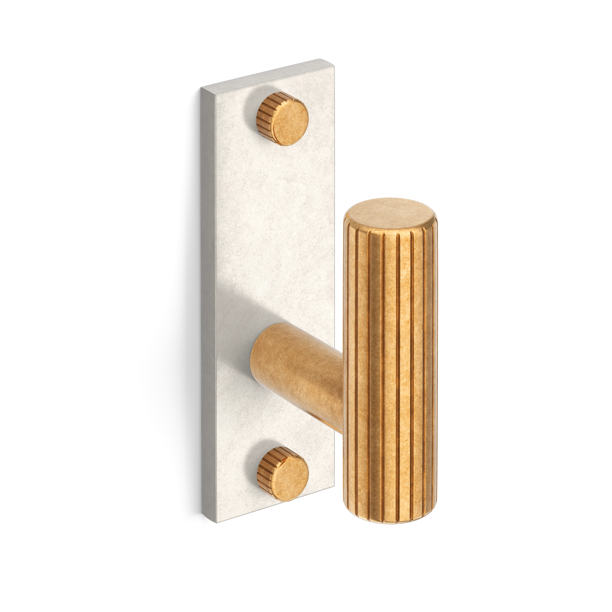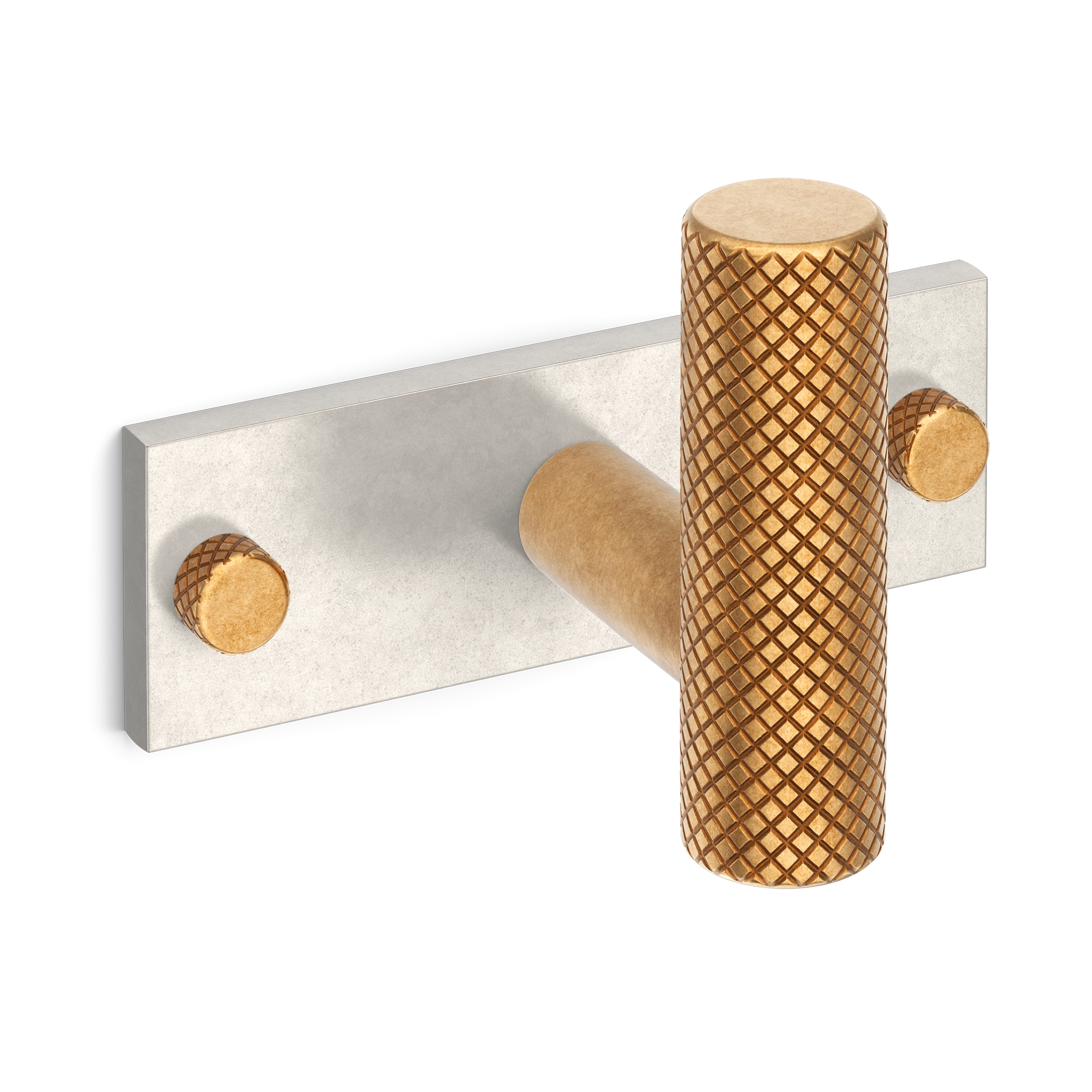 This is a stylish lever handle that can bring a modern touch to your interiors. It features a light – colored base plate with a smooth matte finish, paired with golden – toned components having a textured brushed finish. The minimalist design with clean lines makes it suitable for contemporary spaces.