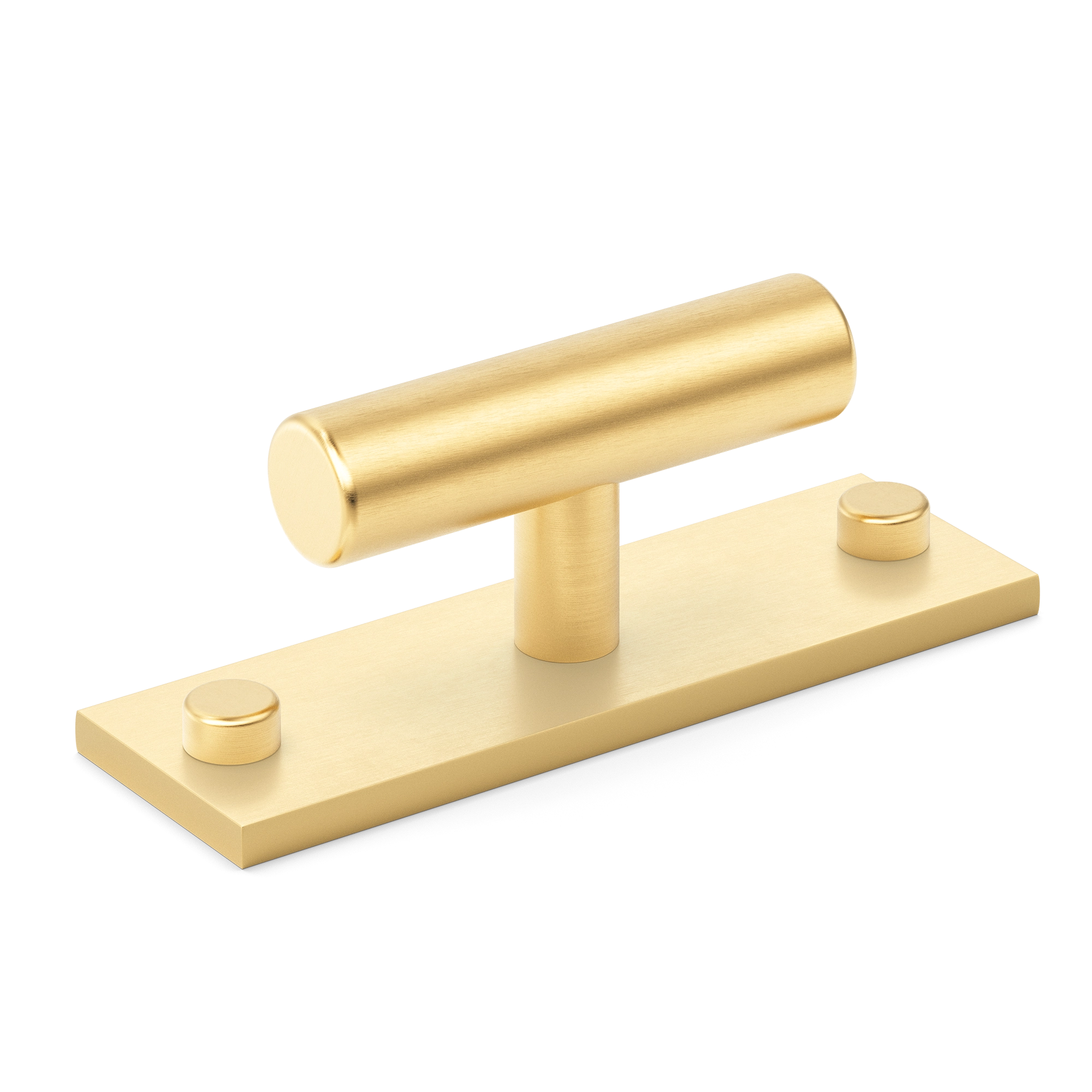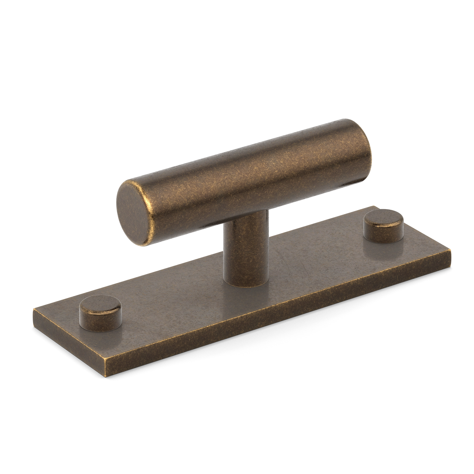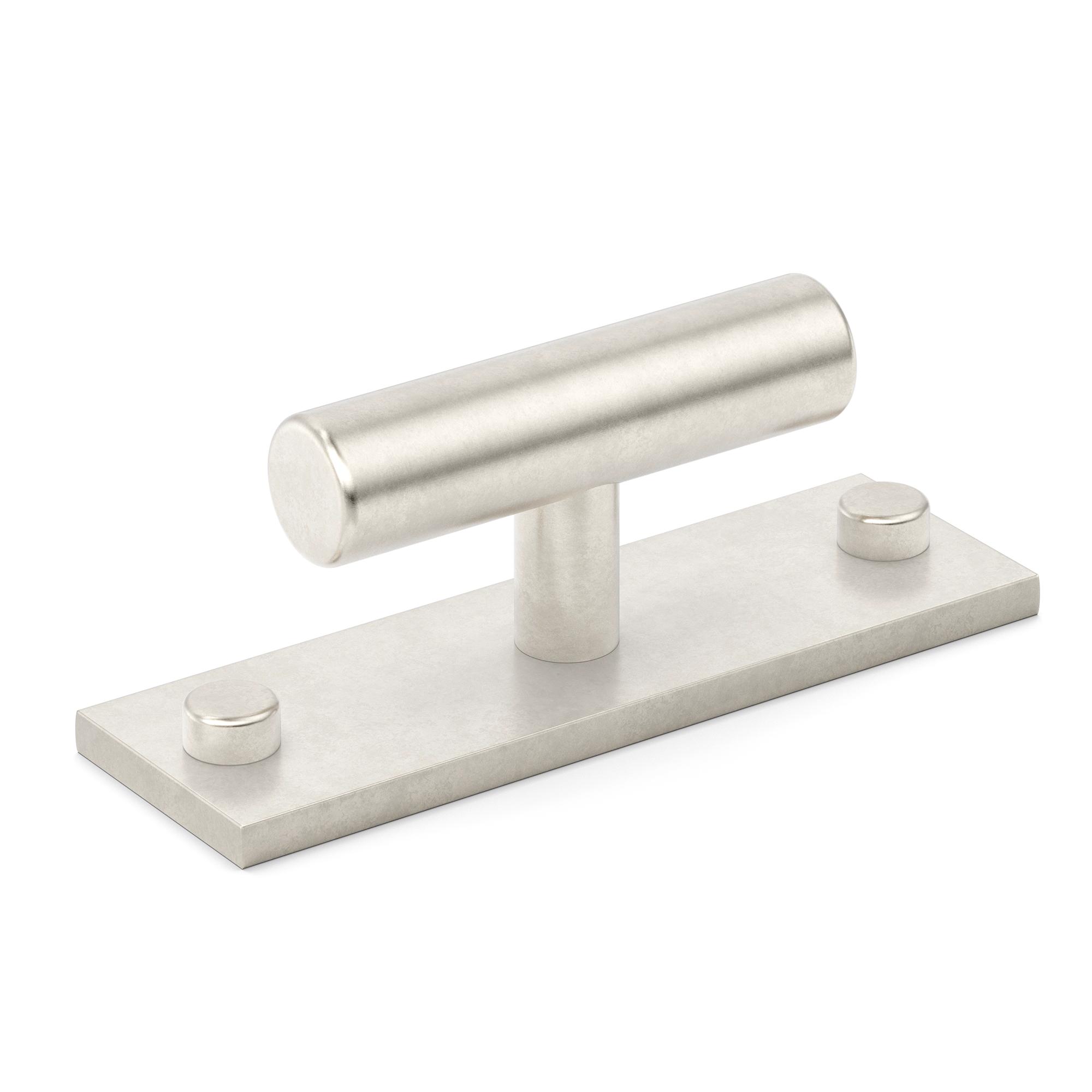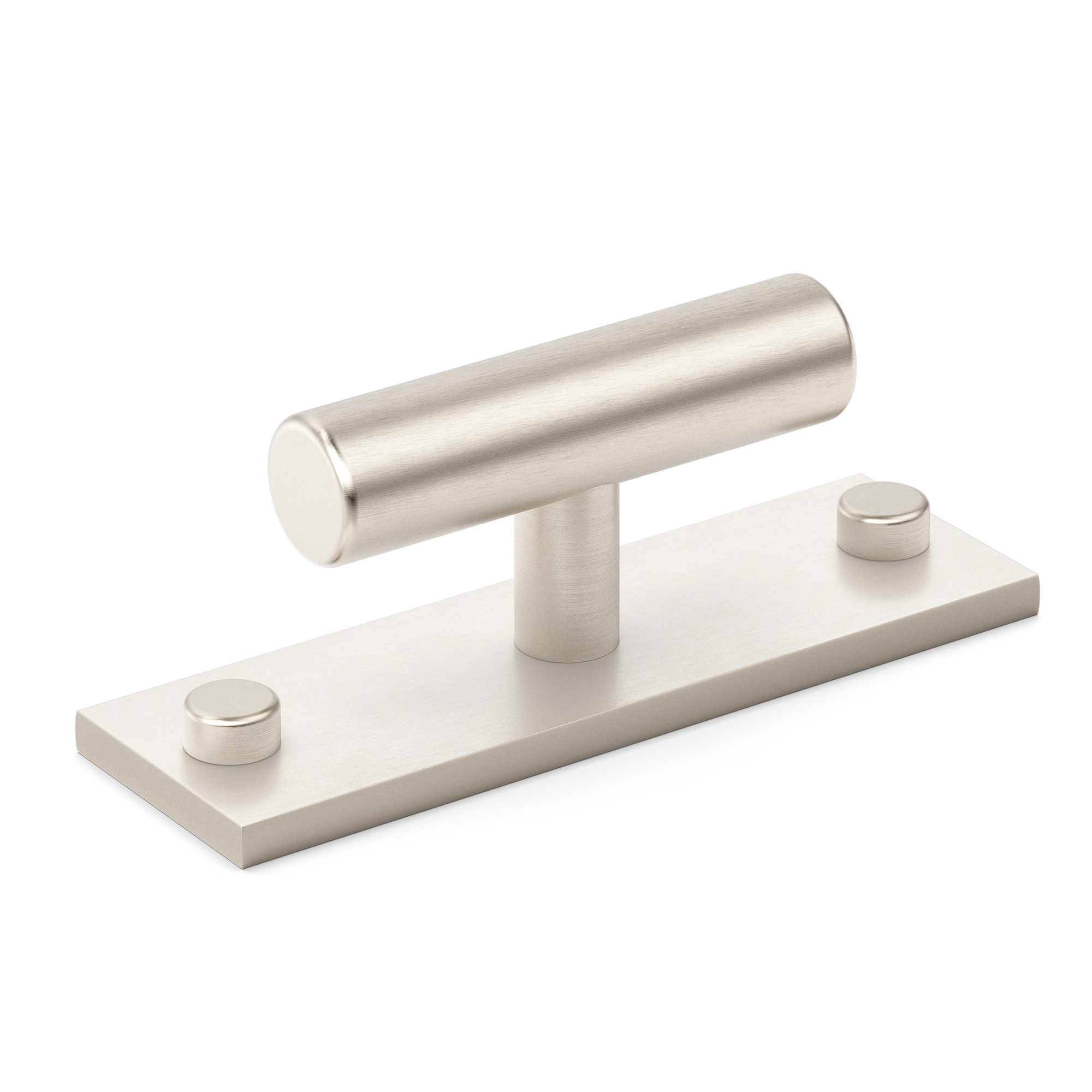 This T-bar handle and backplate is a stylish and functional addition to interior joinery. With a distinctive T-bar design featuring a horizontal cylindrical bar on a vertical post and a rectangular base plate, it offers a modern and industrial look. Made of metal, it comes in a variety of finishes to suit different decor styles.