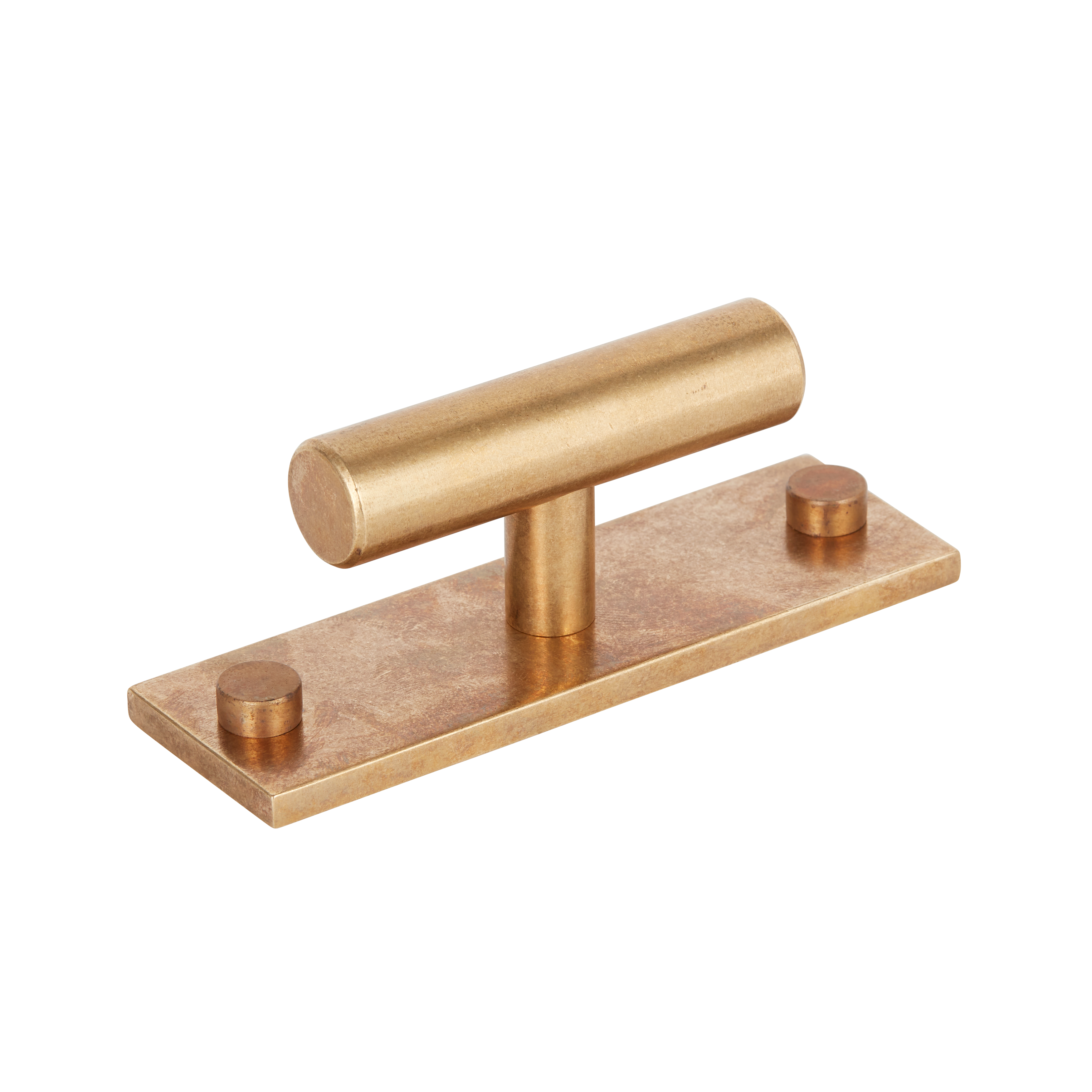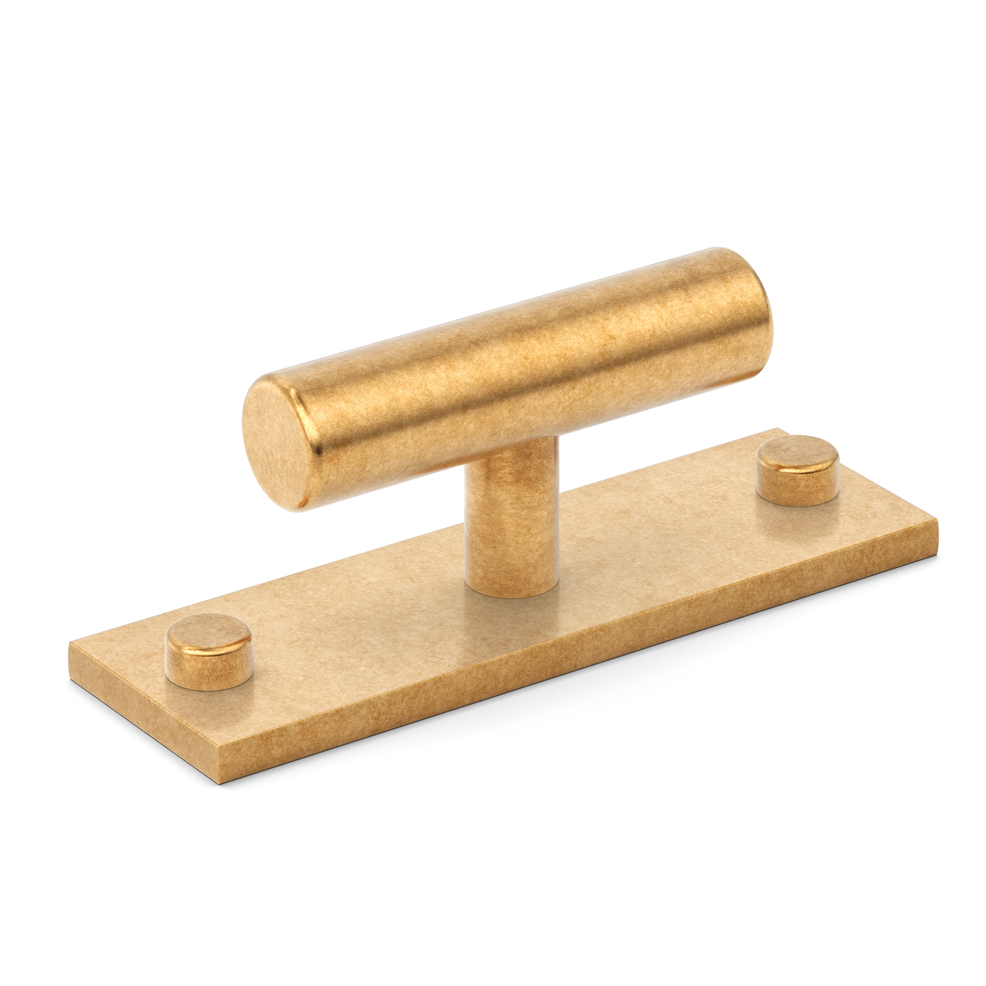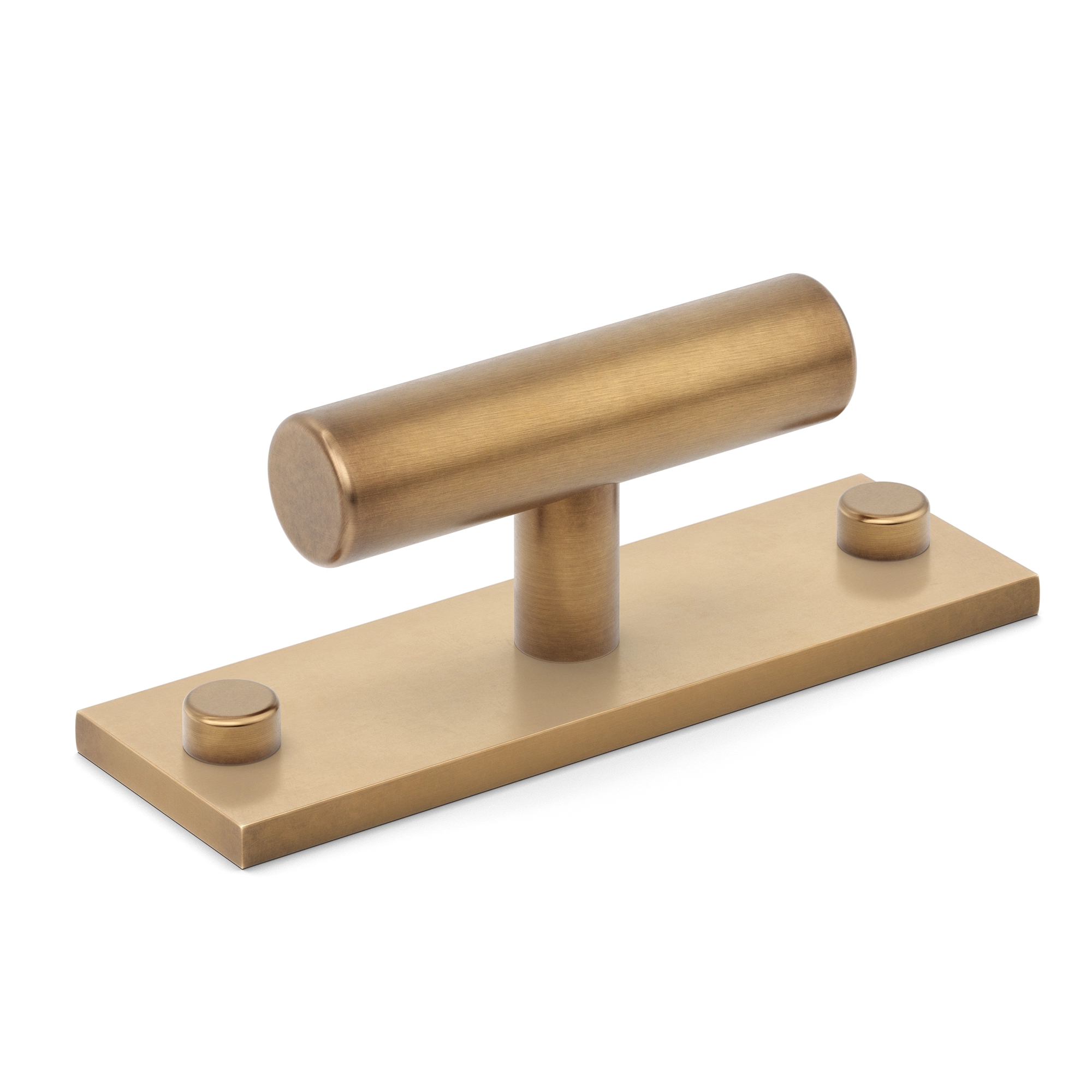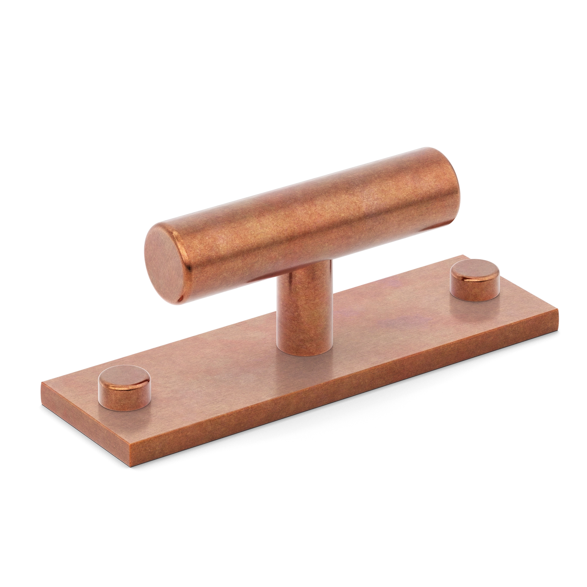 This T-bar handle and backplate is a stylish and functional addition to interior joinery. With a distinctive T-bar design featuring a horizontal cylindrical bar on a vertical post and a rectangular base plate, it offers a modern and industrial look. Made of metal, it comes in a variety of finishes to suit different decor styles.