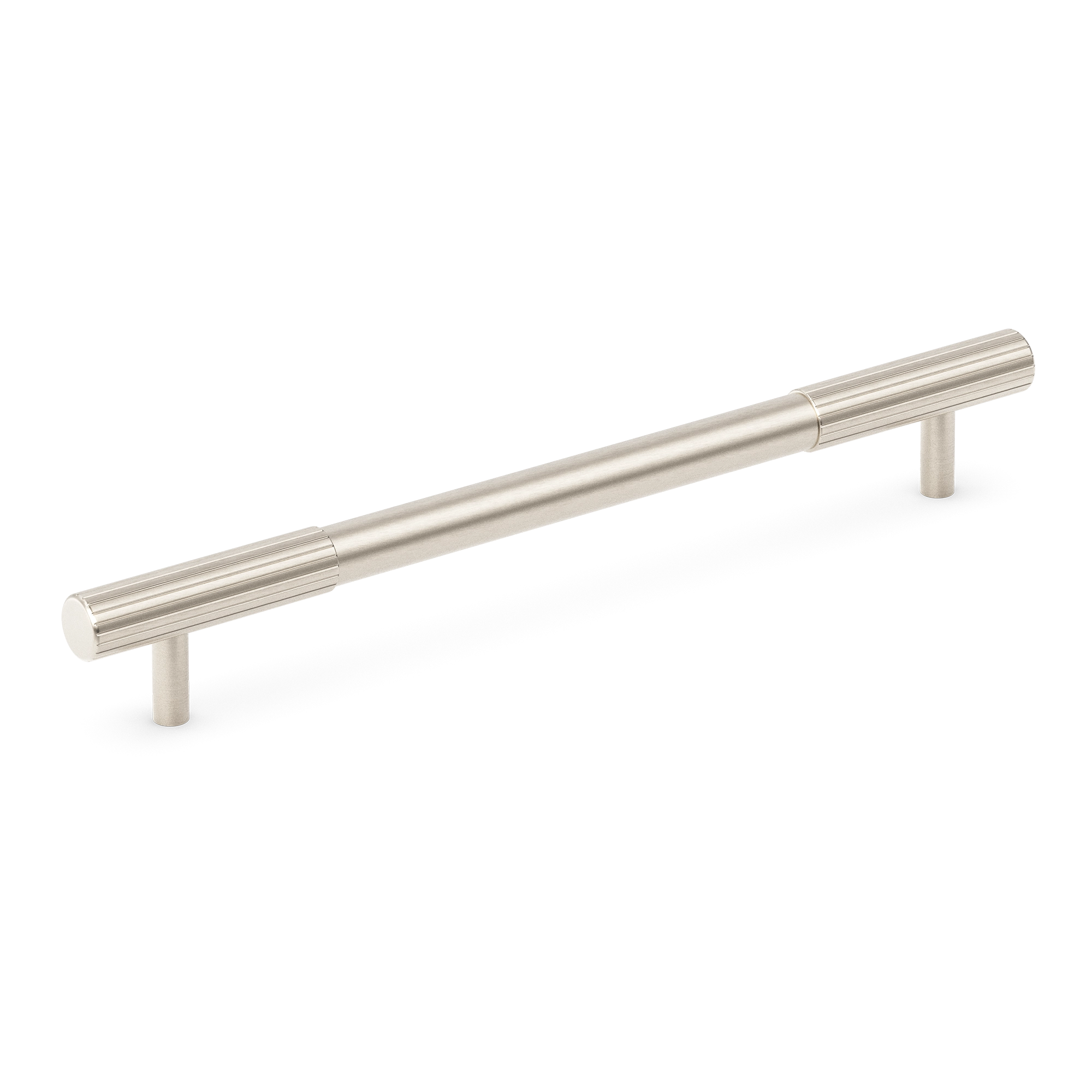 This cabinet handle is a sleek addition to interchangeable hardware collections. It features a central smooth cylindrical bar and fluted end – caps, offering both a refined industrial look and practical functionality. With multiple finishes available, it can effortlessly complement various interior design styles.