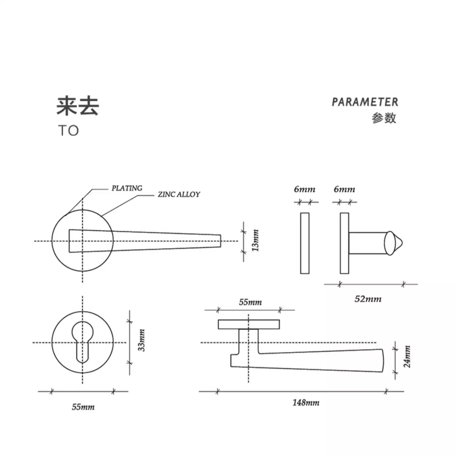 This door lever handle is a part of a door lockset, crafted from zinc alloy and plated with various metallic finishes. It features a minimalist and modern design with a tapered lever and a circular base plate. With a standard size, it’s suitable for most residential doors, offering both functional access control and an elegant aesthetic.