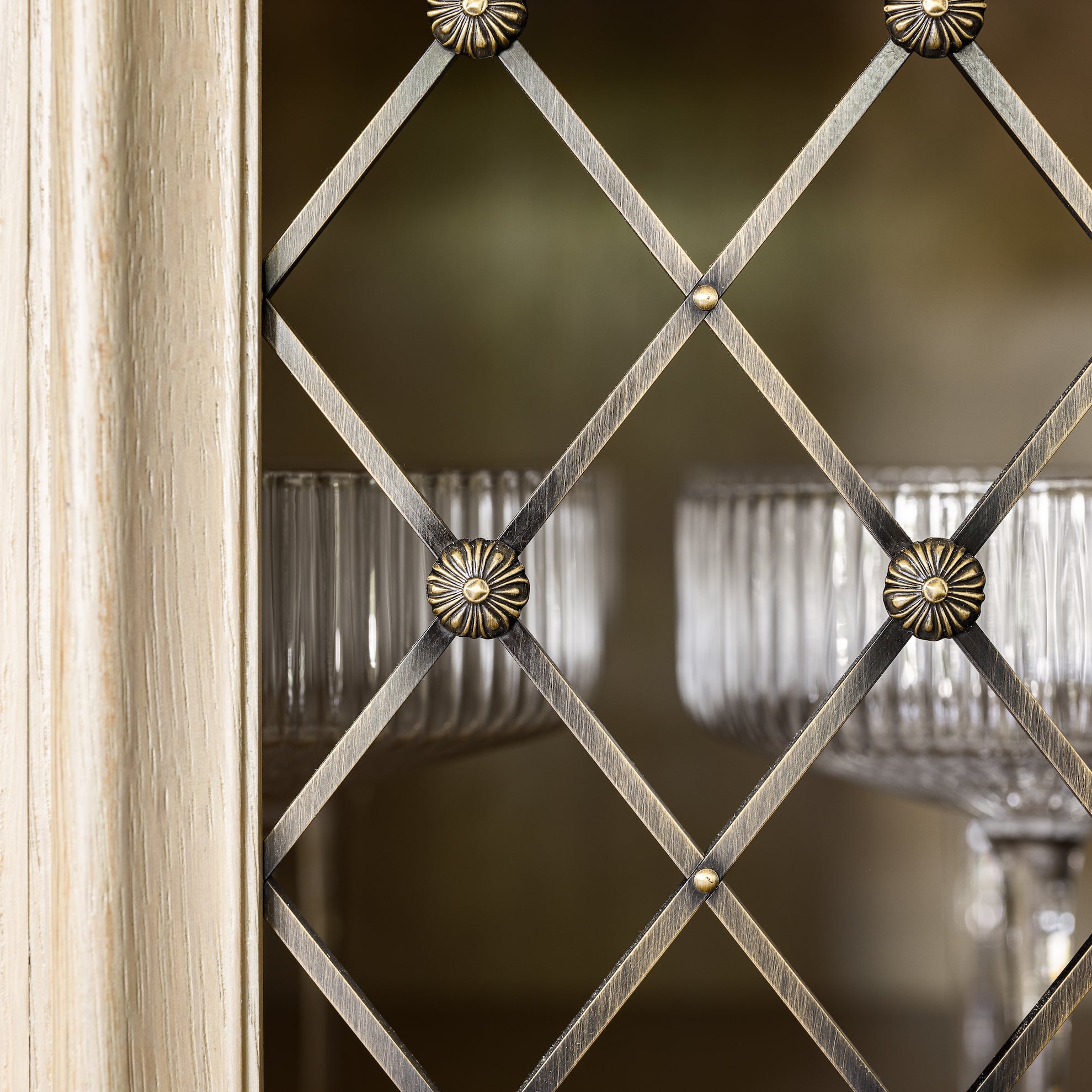 - Intricate diamond grid and decorative connectors for a vintage/classic appeal