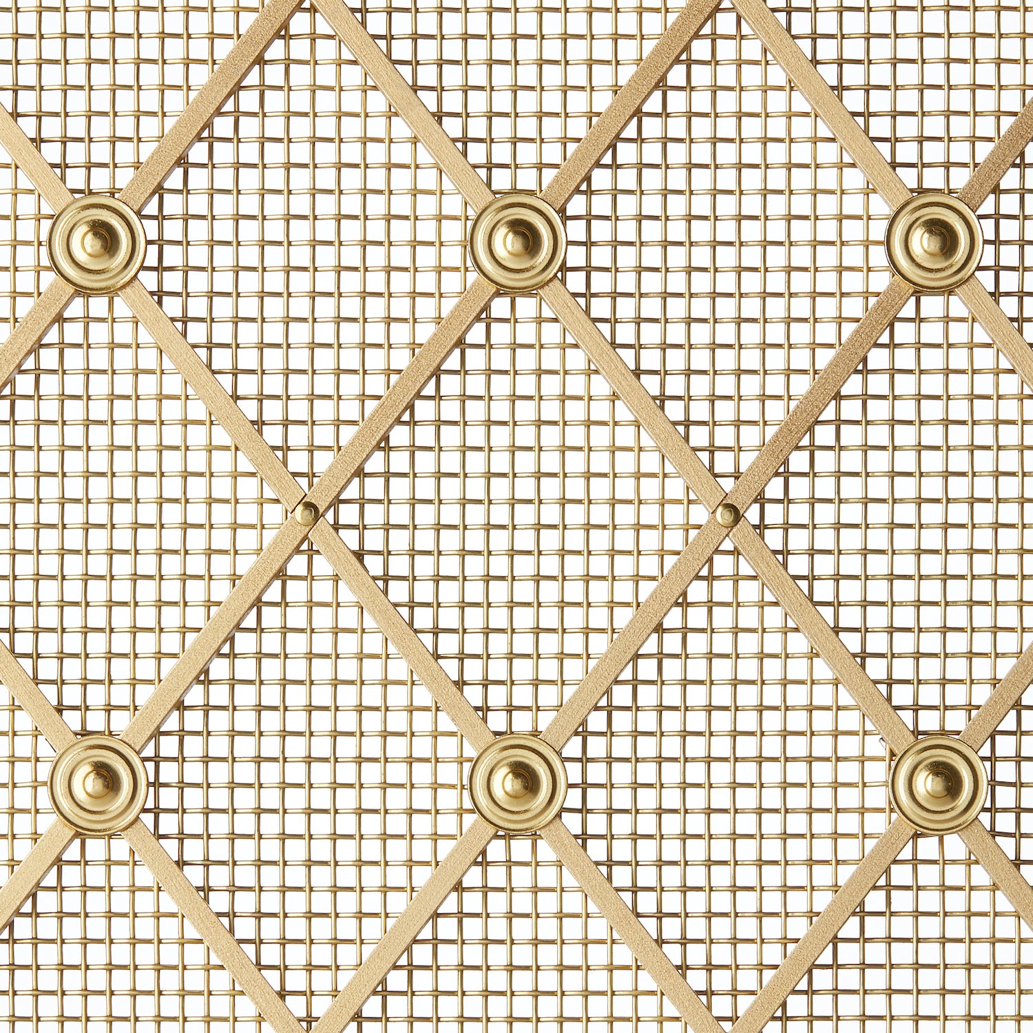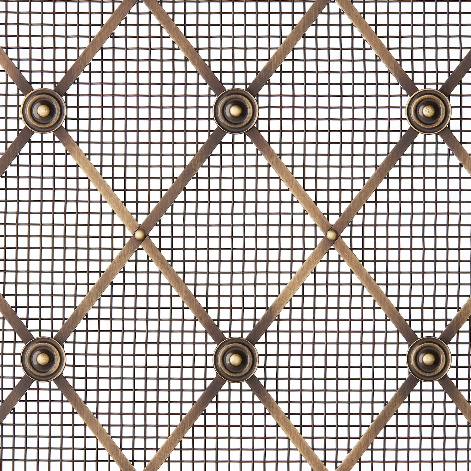 This handcrafted decorative metal grille is a stunning addition to any interior. Made of metal, likely brass, it features a beautiful diamond grid pattern formed by intersecting diagonal bars and a fine wire mesh. The grille comes with decorative connectors at the intersections, adding an ornate and vintage touch.