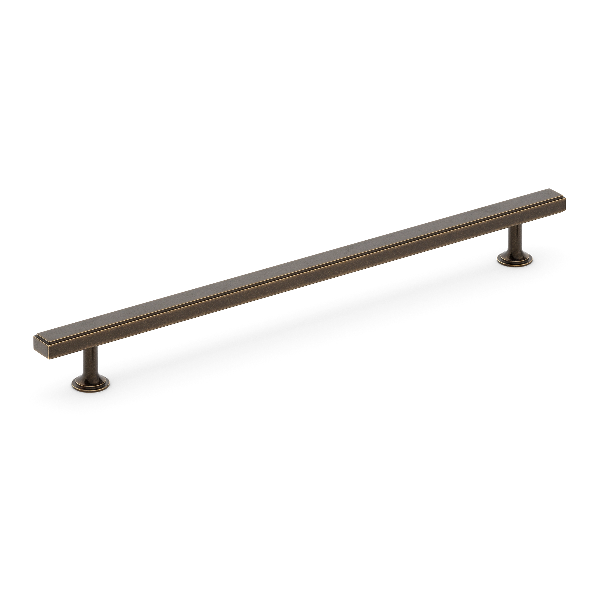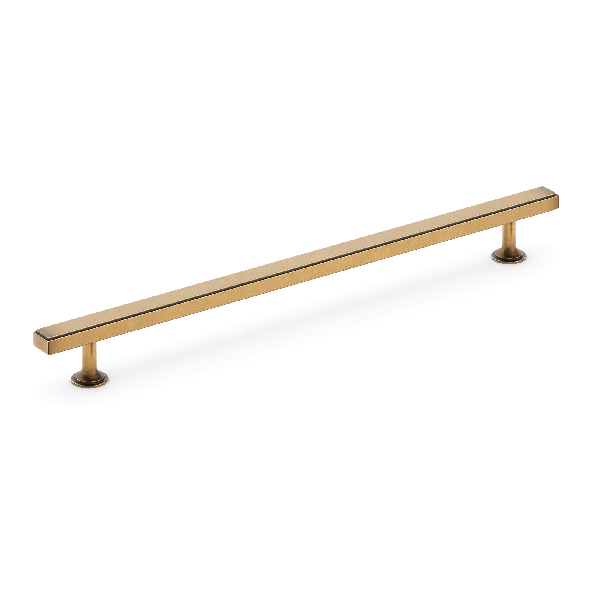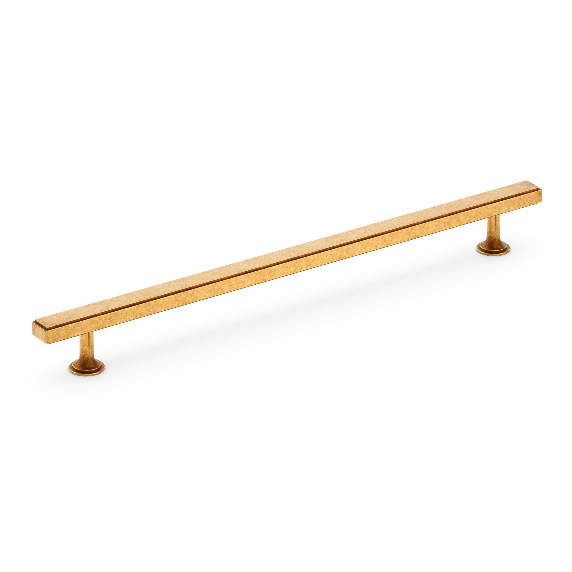 This cabinet/drawer pull is a stylish and functional addition to any kitchen, bathroom, or bedroom cabinetry. Crafted from metal, likely a brass alloy, it has a durable and corrosion – resistant finish. The long, rectangular bar with a recessed line and support structures on either end gives it a minimalist yet elegant look.