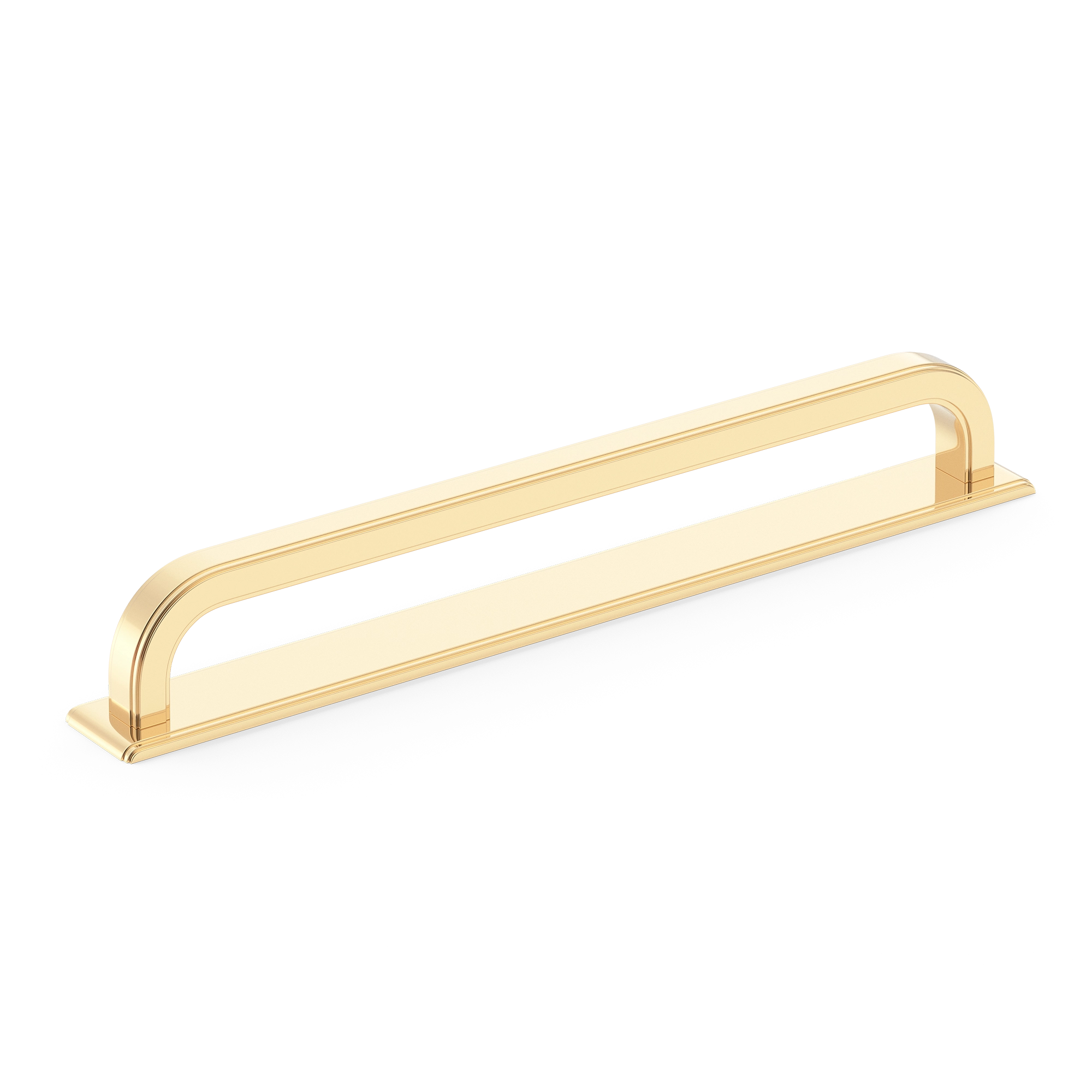 This cabinet/drawer pull is a stylish and practical hardware piece. It has an elongated, curved design with mounting tabs, making it suitable for use on drawers, cabinets, or doors. The pull comes in a polished gold – toned finish, adding a touch of elegance to furniture.