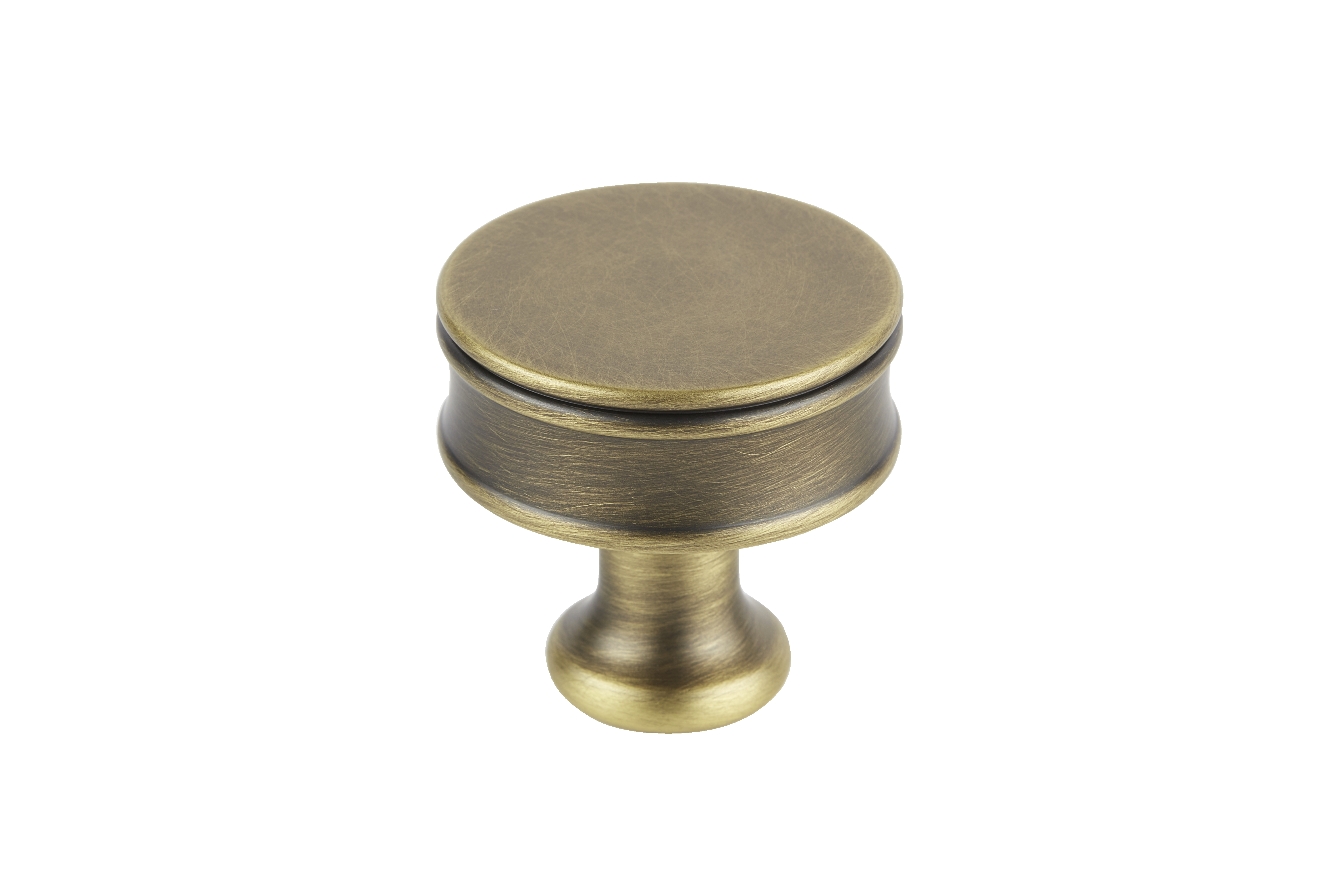 This cabinet/drawer knob is crafted from metal, likely brass or a brass alloy. It features a symmetrical, rounded design with a decorative top, stem, and base. The knob is available in different finishes, offering both a polished, shiny look and an aged, brushed texture to match various interior styles.