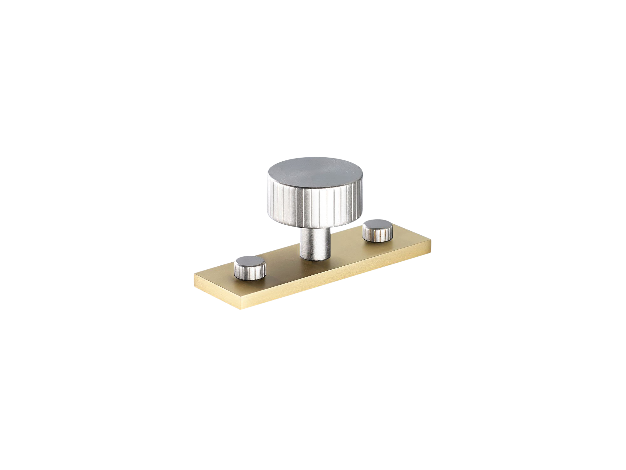 This adjustable handle and backplate set is a perfect addition for furniture or cabinetry. It features a long, cylindrical grip bar and a base plate, crafted from a metallic alloy with a warm golden hue. The combination of a polished bar and a brushed base plate not only offers visual contrast but also ensures functional durability.