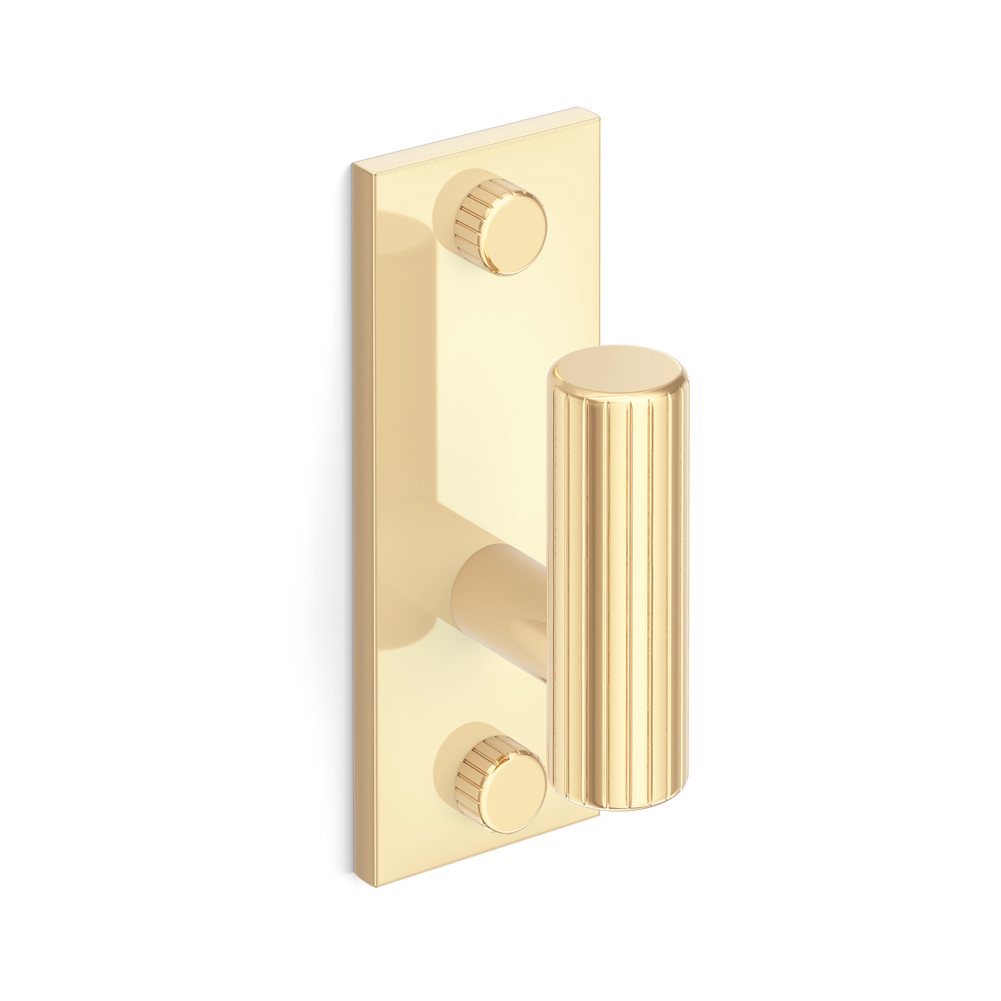 This product is a piece of door or furniture hardware. It has a rectangular base plate with rounded corners and a vertical fluted spindle. The gold – toned metallic finish gives it an elegant and decorative look, while the adjustment knobs add functionality for secure mounting and fine – tuning.
