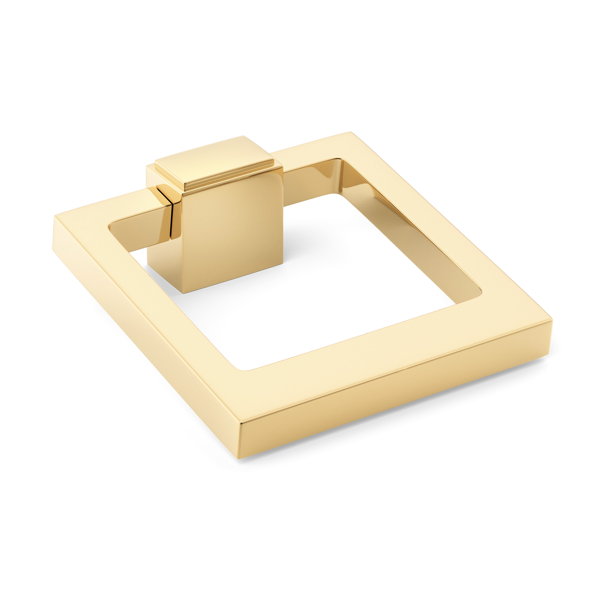 This product is a small rectangular furniture hardware piece, likely a drawer pull or cabinet handle. It is crafted from a metallic material with a polished golden – yellow finish. The minimalist design features sharp right angles and a stepped mounting section, making it both functional and aesthetically pleasing.
