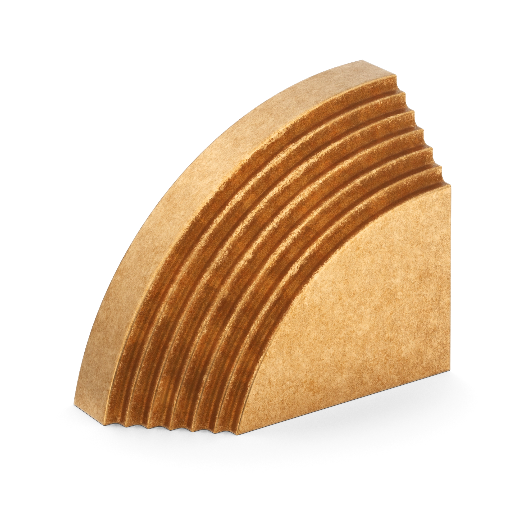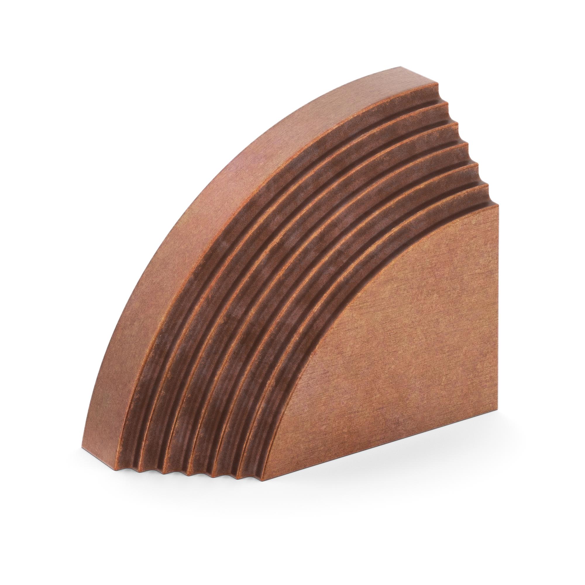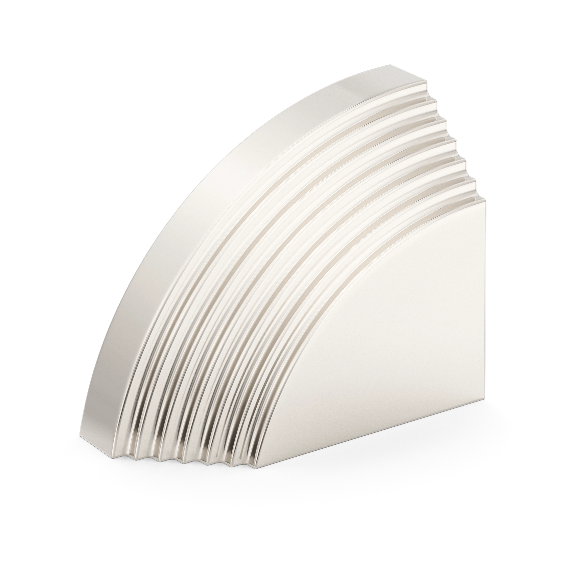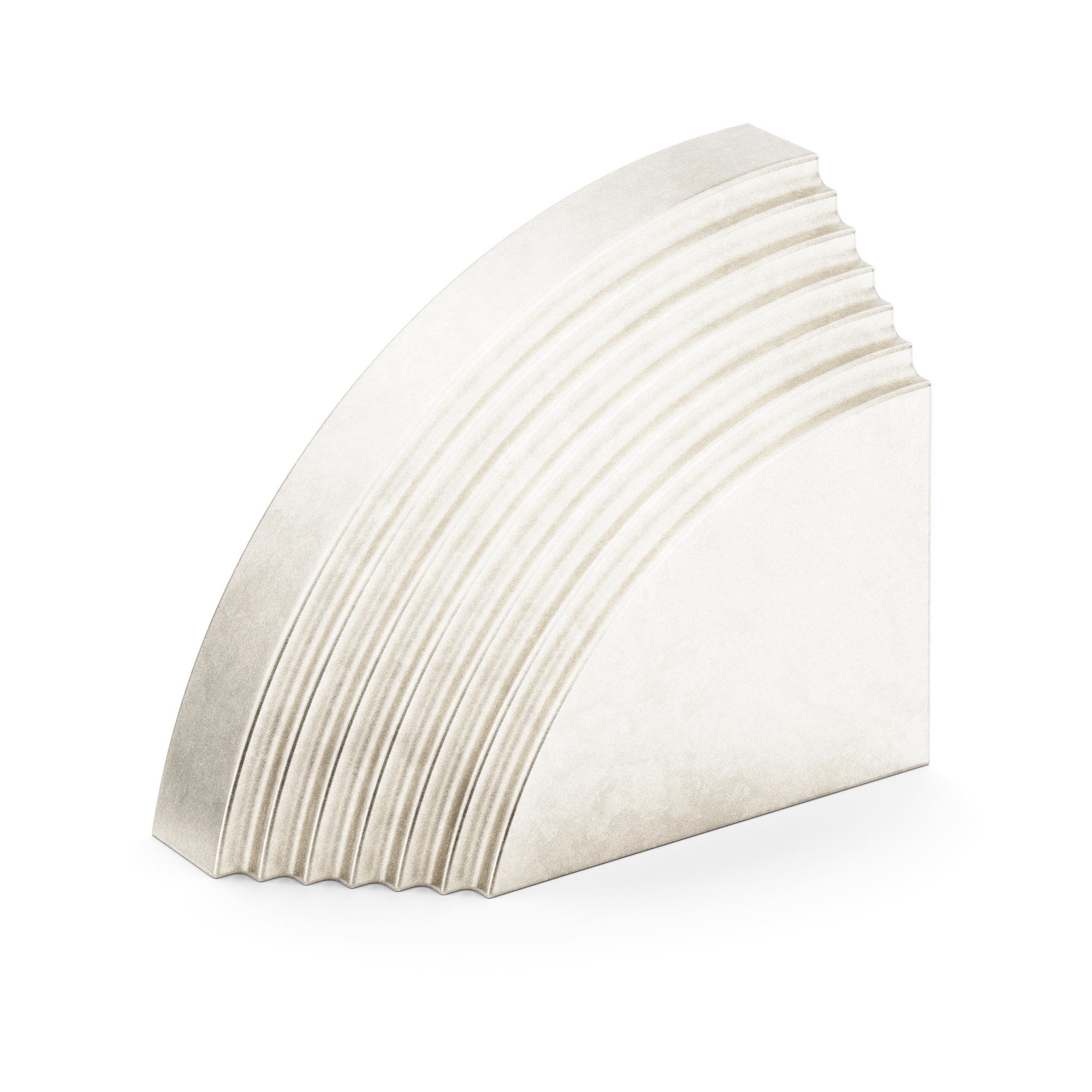 This architectural decorative trim piece offers a stylish addition to doors, cabinetry, or wall corners. Crafted from metal with a range of warm and cool metallic tones, it features a quarter – circle arc with evenly spaced parallel grooves, inspired by Art Deco design. The flat rectangular base provides stability, and it can be paired for a symmetric look.