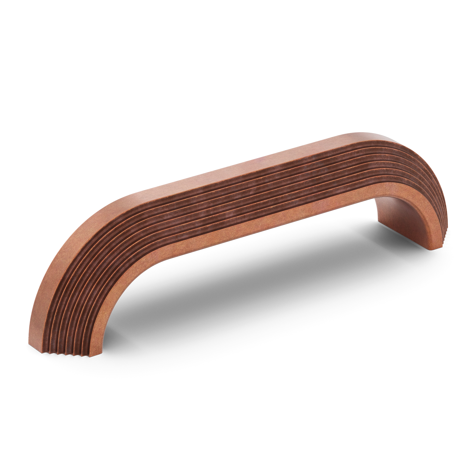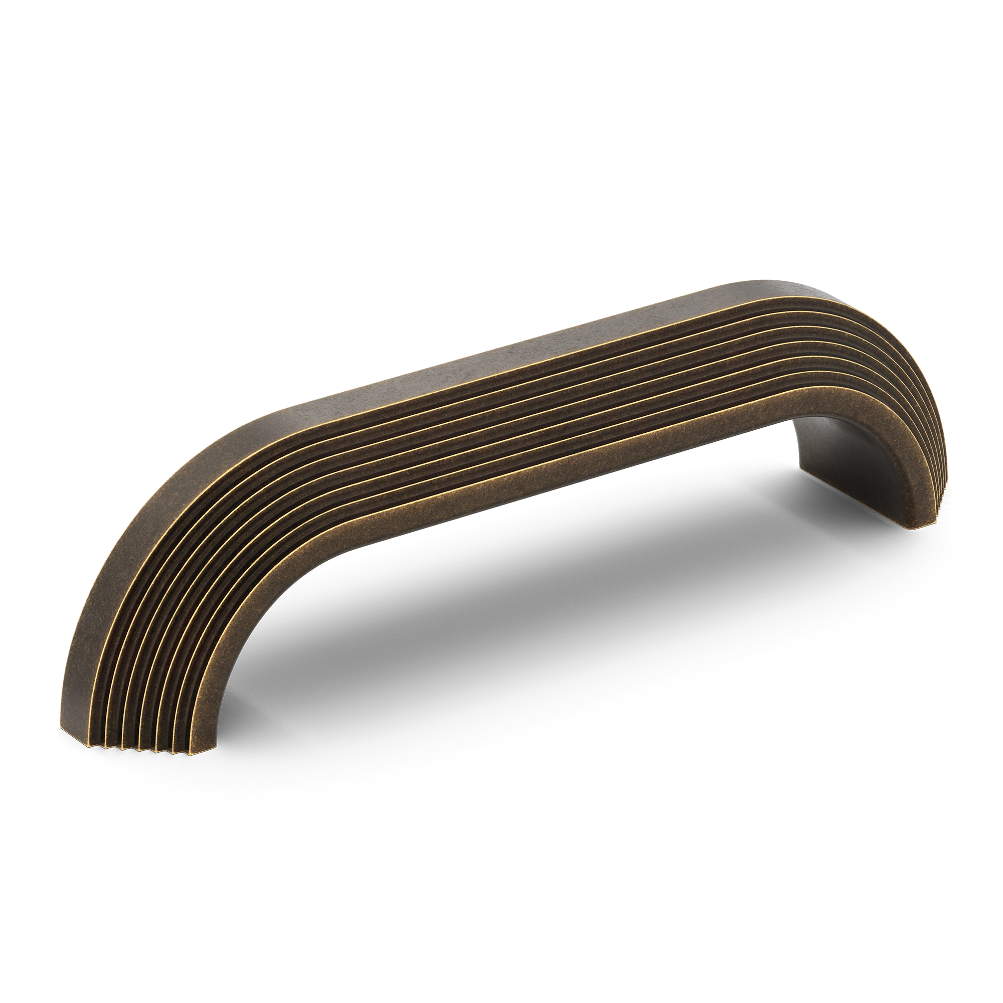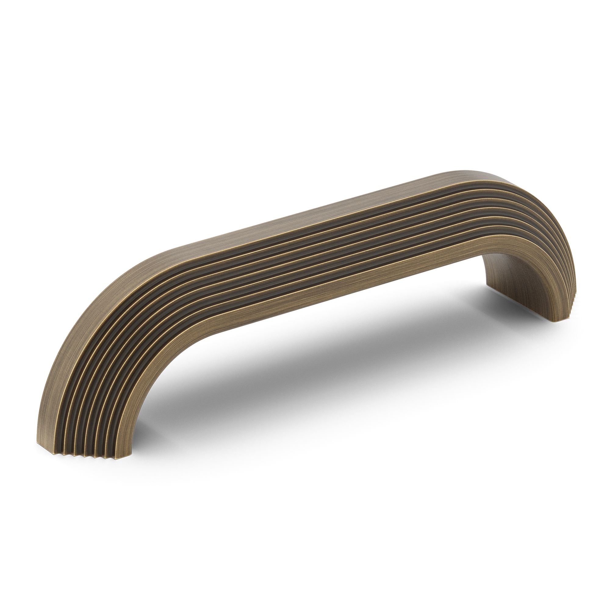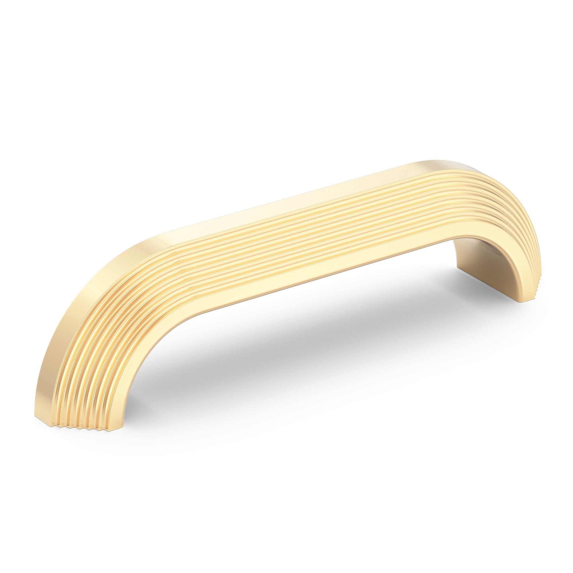 This cabinet/drawer pull handle is a blend of style and functionality. Its curved, arched shape with parallel grooves offers an elegant look. Crafted from a likely metallic alloy like brass, it’s a high – quality piece suitable for various furniture types.