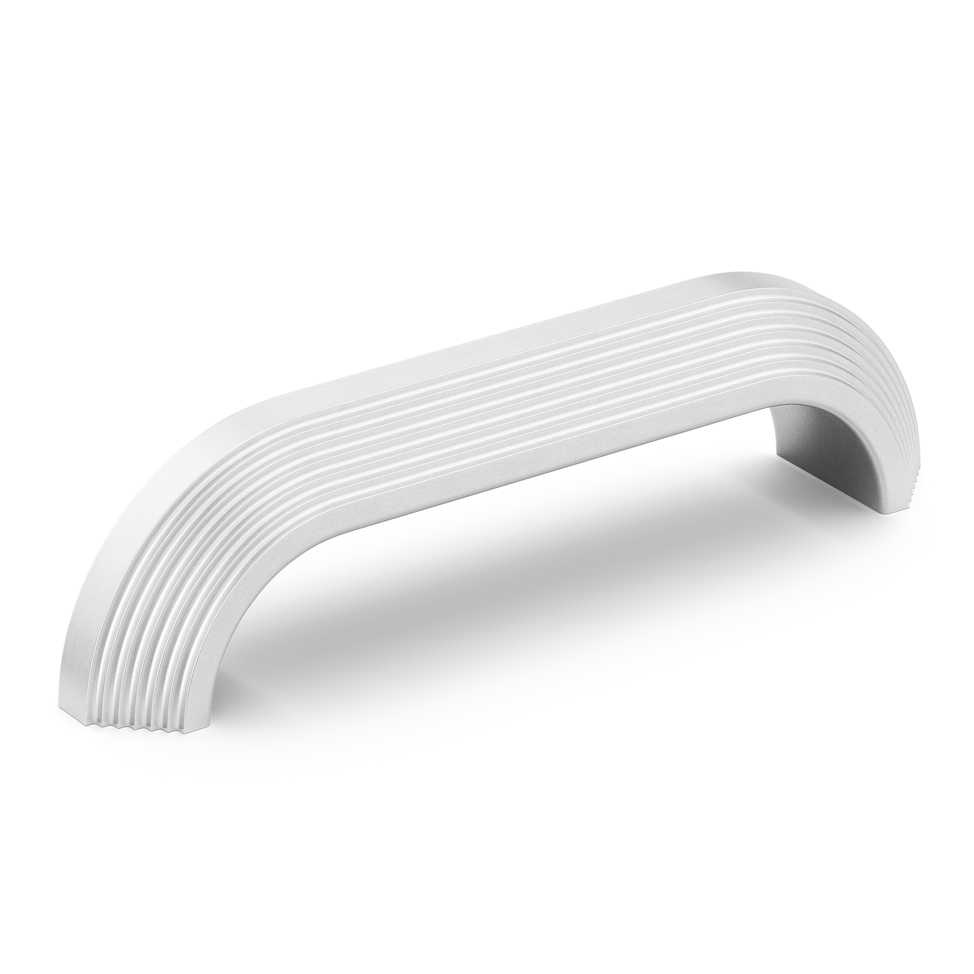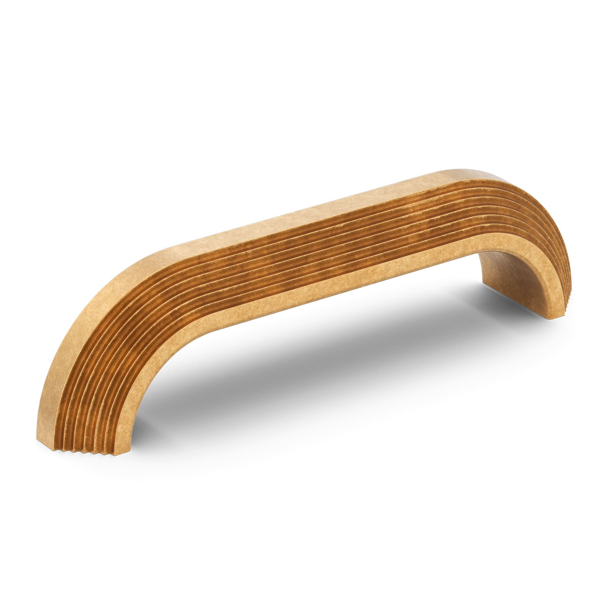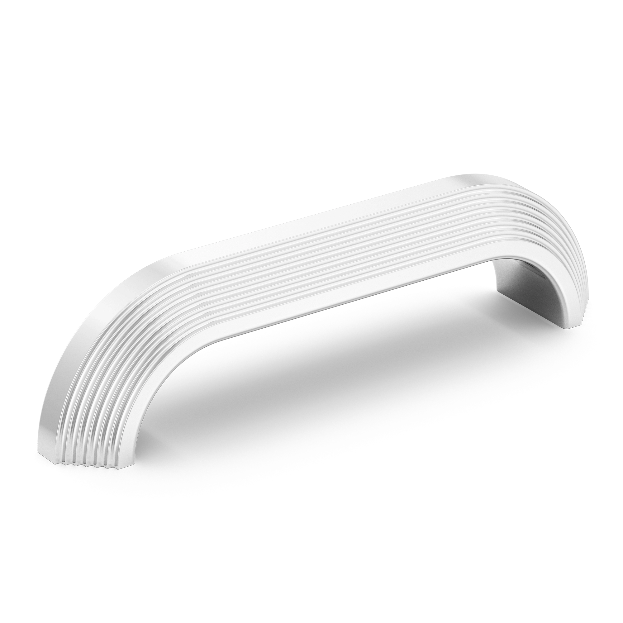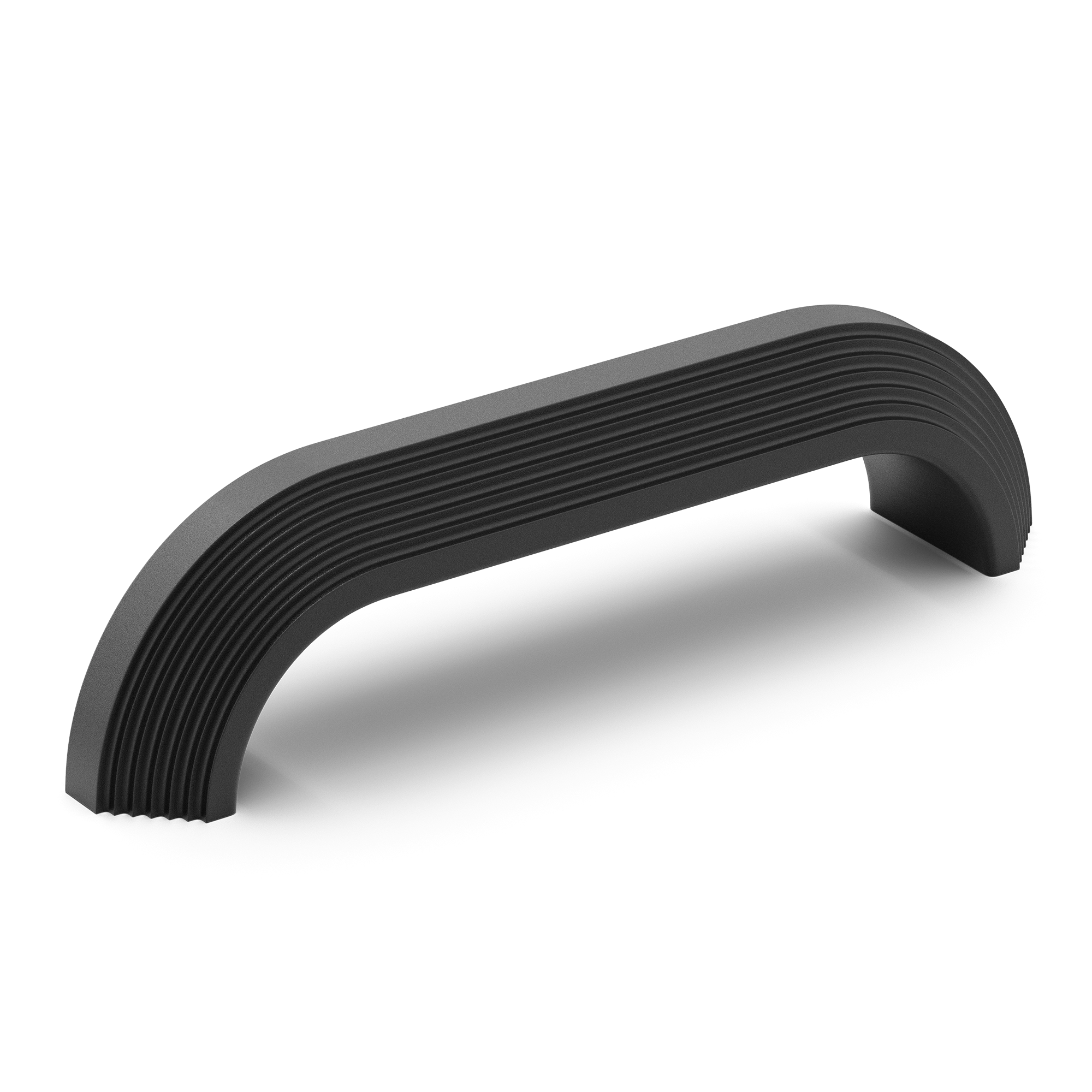 This cabinet/drawer pull handle is a blend of style and functionality. Its curved, arched shape with parallel grooves offers an elegant look. Crafted from a likely metallic alloy like brass, it’s a high – quality piece suitable for various furniture types.