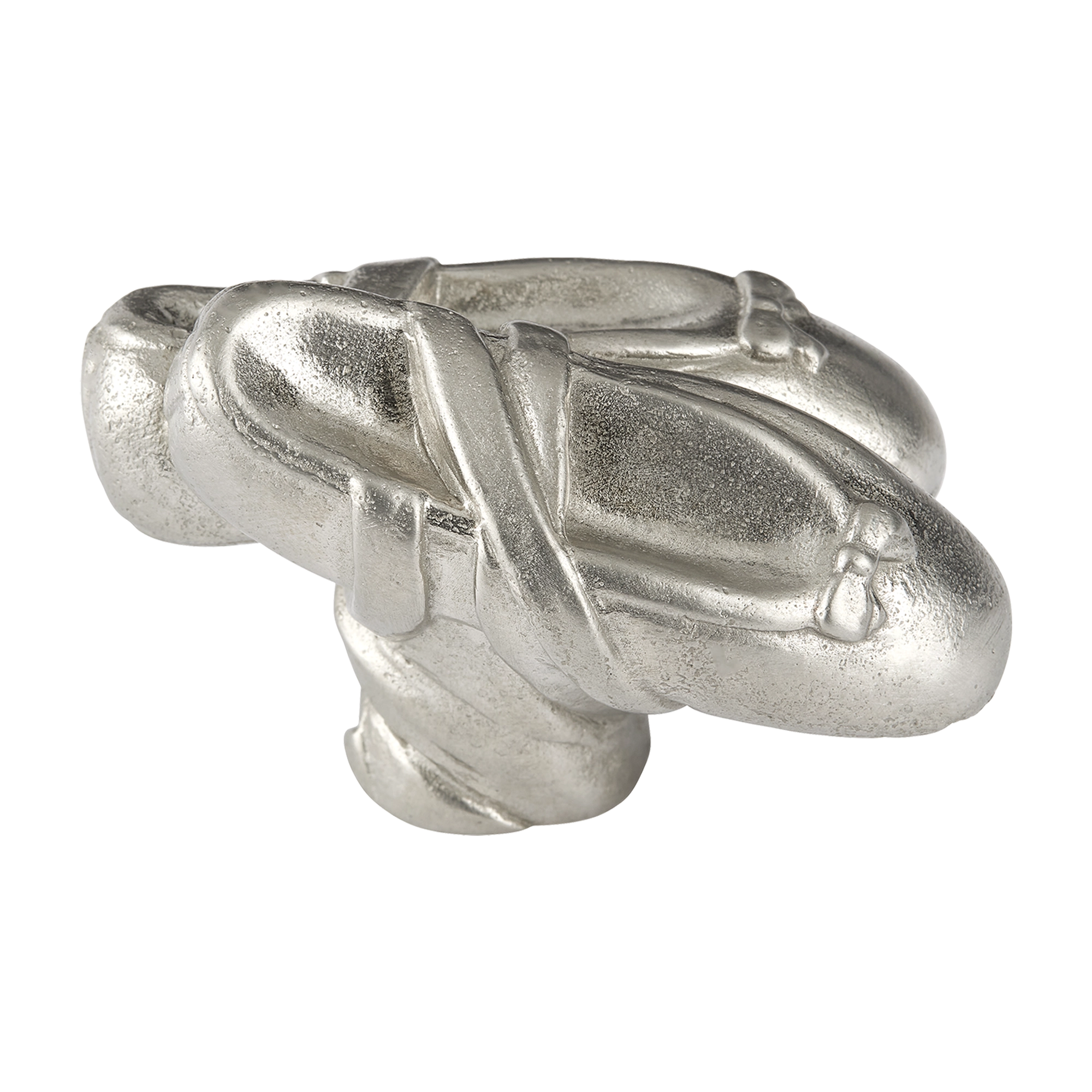 - Sculptural details with smooth curves, defined folds, and decorative knots.